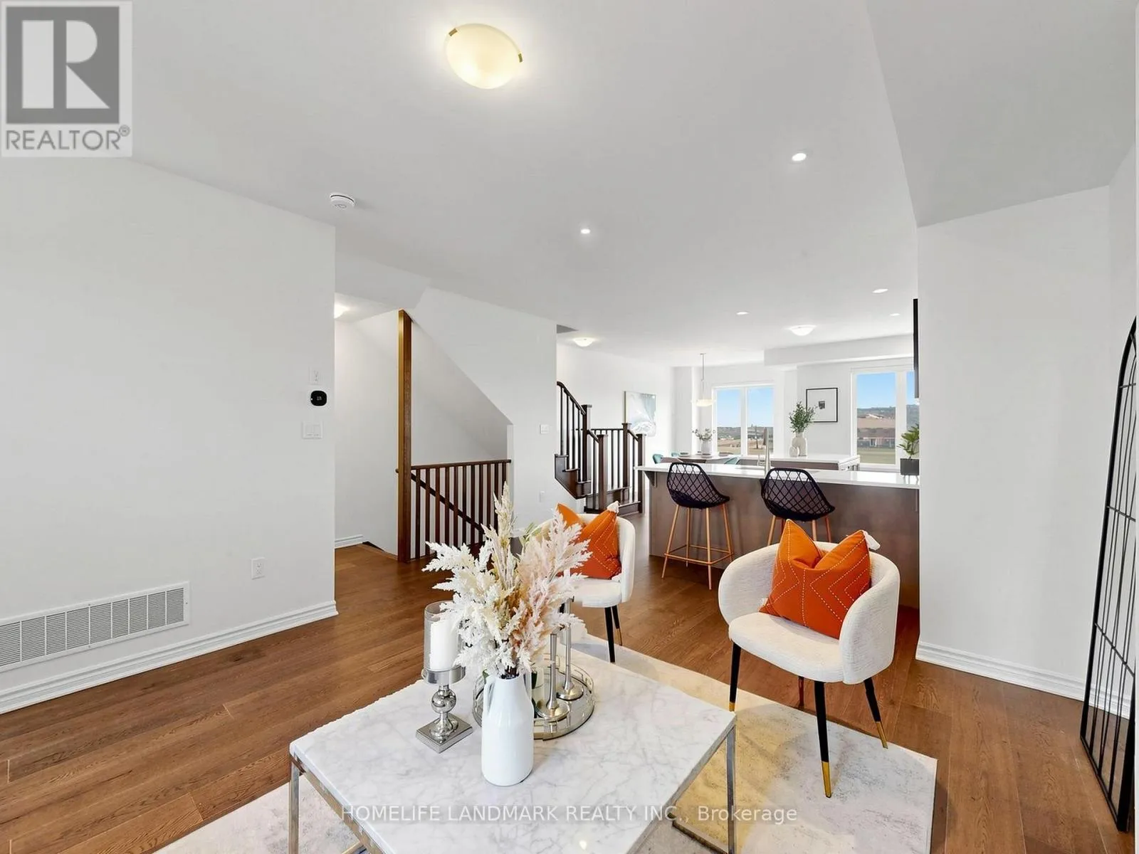 100% Freehold. This Stunning 4 Bed Executive Townhouse In Sought-After Upper Joshua Creek. Executive Features Include Wide Hardwood Throughout, Super Bright South Facing, 9 Ft Ceilings, Electric Fireplace in Family Room, Duo Use Living Room or Office. It also comes with Coveted Open Plan Layout, Generous 19Ft Wide Double Car Garage With Auto Opener, Large Kitchen With Fantastic Centre Island,