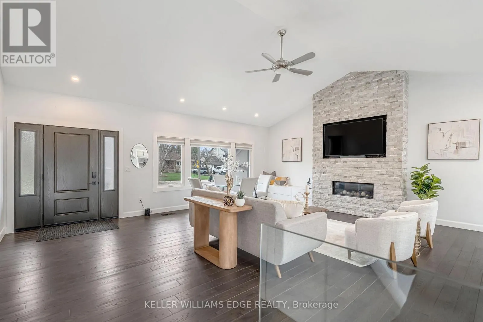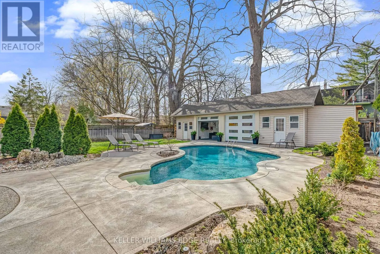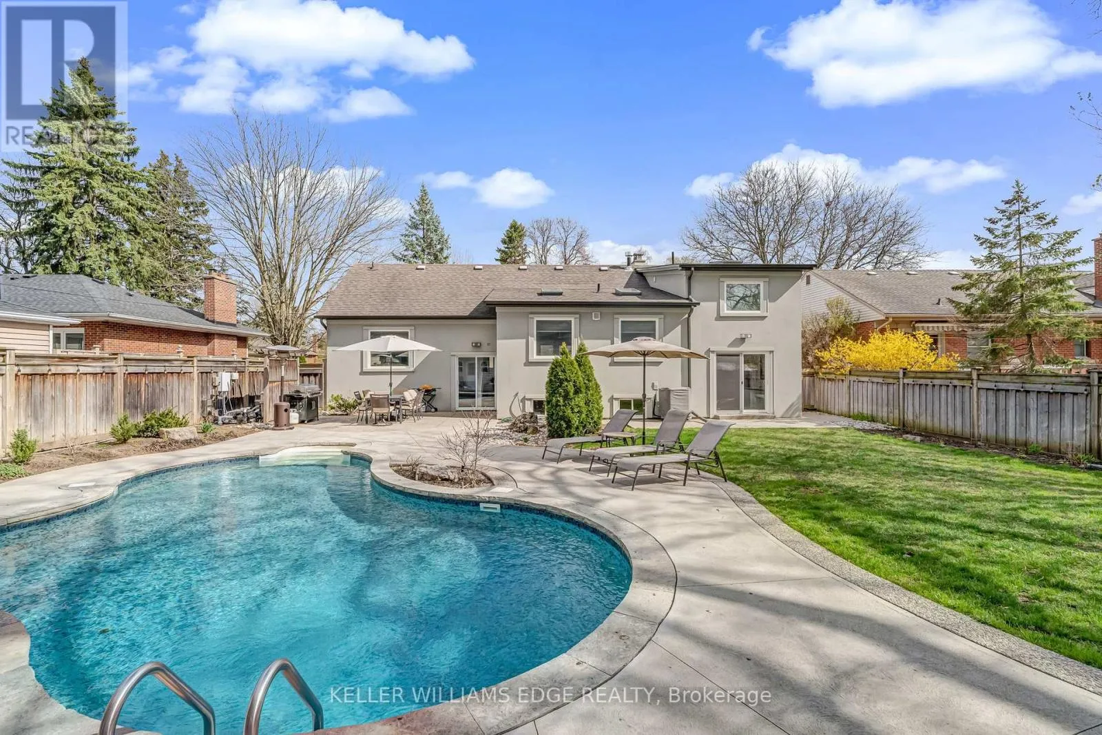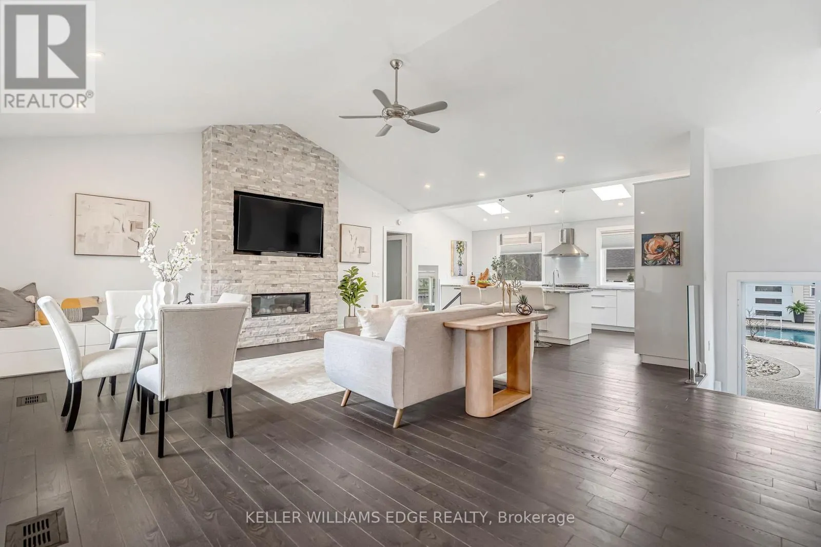the world exists. Step inside and the vaulted ceiling opens things up immediately. A floor-to-ceiling stone feature wall with gas fireplace anchors the living and dining space, hardwood floors run throughout, and the kitchen delivers everything a family or entertainer could want: stainless built-in appliances, chef’s gas range, massive island, and endless counter space – all bathed in natural light from skylights above. The floorplan is genuinely thoughtful – two bedrooms and a 3-piece bath tucked quietly along their own private wing on the main level, while a half-flight up, the primary suite feels like a world apart. Walk-through closet, freestanding tub, glass shower, skylit and serene, overlooking the backyard. Main floor laundry, two sets of sliding doors on opposite sides of the home – every detail considered. The backyard is the closer. Saltwater pool just steps from an infrared sauna, full bath, and a 419 sq ft heated pool house – permitted and winterized with a year-round living room and workshop. Whether it becomes a she-shed, man cave, or studio, it’s a space people don’t expect to find. A fully finished basement adds over 1,275 sq ft more for whatever life calls for. Steps to the vibrant core – downtown Burlington, the waterfront, top-rated schools, and Burlington GO. Homes like this on streets like this don’t come around often. (id:62650)