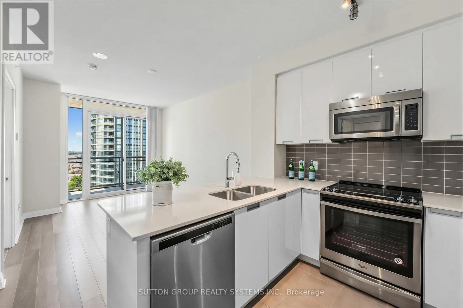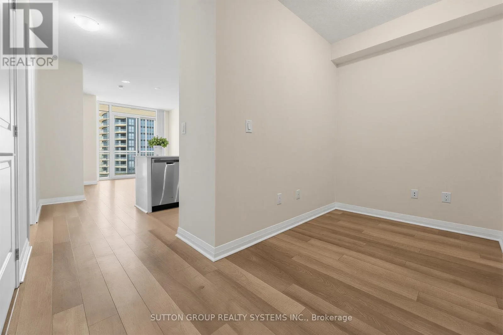 Bright and spacious 1-bedroom plus den unit located at Hurontario and Eglinton. Features 9-foot ceilings and expansive floor-to-ceiling windows providing abundant natural light. High-quality finishes throughout with an efficient, open-concept layout. Elegant elongated entryway leading to a versatile den area. Chef-inspired kitchen overlooking the dining space, ideal for entertaining. Designer cabinetry paired with stainless steel appliances, tiled backsplash, quartz countertops,