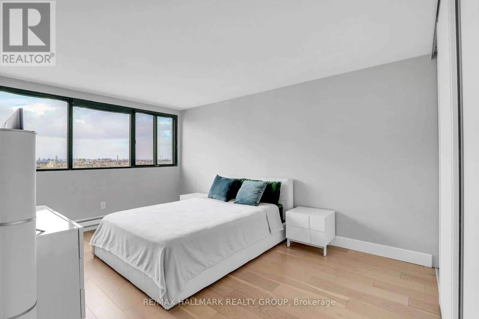 Welcome to Unit 1604 at Strathmore Towers, 1285 Cahill Drive, a stunning 2-bedroom, 1-bathroom condo sitting high on the 16th floor with breathtaking panoramic views of the Ottawa skyline. This bright and spacious approximately 945 sq ft open concept unit offers exceptional value and modern living in Ottawa’s south end, featuring engineered hardwood floors, freshly painted walls, and updated lighting