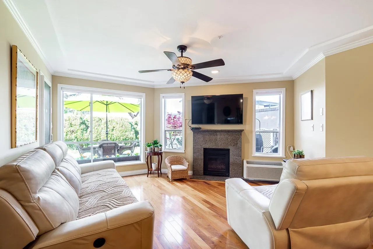 Welcome to Wedgewood’s gated 55+ community! This impeccable, cozy ground-floor 2 bed home offers 1,437 sq ft of thoughtfully designed living that feels more like a bungalow. Enjoy a lush, private garden patio-perfect for morning coffee, relaxed afternoons & cozy evenings. Features include cork flooring in the kitchen, hardwood in main living areas, and a spacious, functional layout with storage