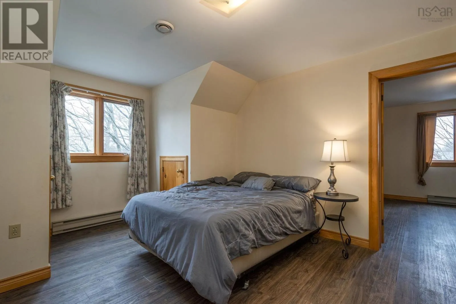 This spacious 6 bed (+ office and bonus room), 2.5 bath cape cod home features a welcoming covered verandah, and is nestled on a lovely lot with trees that provide some privacy from the road. You’ll love that both the primary bedroom with ensuite bath, and the laundry room are both located on the main level. The large primary features