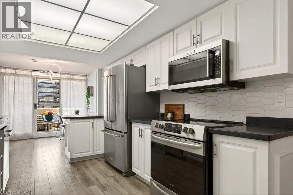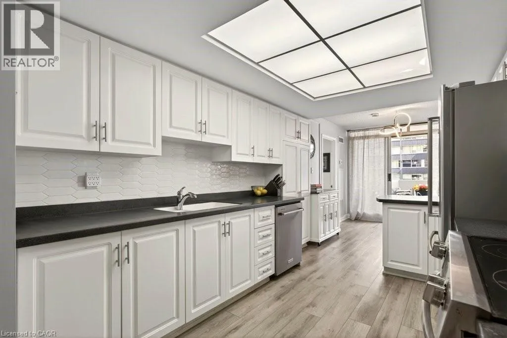 Beautifully spacious 2 bedroom, 2 bathroom + den suite at ‘Harbour Lights’ with sweeping lake views in prime downtown core location! 1,601 sq.ft. Just steps to the lake, waterfront park, restaurants, shops, hospital and highway access! Open concept living/dining filled with natural light featuring an electric fireplace with stone surround. Oversized eat-in kitchen with stainless steel appliances and walkout to