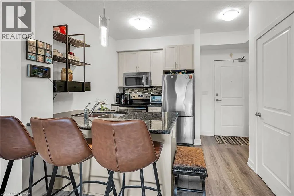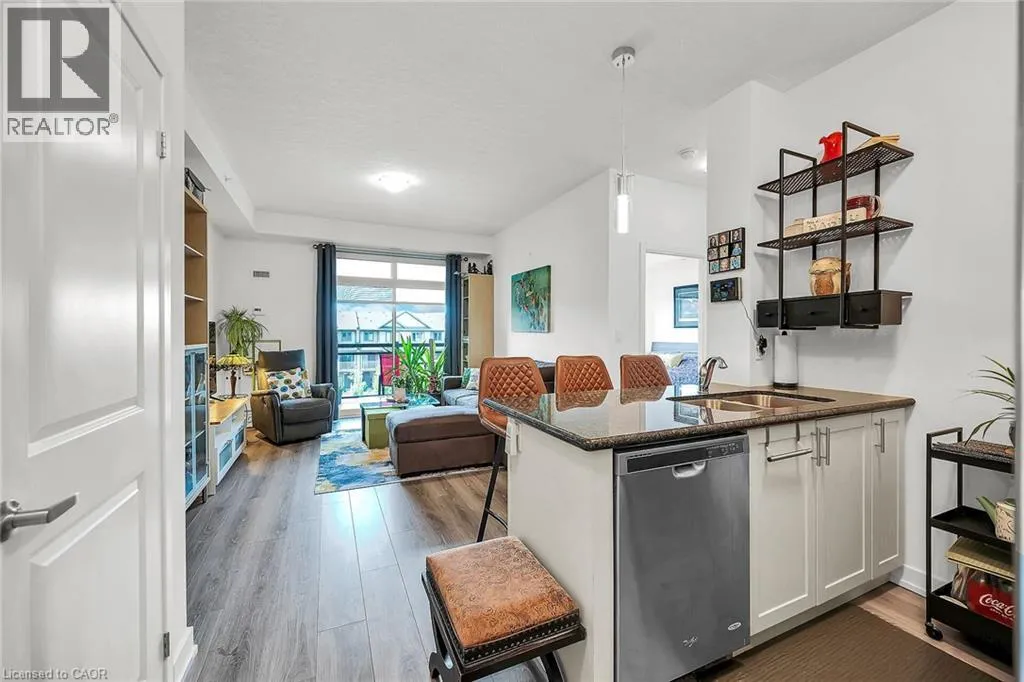 Welcome to Waterfront Trails — Lakeside Living at Its Finest! Step into this immaculate 1-bedroom condo just steps from the lake. This bright, open-concept unit boasts floor-to-ceiling windows, modern laminate flooring, and an upgraded kitchen complete with quartz counters, a breakfast bar island, and premium stainless steel appliances. Enjoy the outdoors from your 63 sq. ft. private balcony, and appreciate