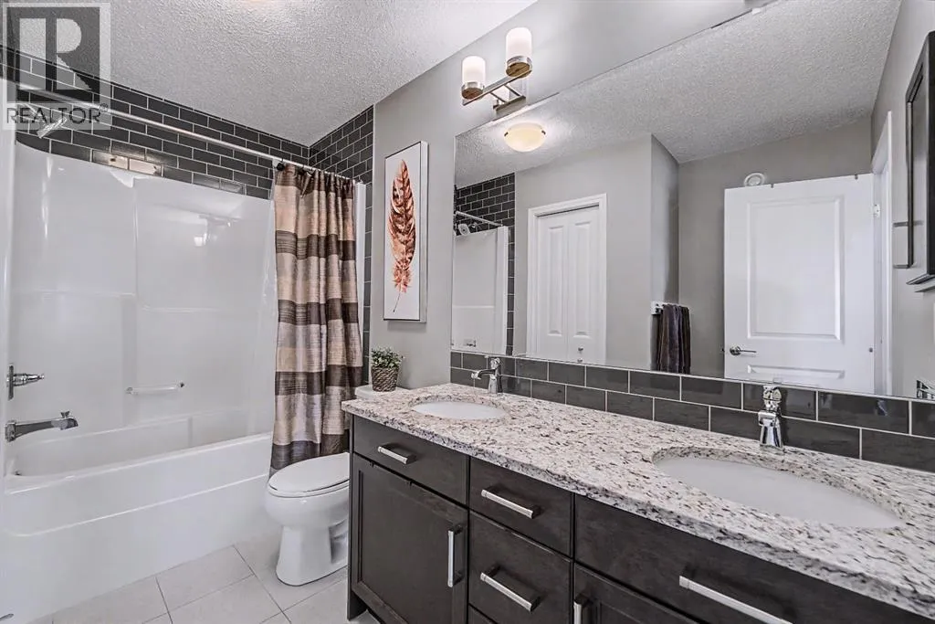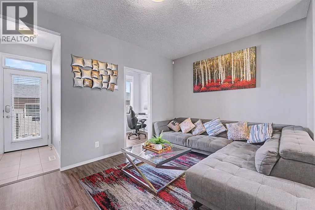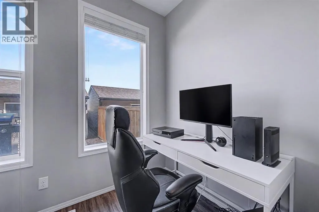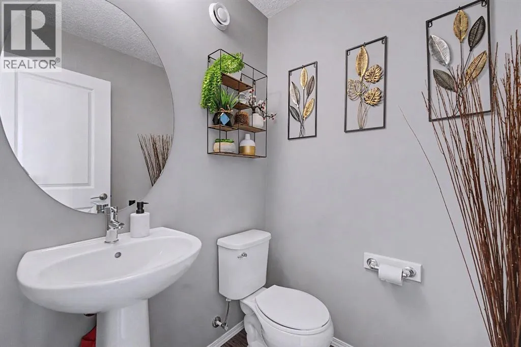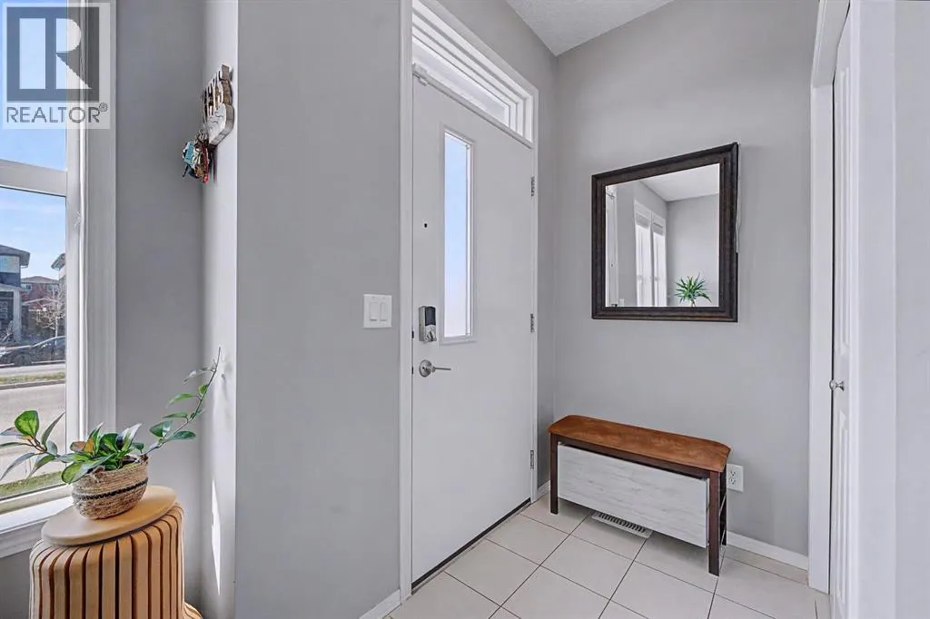 inside to an inviting open-concept main floor, greeted by a welcoming foyer and a bright dining area framed by three large windows that flood the space with natural sunlight. The main level is finished with luxury vinyl plank flooring, adding both durability and a modern touch throughout. The kitchen is both stylish and practical, featuring a large island, breakfast bar, granite countertops, stainless steel appliances, a gas stove/oven, and rich mocha-coloured cabinetry that beautifully complements the space. The main floor also offers a spacious living area with an electric fireplace, a home office, a 2-piece bathroom, and a mudroom for added convenience.Upstairs, you’ll find a thoughtfully designed layout with three bedrooms and a dedicated laundry room. The primary bedroom, located on the south end of the home, is a bright and spacious retreat complete with large windows, a walk-in closet, and a 5-piece ensuite featuring dual sinks. Down the hall, a versatile nook area provides the perfect space for a home office, study, or flex area to suit your needs. Two additional bedrooms are complemented by a 4-piece bathroom with shared access, making it functional for families.The fully developed basement (approximately 638 sq. ft.) offers incredible additional living space and income potential, featuring a separate entrance, a stylish wet bar with quartz countertops and white backsplash, a 4-piece bathroom, a bedroom, storage, and a recreation area ideal for family entertainment or movie nights.Step outside to your private fenced backyard, designed for low maintenance and enjoyment. The space includes a 10×10 deck, pe rfect for summer barbecues, morning coffee, or relaxing evenings, along with a double detached garage with convenient alleyway access.Located in the amenity-rich community of Cornerstone, residents enjoy close proximity to Highstreet (Chalo! FreshCo, Shoppers Drug Mart), parks, playgrounds, and a new Regional Park. You’re also just 5–10 minutes from major destinations including CrossIron Mills, Costco, SkyPointe Landing, Cardel Rec Centre, and YYC Airport, with quick access to Stoney Trail and Country Hills Blvd for easy commuting. Future community growth includes a planned Major Activity Centre (MAC), multiple school sites, and new transit stations, making this an excellent opportunity in a rapidly developing area.This is a fantastic opportunity to own a modern, move-in-ready home with income potential in one of Calgary’s fastest-growing communities. (id:62650)