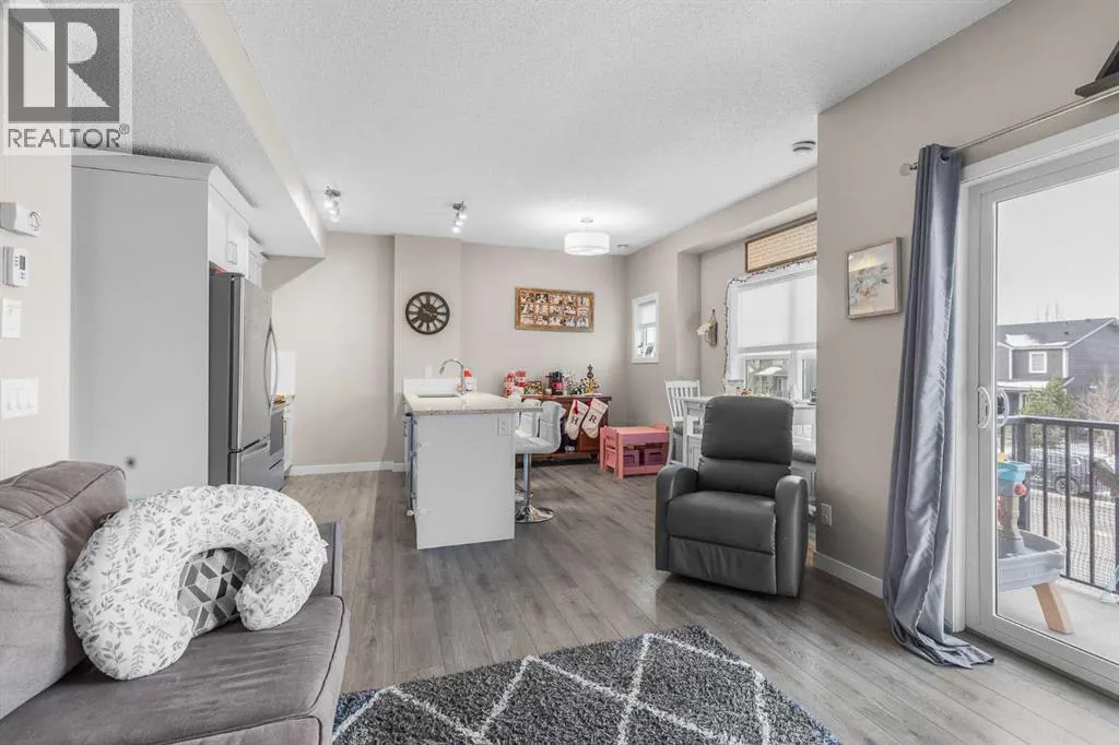Welcome to this beautifully maintained townhome in the sought-after community of Fireside in Cochrane. Offering thoughtful upgrades at an affordable price, this home is the perfect blend of comfort, style, and convenience. The main level features wide-plank vinyl flooring and 9-foot ceilings that enhance the bright, open-concept layout. The gourmet kitchen is a standout, showcasing quartz countertops, white Shaker-style cabinetry,