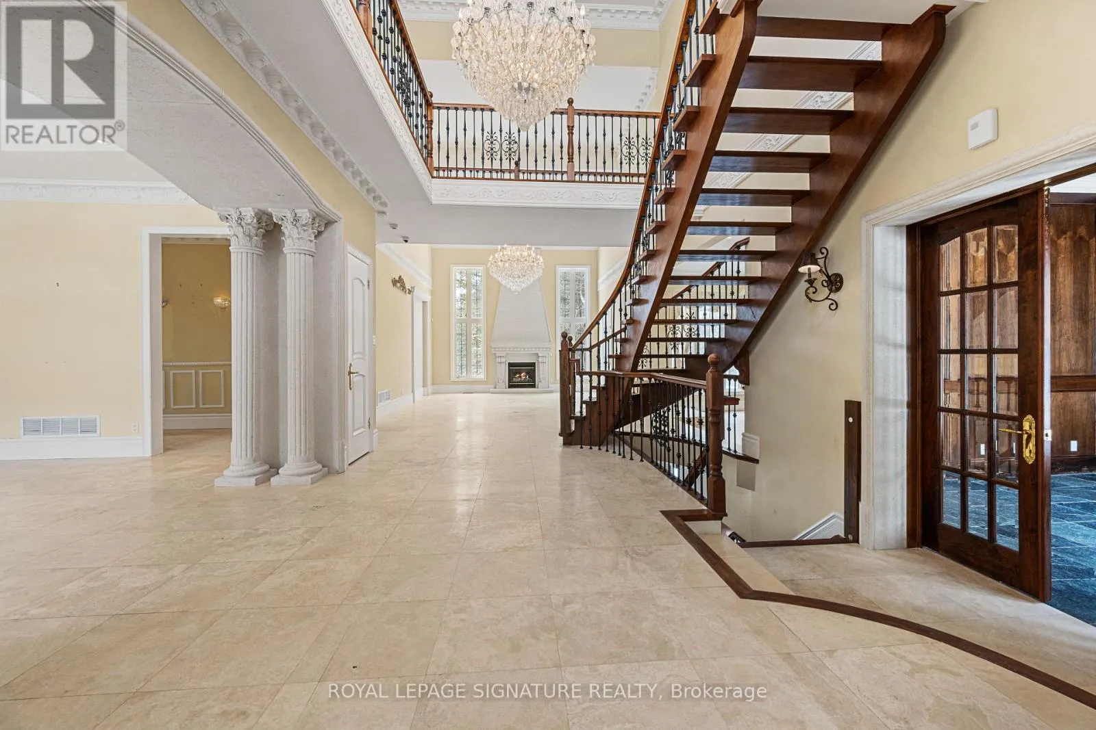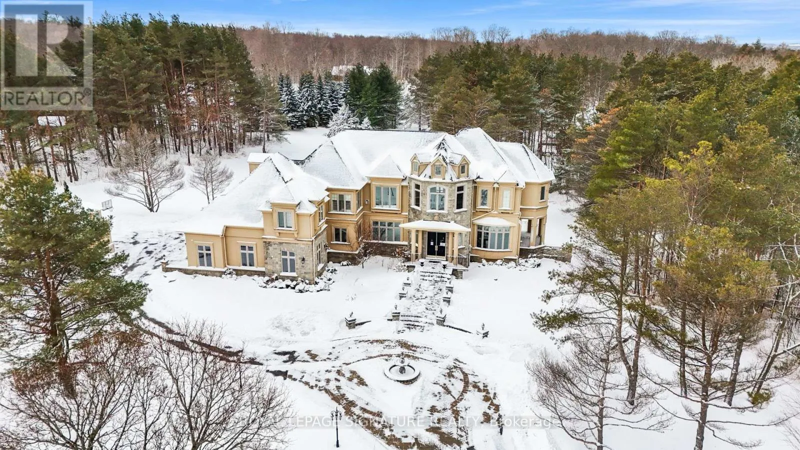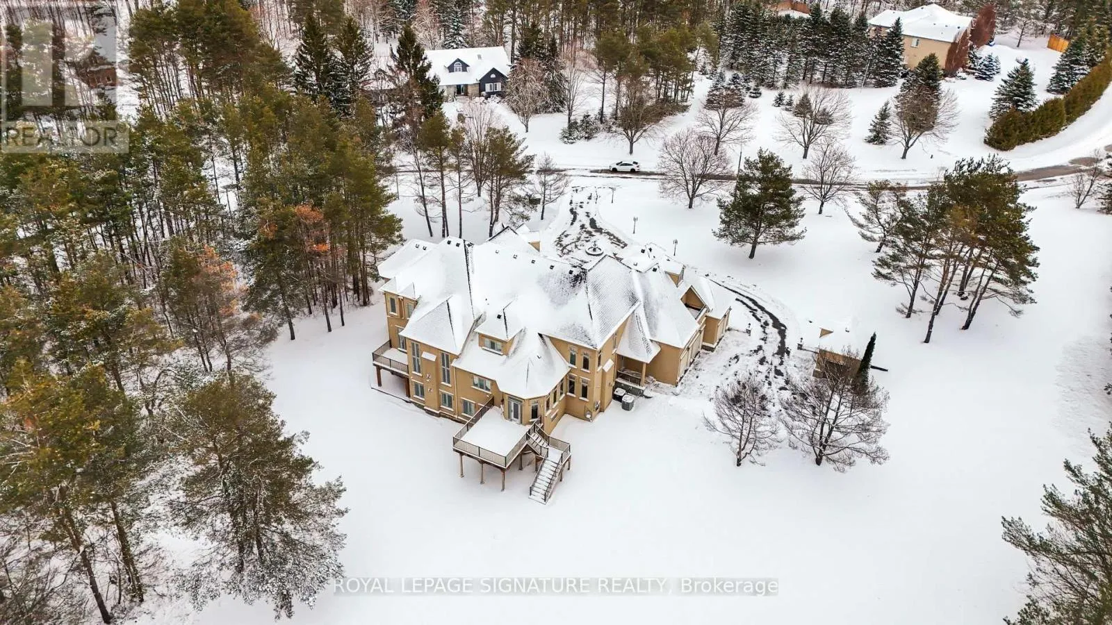Welcome to this rare offering combining over 8500 sq ft of total living space, thoughtful design, and a prestigious setting in an exclusive enclave. Nestled on a quiet private cul-de-sac and surrounded by prestigious multi-million-dollar estates, this exceptional residence sits on a sprawling two-acre lot offering privacy, space, and refined living. A grand main floor welcomes you with soaring ceilings