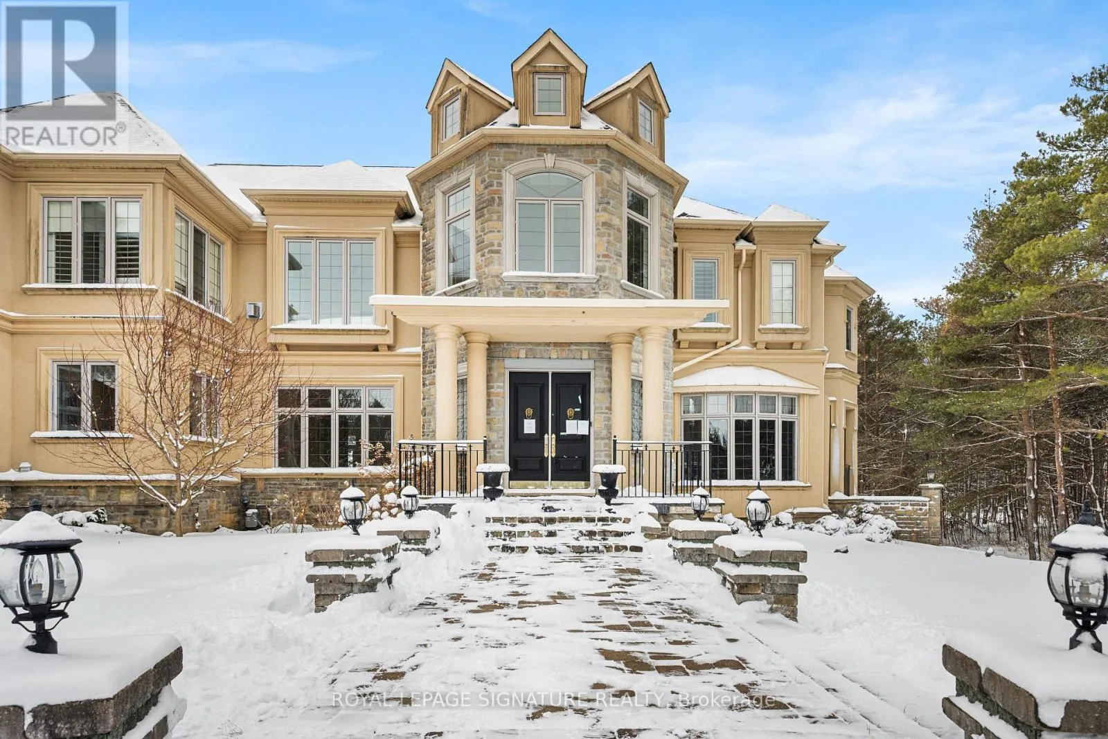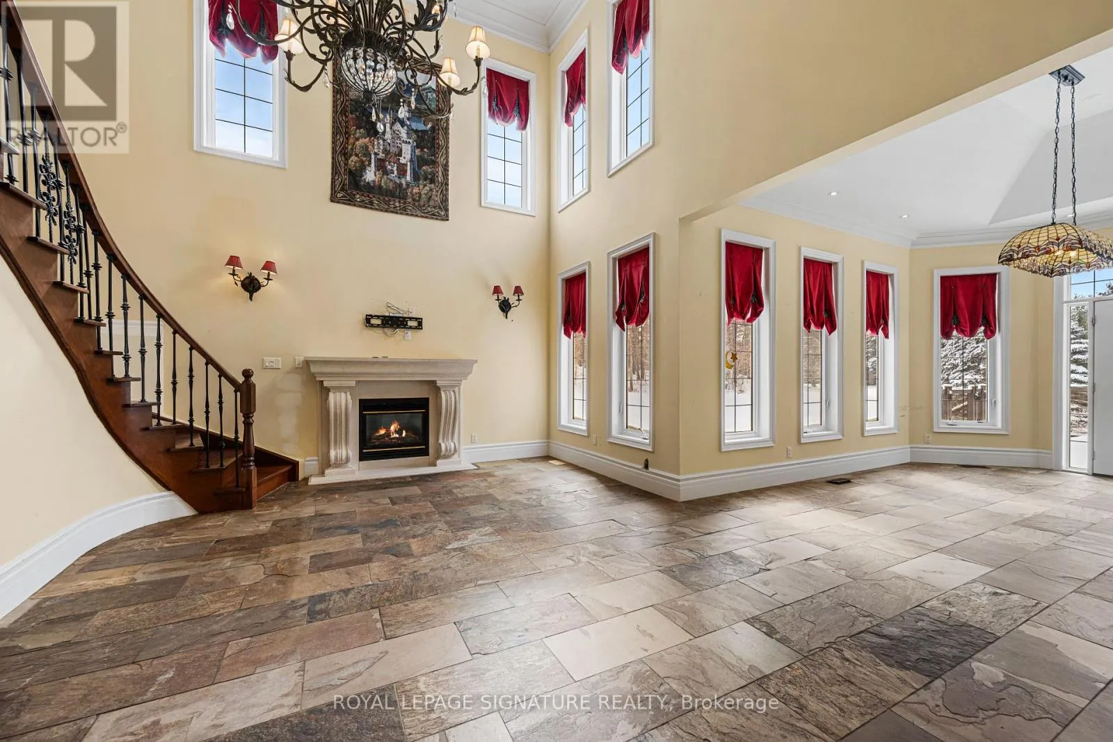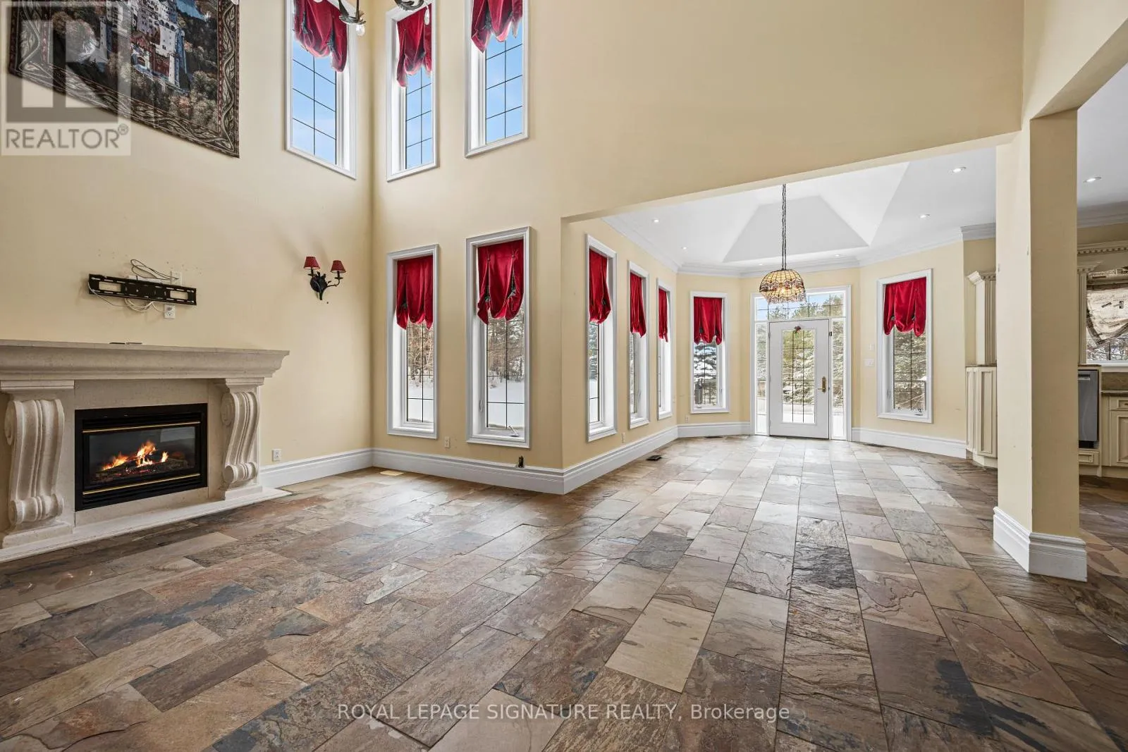 Welcome to this rare offering combining over 8500 sq ft of total living space, thoughtful design, and a prestigious setting in an exclusive enclave. Nestled on a quiet private cul-de-sac and surrounded by prestigious multi-million-dollar estates, this exceptional residence sits on a sprawling two-acre lot offering privacy, space, and refined living. A grand main floor welcomes you with soaring ceilings