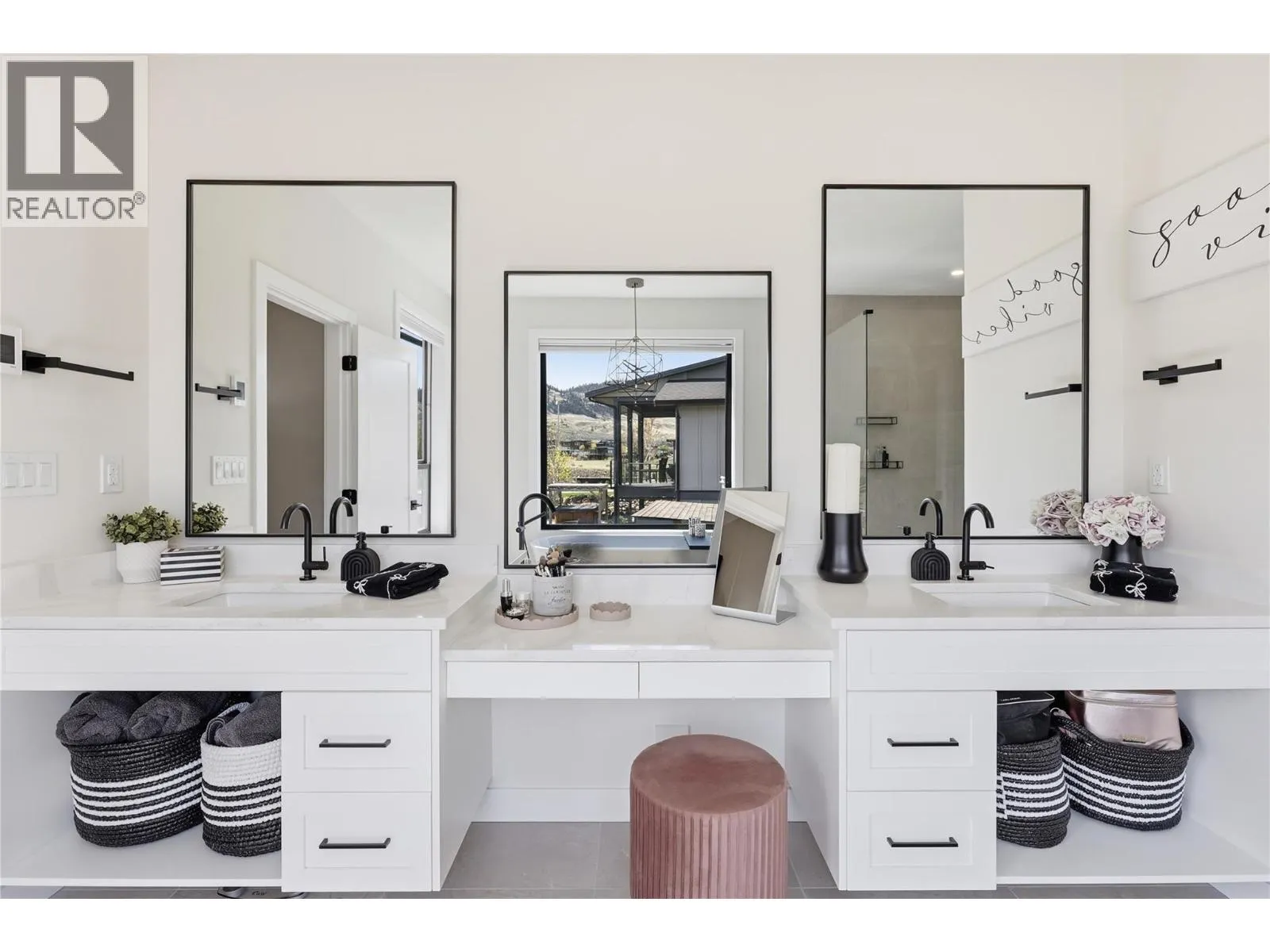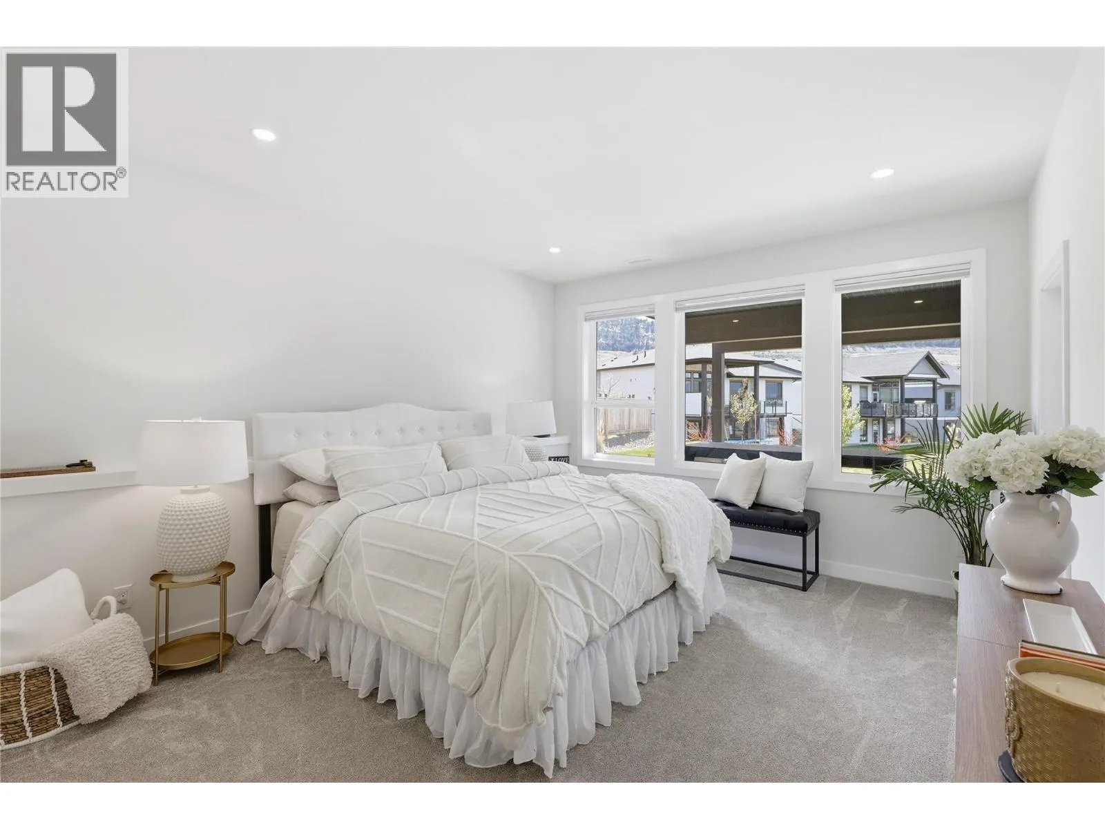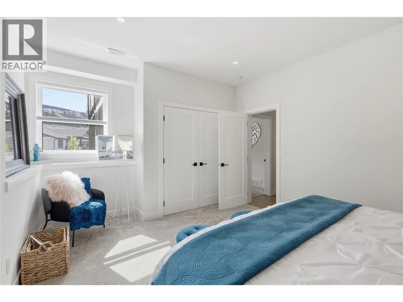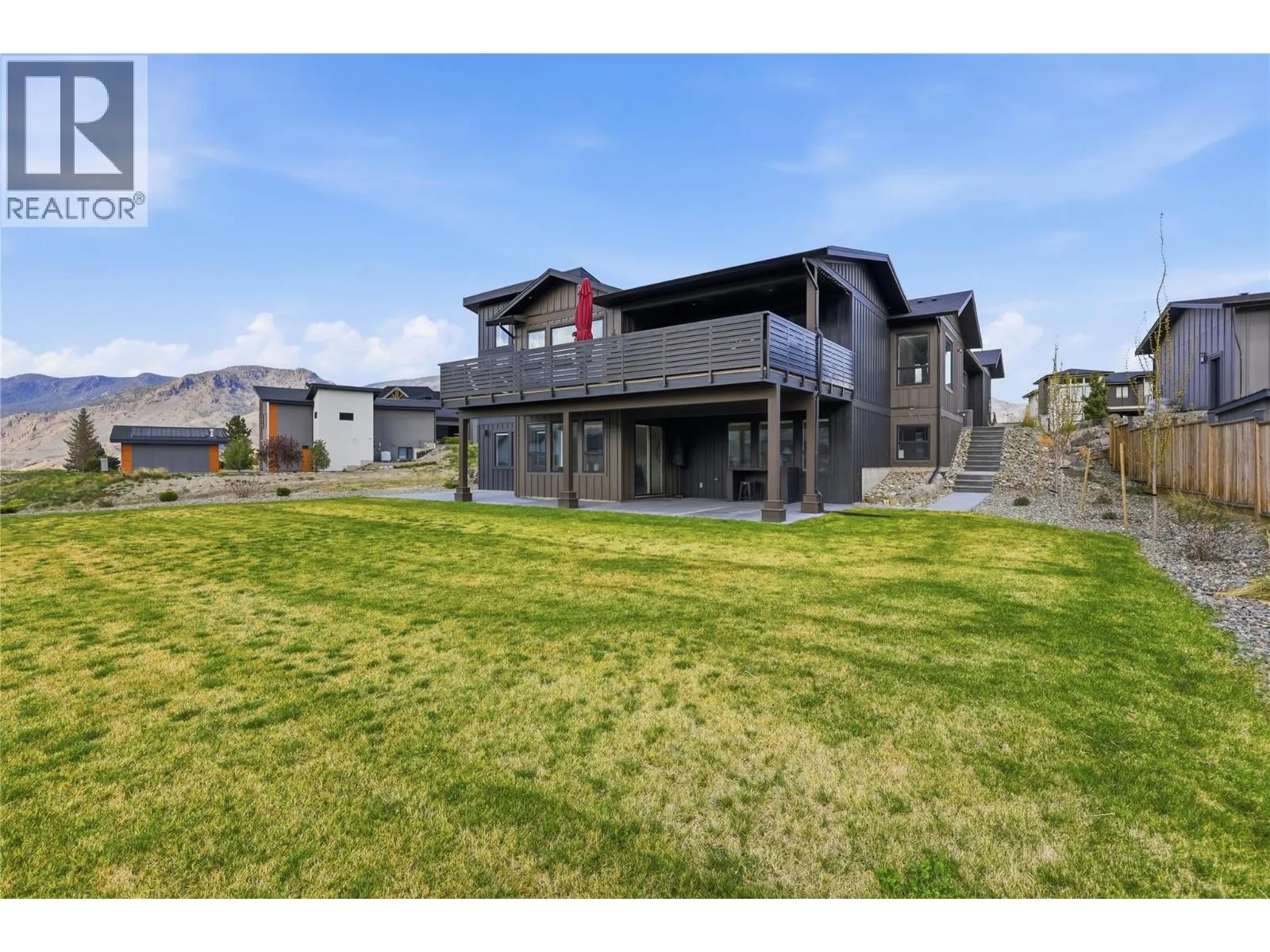 A home defined by scale, light, and a layout that feels considered the moment you walk in. The main living space is defined by height and volume, with oversized windows that draw in natural light and frame views of the lake and surrounding hills. Kitchen, dining, and living connect seamlessly and extend to a covered deck, creating a natural indoor