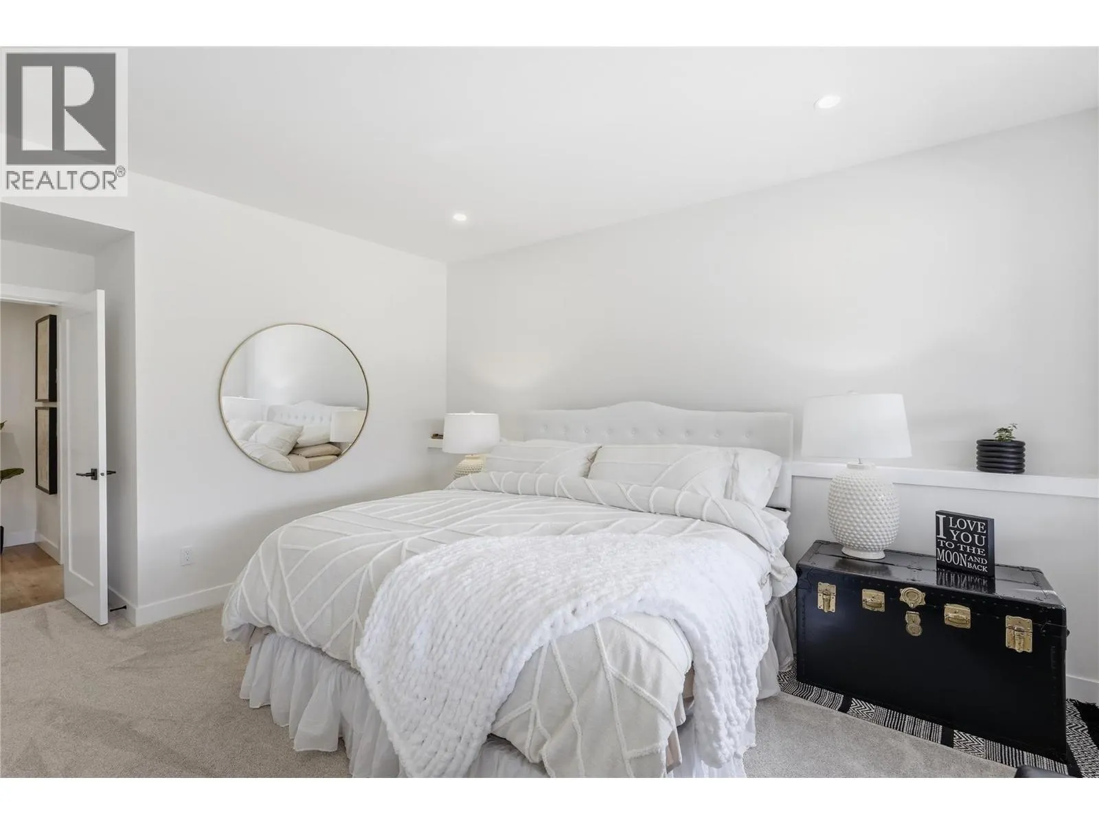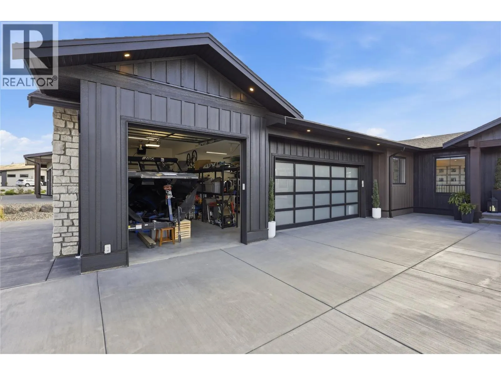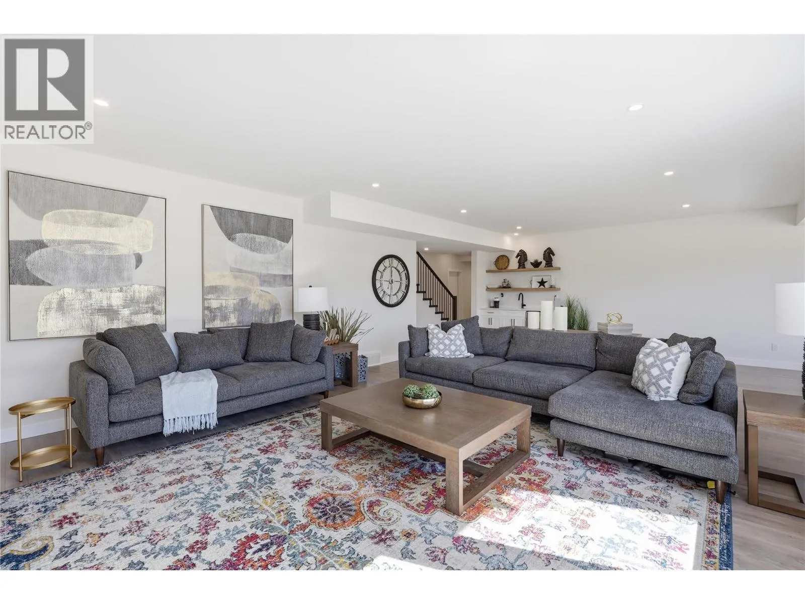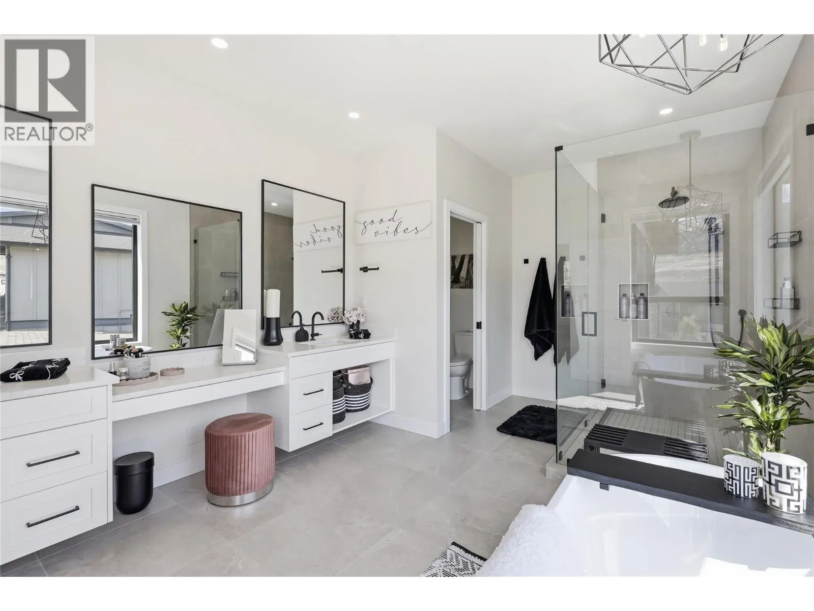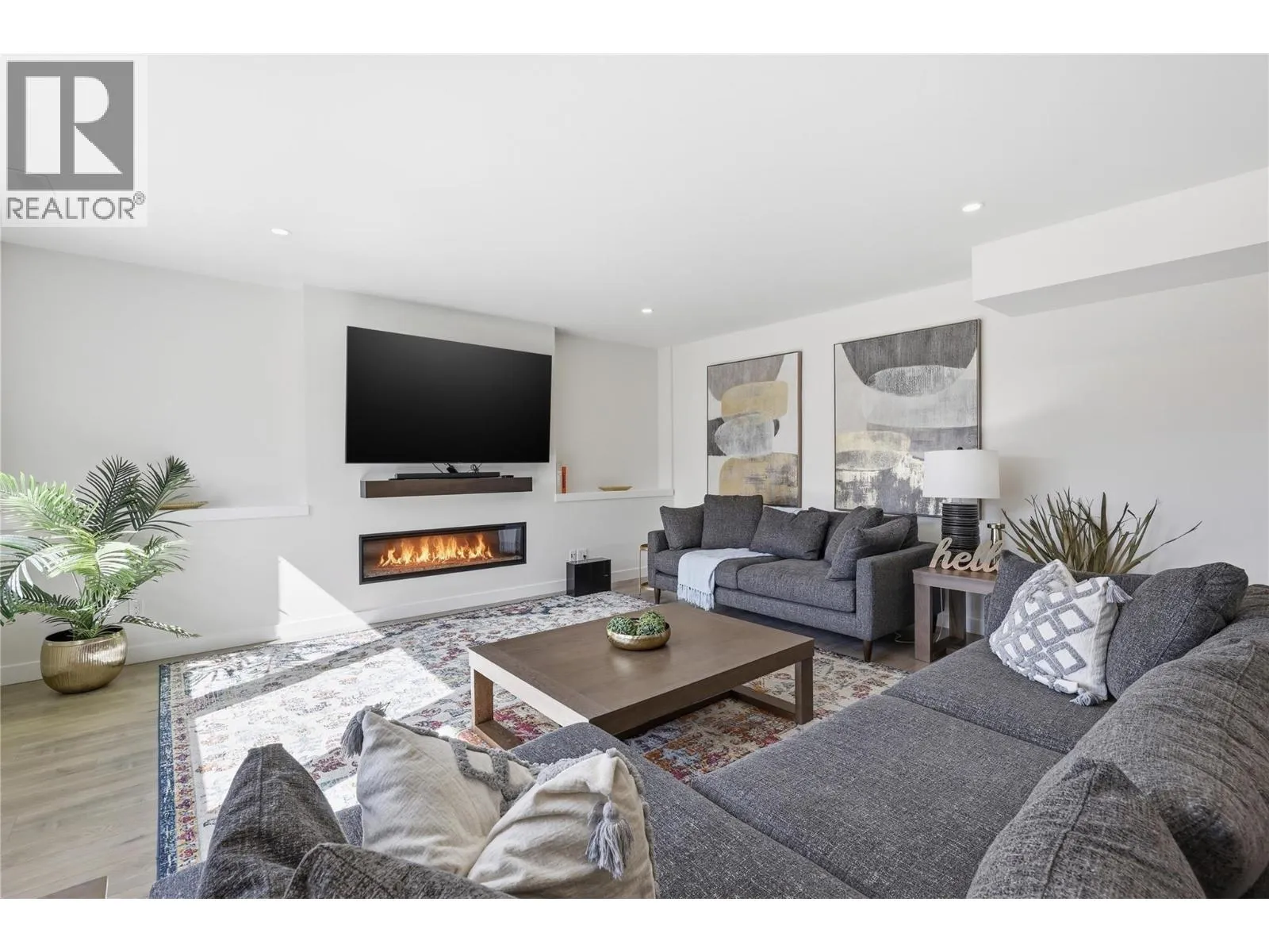 A home defined by scale, light, and a layout that feels considered the moment you walk in. The main living space is defined by height and volume, with oversized windows that draw in natural light and frame views of the lake and surrounding hills. Kitchen, dining, and living connect seamlessly and extend to a covered deck, creating a natural indoor