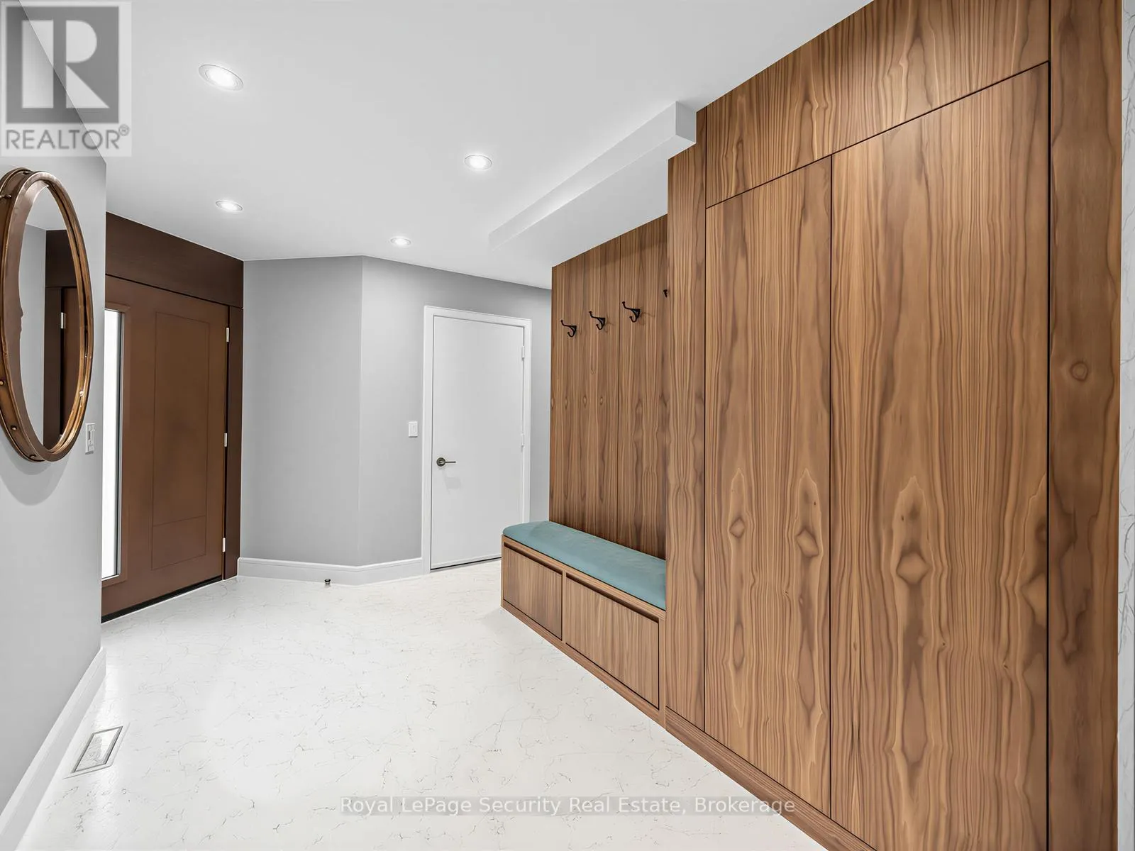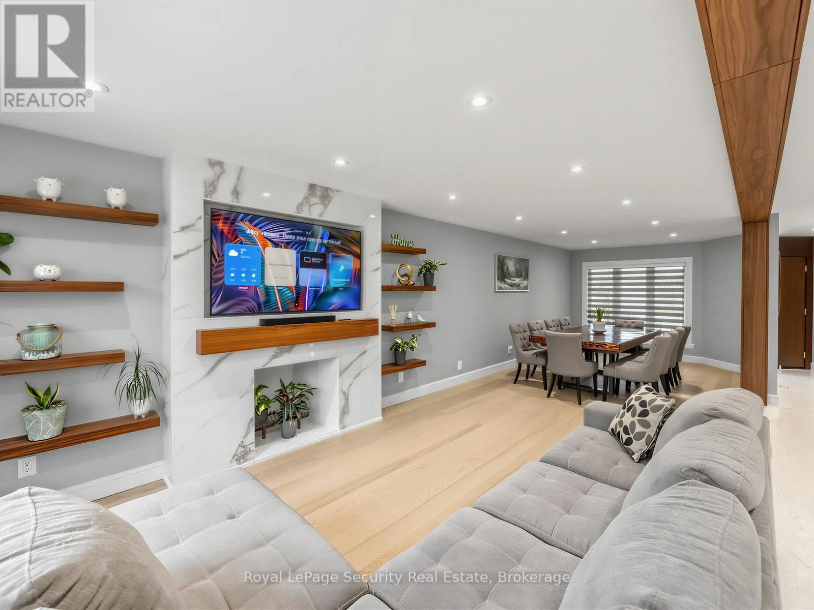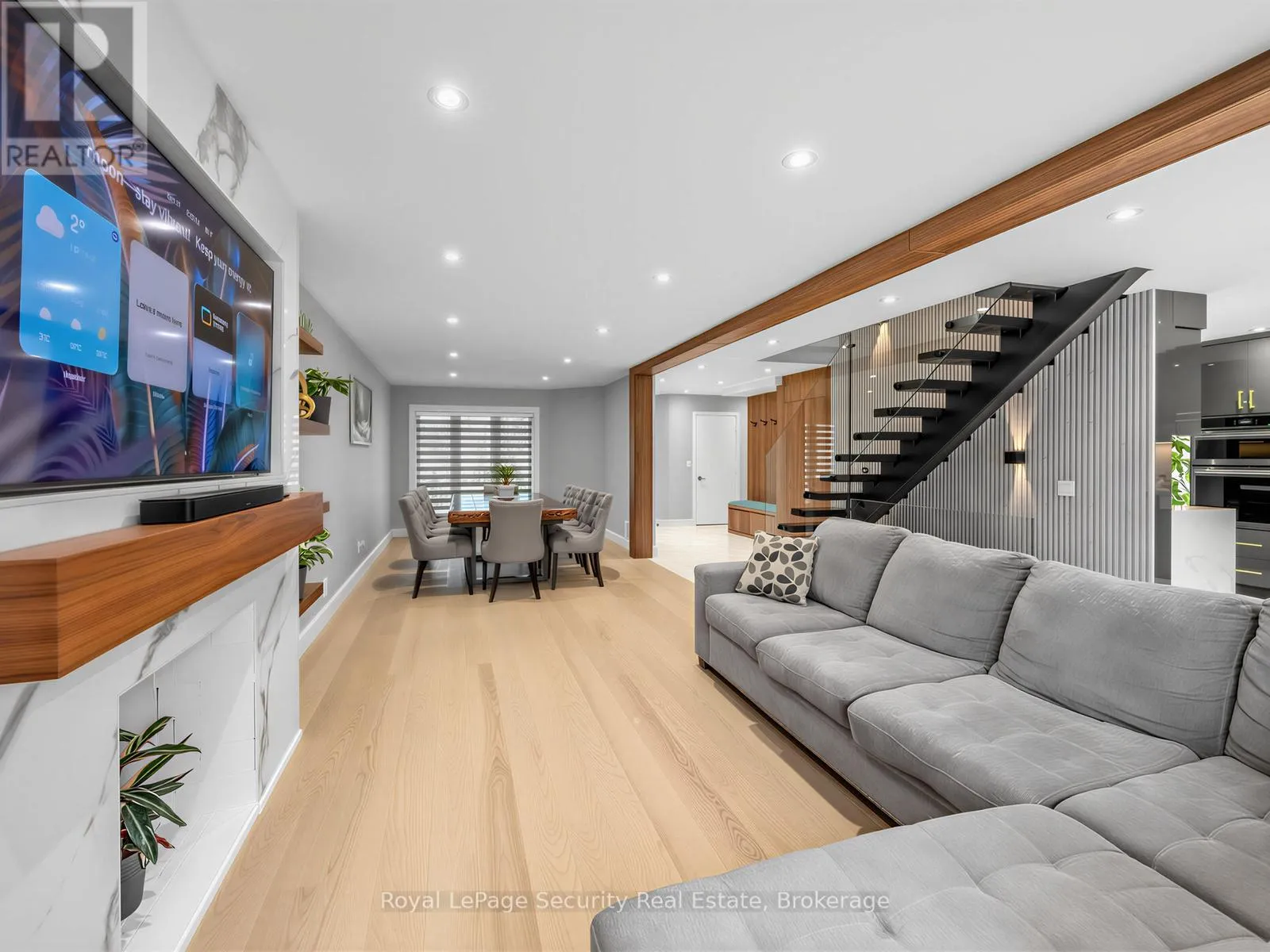 Stunning Brampton residence set on a generous lot in a park-like setting within a mature, family-friendly neighborhood. This home has been extensively redesigned and renovated with exceptional materials and craftsmanship throughout. A beautifully reimagined foyer welcomes you with a floor-to-ceiling custom feature wall, complete with built-in seating and a concealed closet. From here, sweeping sightlines reveal the main floor’s open-concept