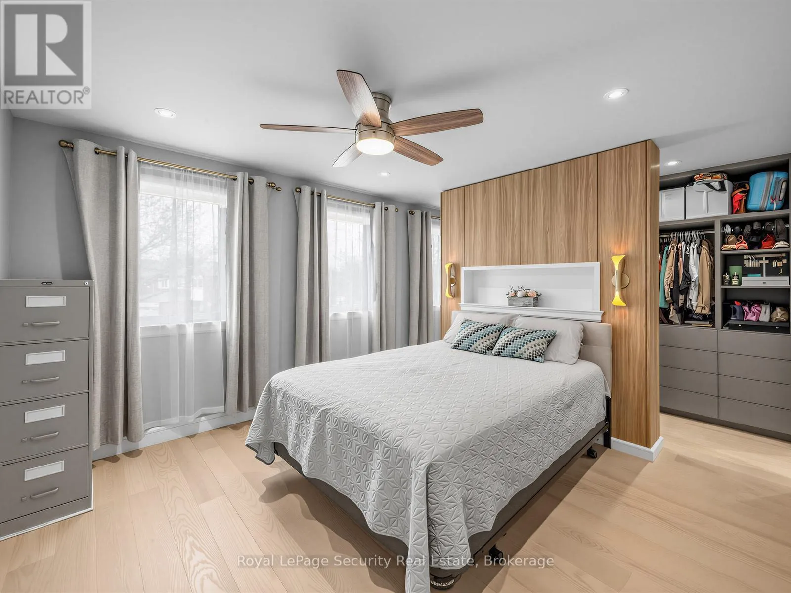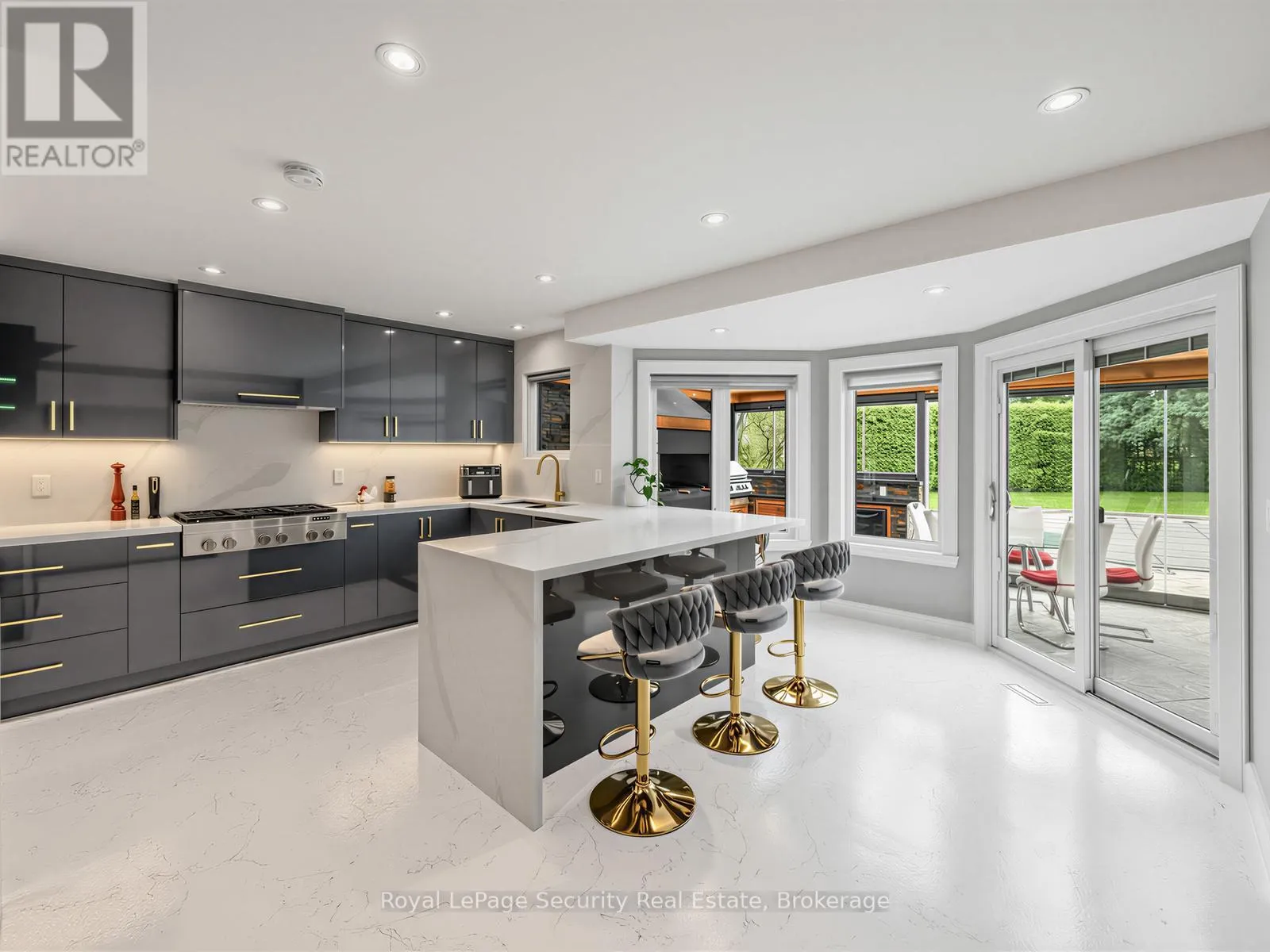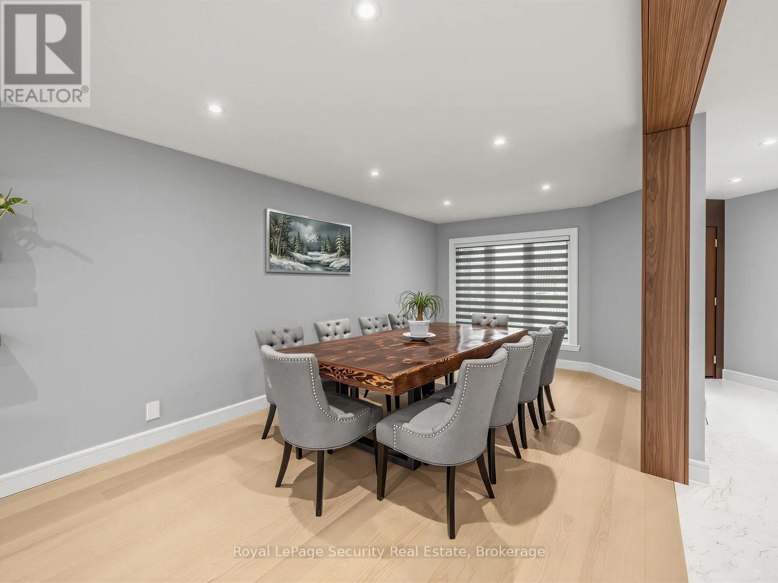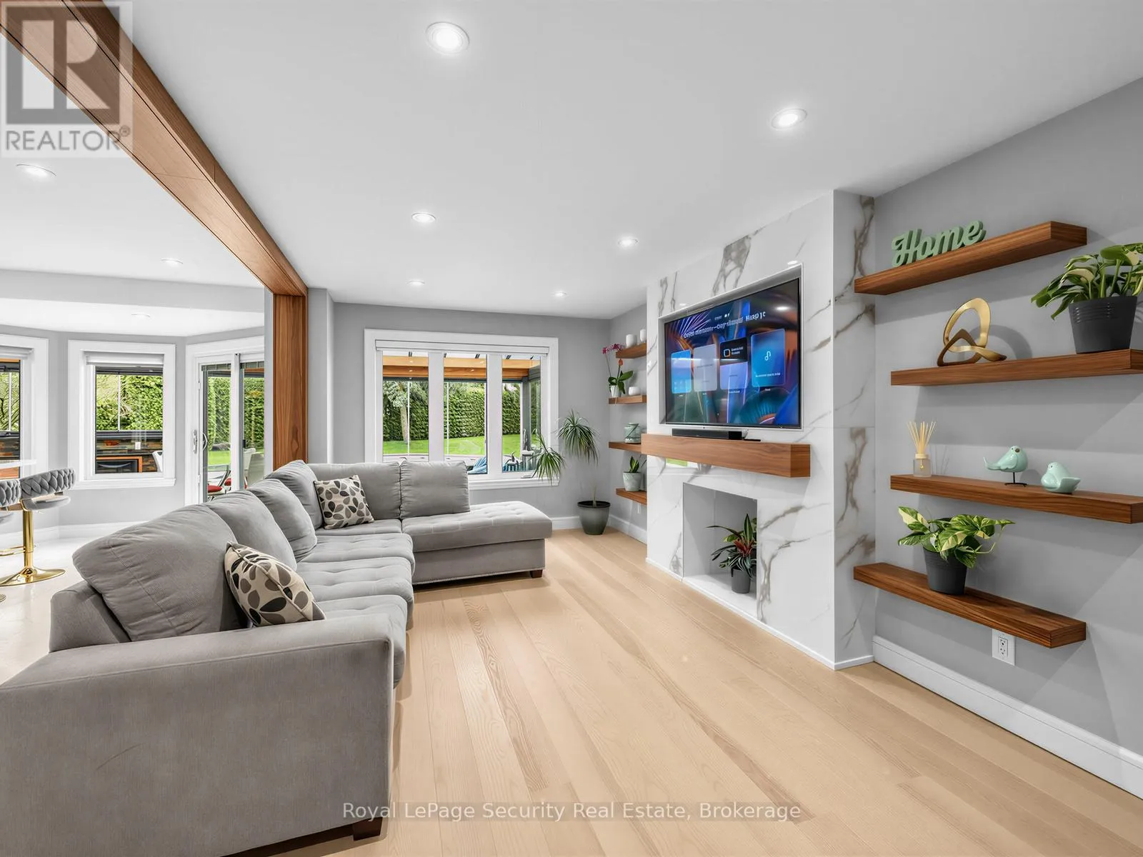 Stunning Brampton residence set on a generous lot in a park-like setting within a mature, family-friendly neighborhood. This home has been extensively redesigned and renovated with exceptional materials and craftsmanship throughout. A beautifully reimagined foyer welcomes you with a floor-to-ceiling custom feature wall, complete with built-in seating and a concealed closet. From here, sweeping sightlines reveal the main floor’s open-concept