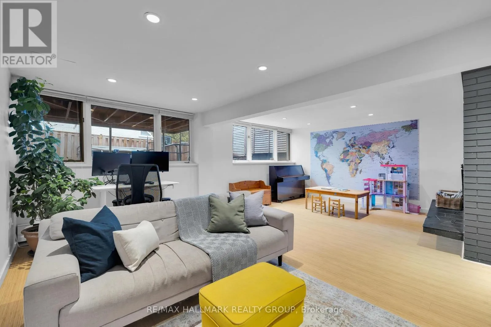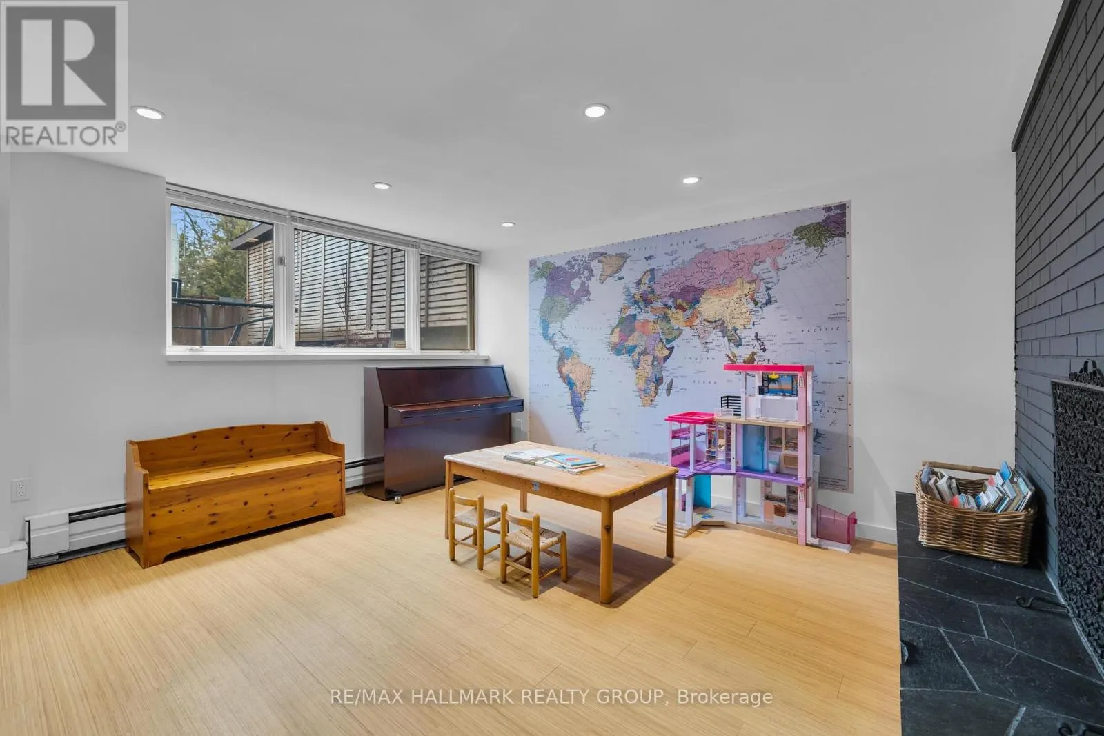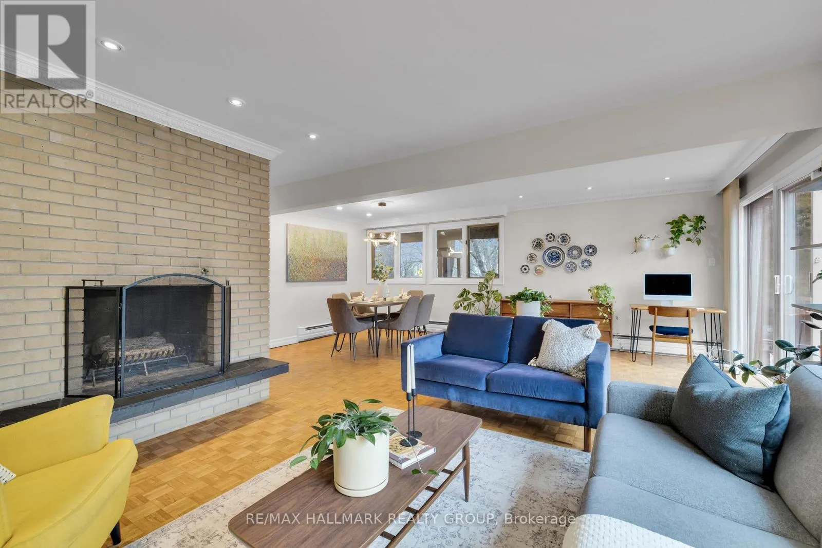 Welcome to this exceptional mid-century modern home siding directly onto Princess Margriet Park, complete with playground, tennis courts, and a skating rink! This sun-filled home offers a bright and spacious main level, highlighted by expansive windows that bathe the interior in natural light. The open-concept living and dining areas are anchored by a charming wood-burning fireplace and enhanced with crown