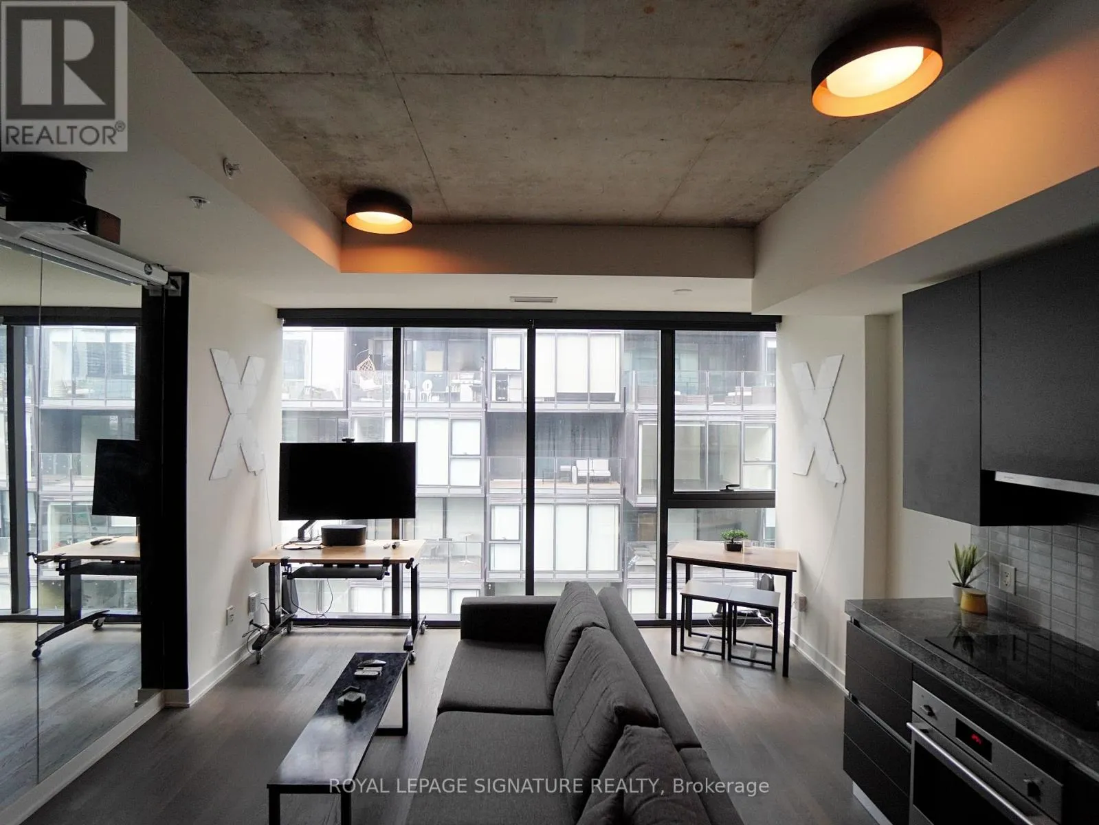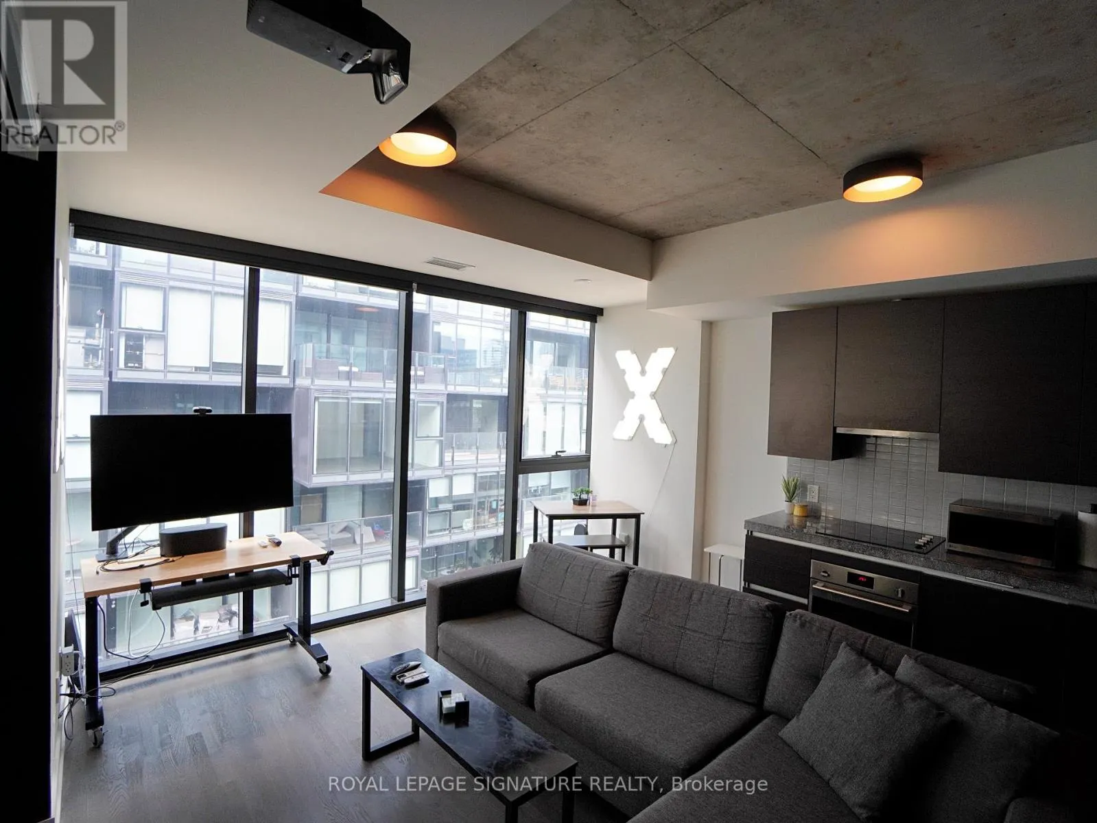 The coveted Thompson Residences proudly presents this fully furnished, smart-enabled & tech’d-out 1 bedroom suite! Showcasing engineered rich hardwood flooring, floor-to-ceiling windows and soaring 9ft exposed polished concrete ceilings that flood the space with natural light. Unlike a traditional condo, the entry hallway is lined cleverly with tons of built-in storage space. Enter the living, dining and kitchen areas –