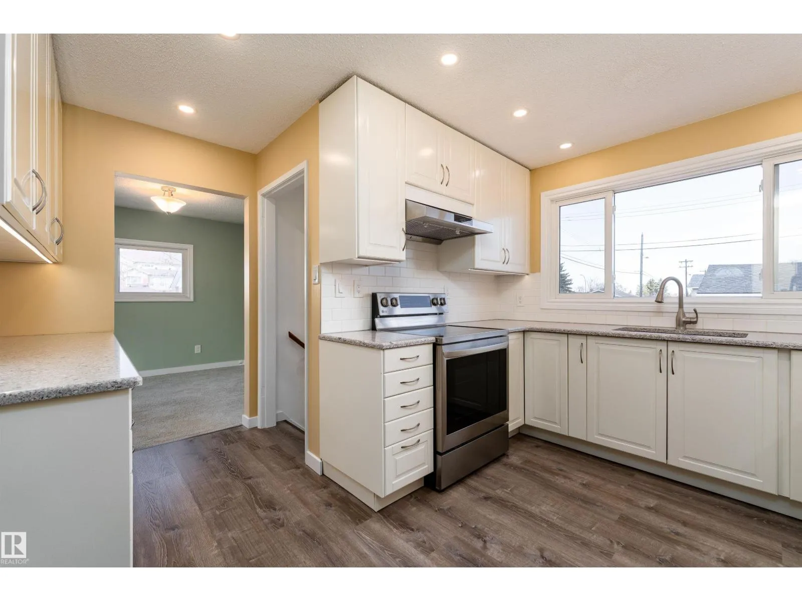 INCREDIBLE VALUE in this WONDERFUL 4 Bedroom Bungalow with double car garage in Belvedere! Quiet corner lot facing a green space. Professionally landscaped, maintenance free, backyard oasis with vinyl fencing, concrete patio, fire pit, natural gas BBQ hook-up, and artificial grass! A functional main floor plan features a spacious living room with grand windows, a large dining area, and a