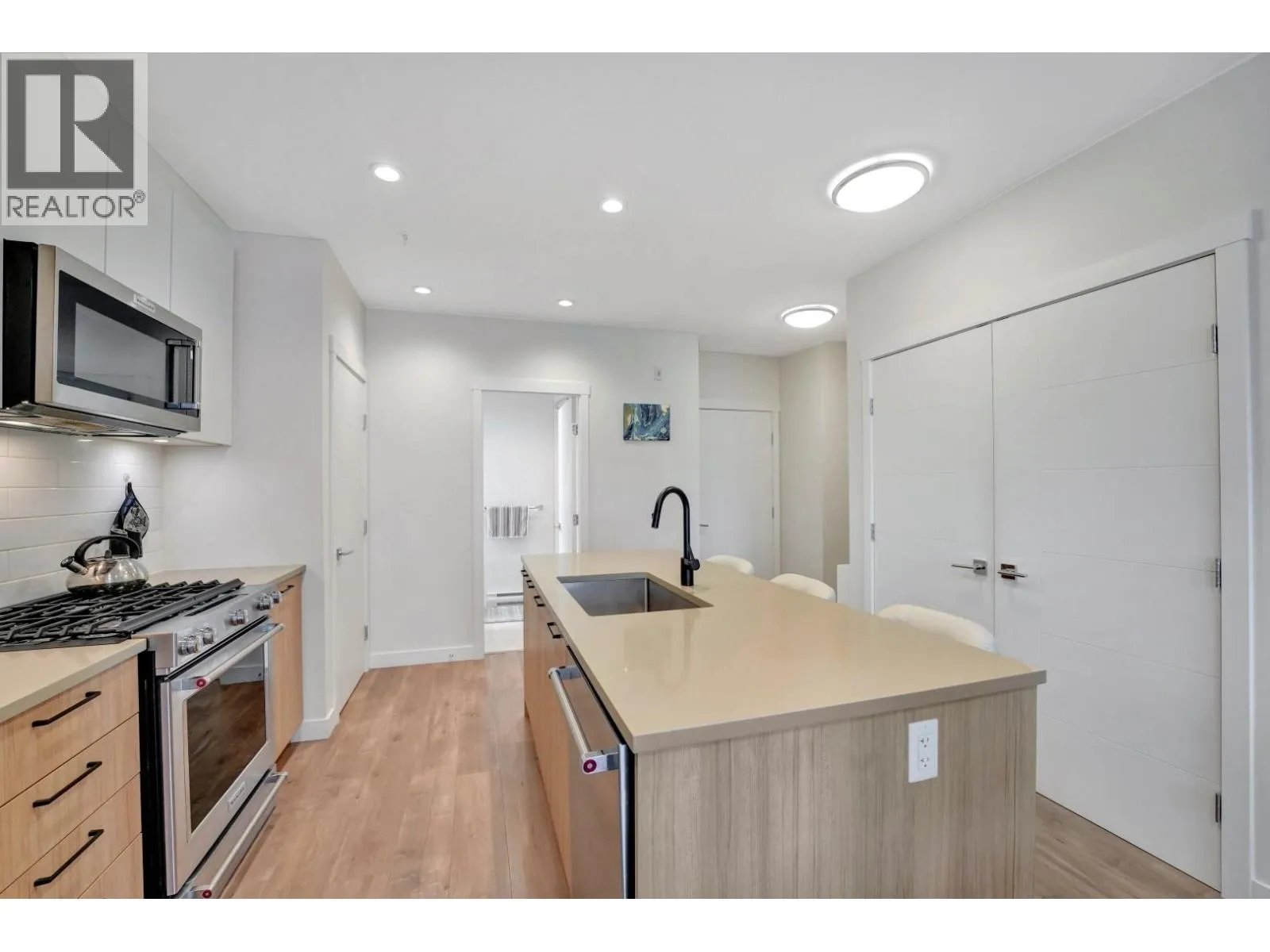 Bright CORNER unit at Duet by Adera, a modern mid-rise in the heart of Burquitlam. This 2-bedroom, 2-bath home features extra windows for abundant natural light, enhanced privacy, and an airy open-concept layout-a great home for upsizers or first-time buyers. Built with innovative CLT construction for improved comfort and sustainability. The sleek kitchen offers quartz countertops, island, premium KitchenAid stainless
