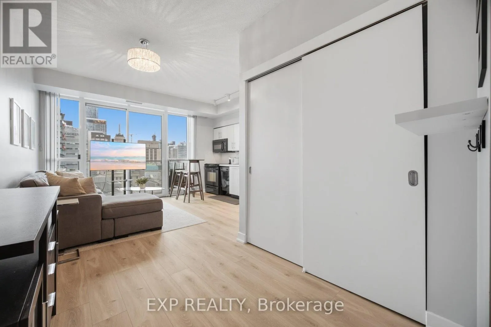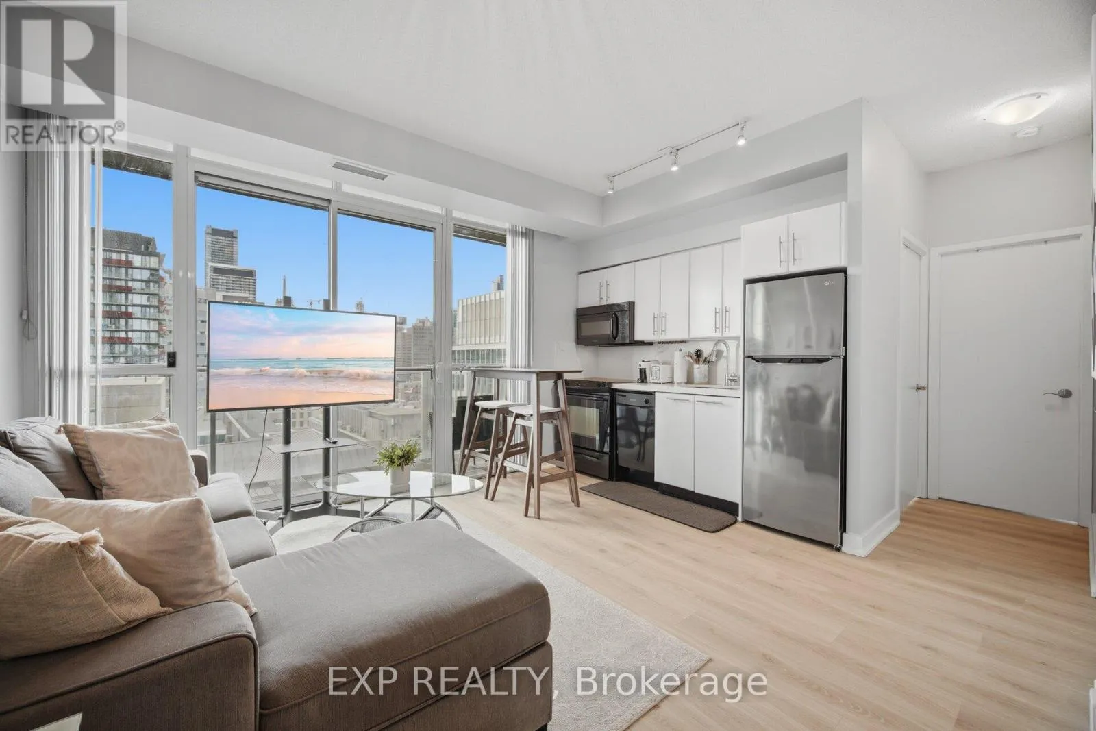 Enjoy upscale downtown living in this fully furnished 2-bedroom corner suite, ideally located just steps from the iconic Shangri-La and Toronto’s Financial District. Bright and spacious, this home features a modern open-concept layout with floor-to-ceiling windows that fill the space with natural light. Step out onto your full-length balcony with walk-outs from both the living room and bedroom, perfect for