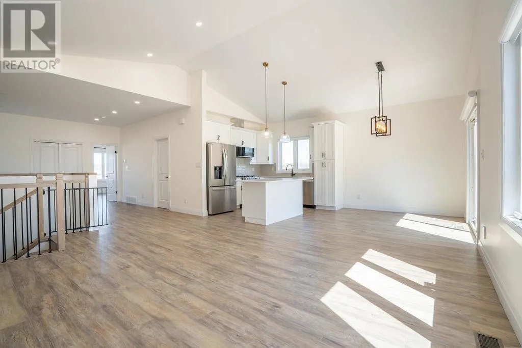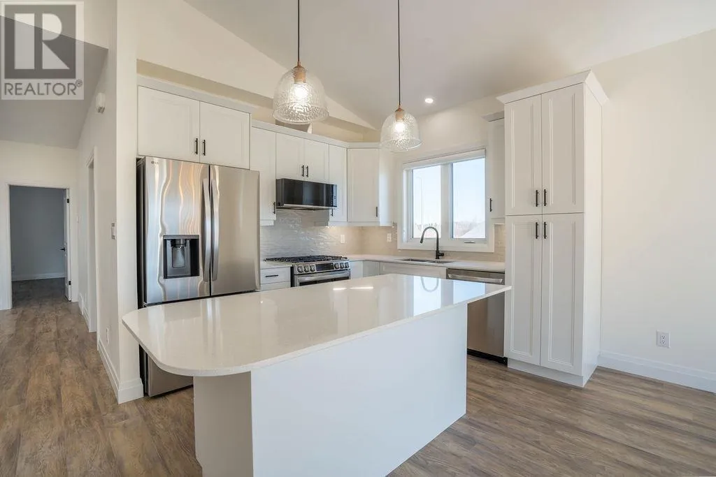 Welcome to this beautifully finished two-year-old hi-rise bungalow located in the desirable Foxborough subdivision, conveniently located near Sault Area Hospital, the Hub Trail, and local schools. Offering 1,320 sq. ft. of thoughtfully designed living space, the main level features an inviting open-concept layout with vaulted ceilings, patio doors that lead out to the deck, spacious size kitchen/dining with island and