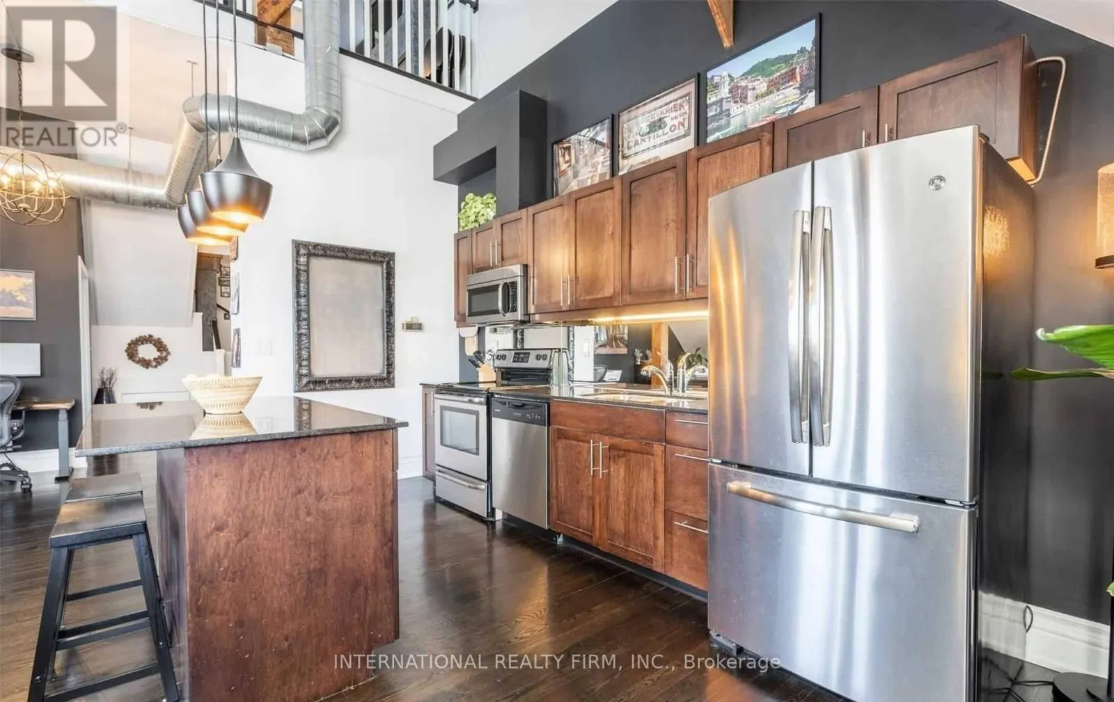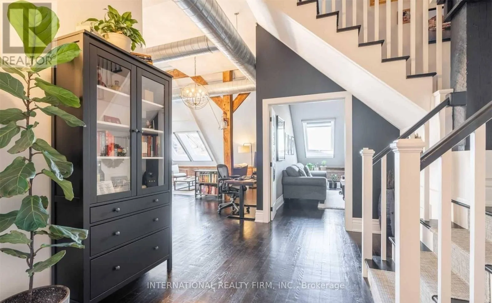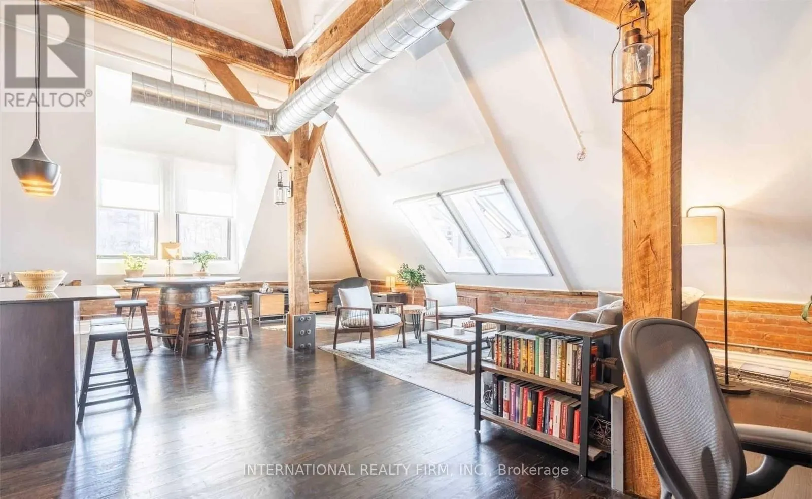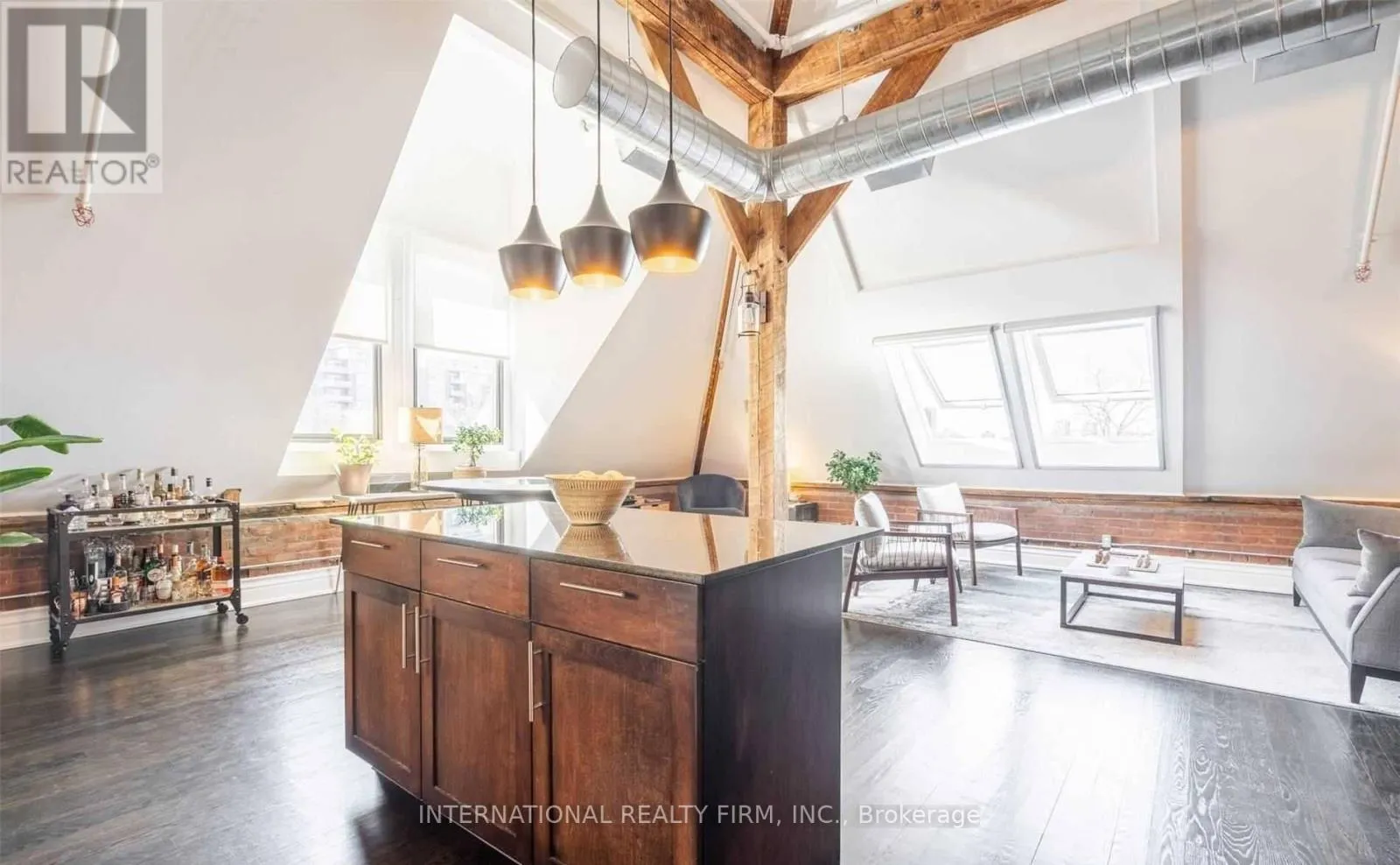 Experience the drama of true hard-loft living in PH16 at the iconic Stinson School. This isn’t just a condo; it is 1,688 sq ft of architectural history. You are immediately greeted by soaring 20-foot ceilings, original exposed brick, and massive skylights that flood the space with natural light. The main floor is an entertainer’s dream with rustic timber beams and