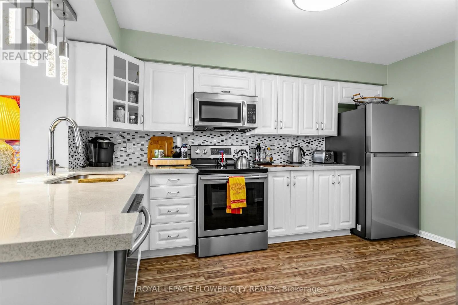 Stunning Penthouse Suite with an Open Balcony Overlooking the Niagara Escarpment. This 2 Bedroom features an Updated Kitchen with a Breakfast Bar and Quartz Counter Tops, and laminate flooring throughout. All doors in the unit have been updated. Washroom has been renovated and laundry room updated. Enjoy a bright, open modern concept layout. Includes 2 parking spots. 24-hour gated security,