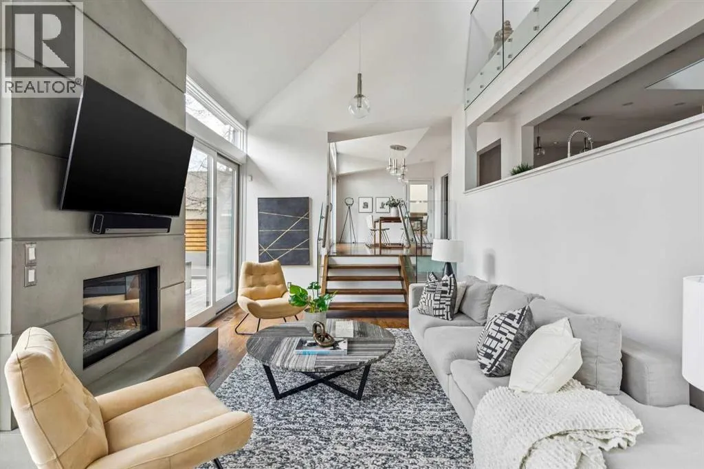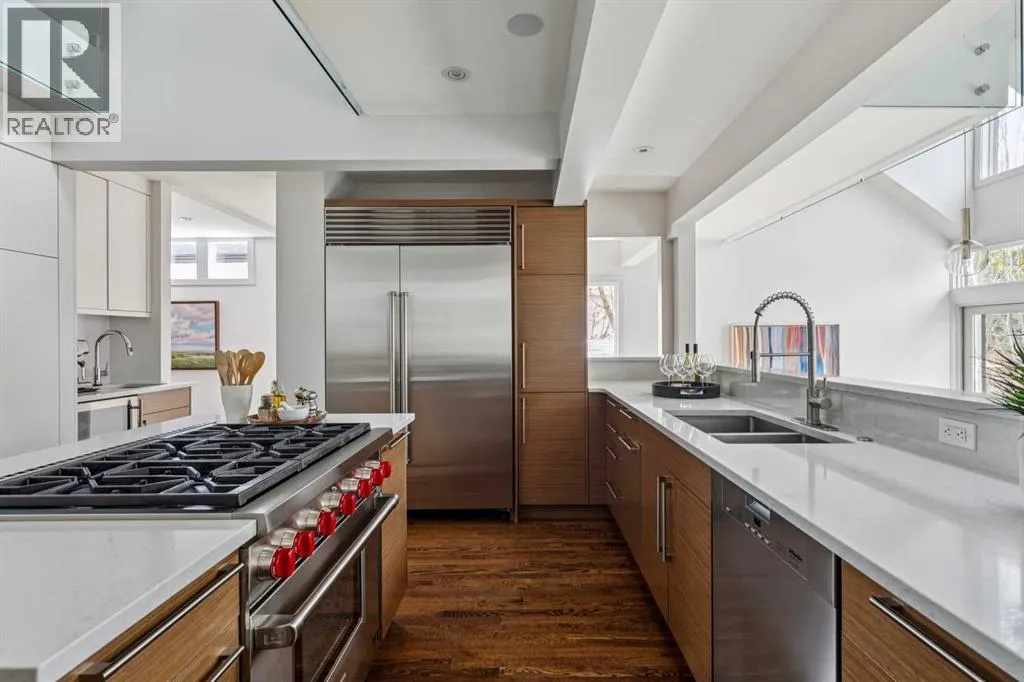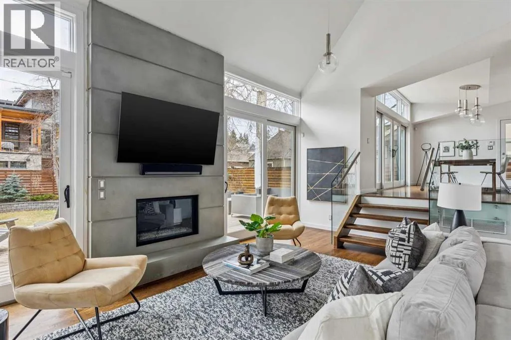 Open house Saturday April 25 2:30–4 pm. One of a kind two story executive family home in prime East Elbow Park location offering over 4000 square feet above grade, a total of 5 bedrooms, double attached garage + beautiful sunny west facing backyard. This modernist home features an intriguing layout + expansive principal rooms throughout. The elevated living room showcases