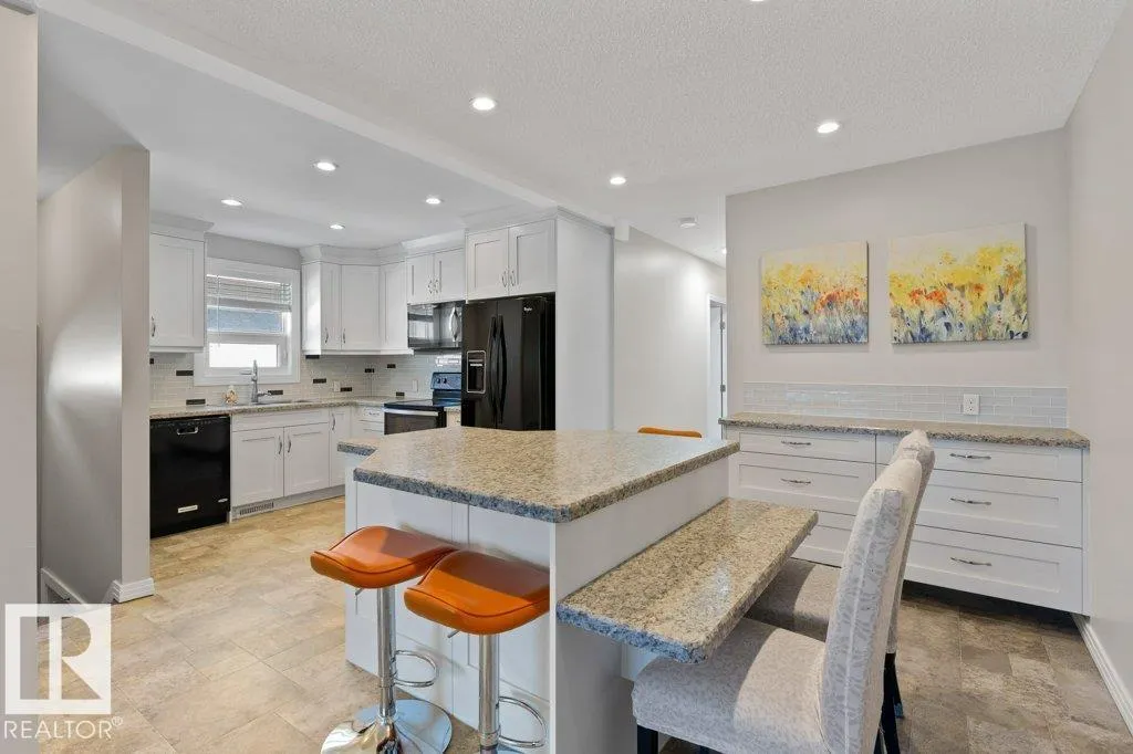 Welcome to this beautifully renovated bungalow duplex in Edmonton’s desirable Kensington neighborhood. Offering 1,050 sq ft of stylish living space, this home features two spacious bedrooms on the main floor and an additional bedroom downstairs. Extensive upgrades throughout include newer flooring and carpeting, creating a fresh, modern feel. The fully updated kitchen boasts to-ceiling white cabinetry, a large island with