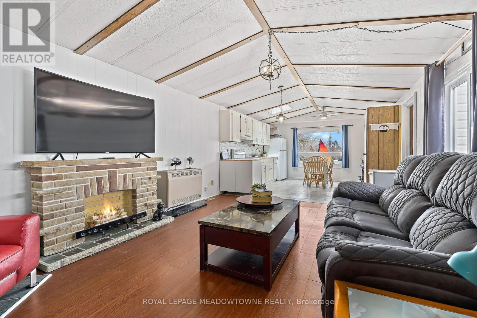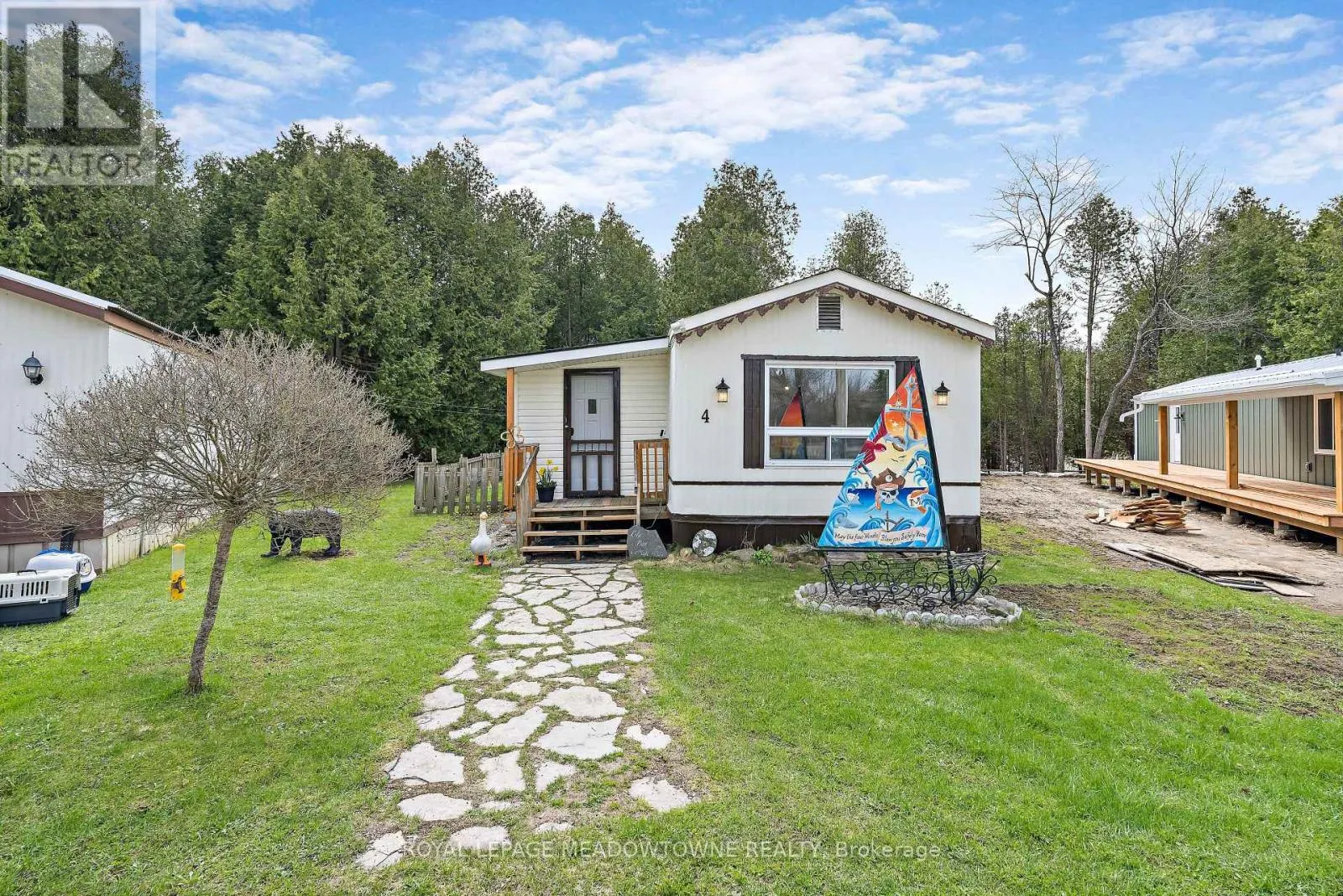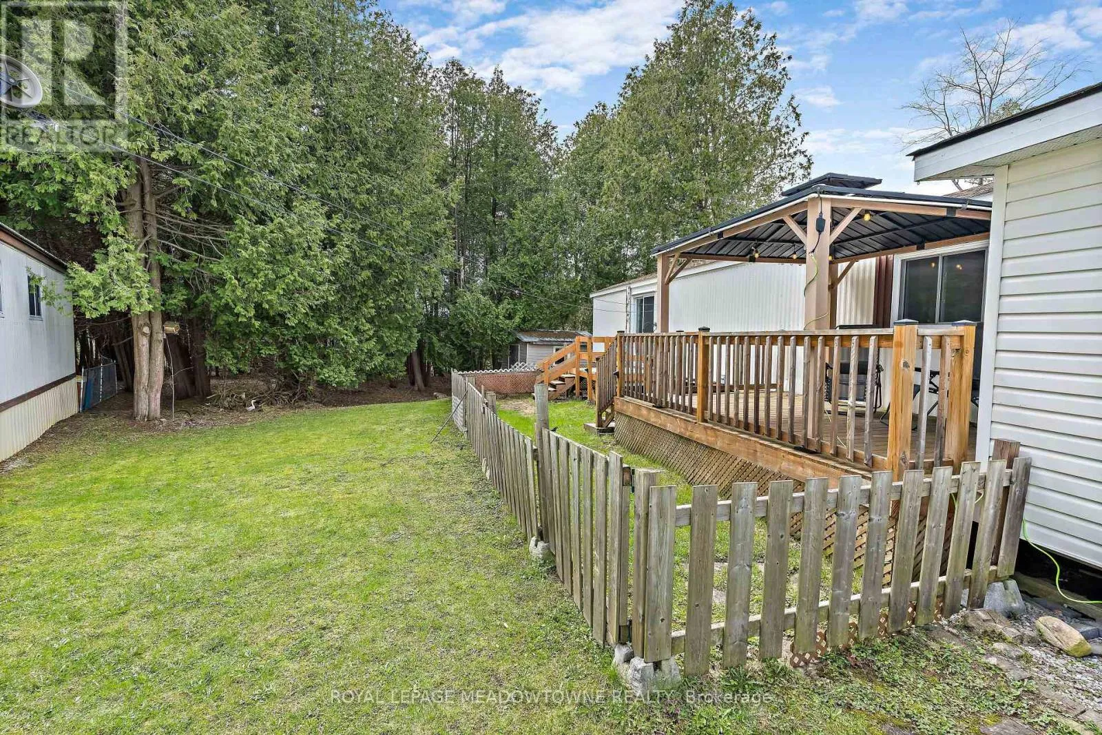 Lovely, Turnkey, bright & spacious mobile home nestled on a quiet Cul-De-Sac in the Town of Erin’s desirable Stanley Park. Backing on to conservation and walking distance to Stanley Park pond. Open concept living room and large eat-in kitchen with vaulted ceiling. Exterior was painted in 2024. Enjoy the peace and quiet on the new deck (2021) with Gazebo. Current