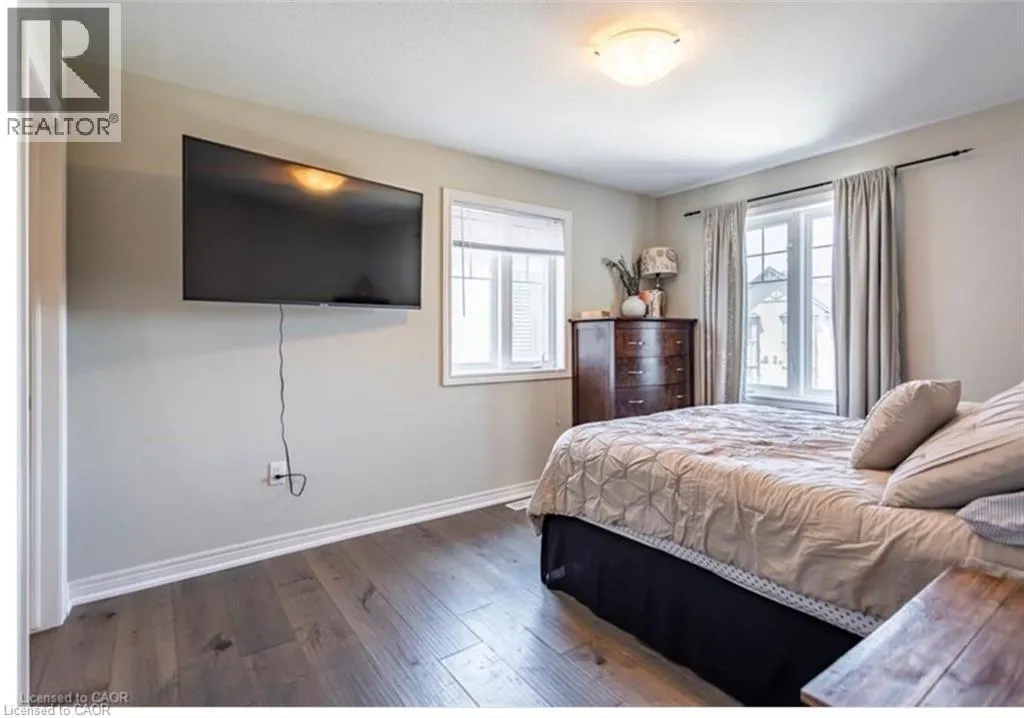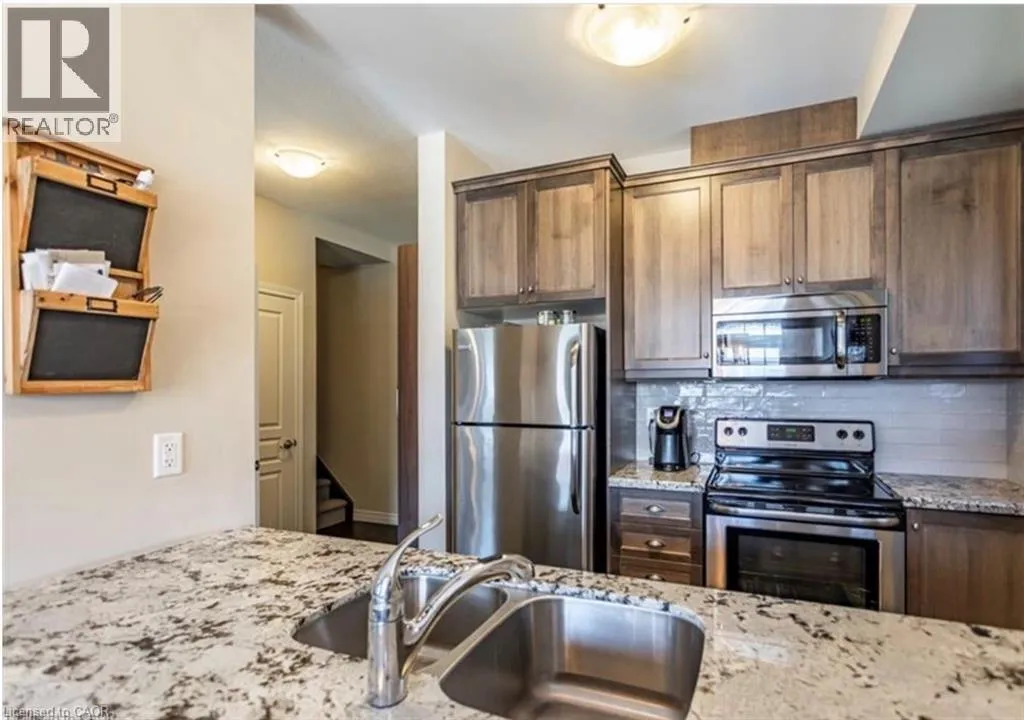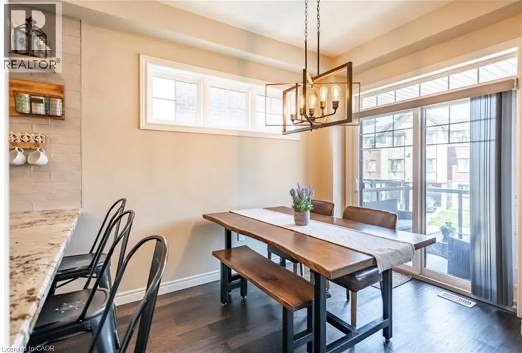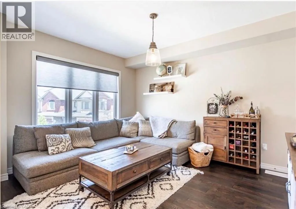 Stunning Losani-built freehold townhome located in a highly desirable Ancaster neighbourhood. This bright end-unit stacked town offers 1,405 sq. ft. of premium living space, featuring 9-foot ceilings and an open-concept main floor designed for both comfort and functionality. Large windows throughout allow natural light to flood the home, creating a warm and inviting atmosphere. The modern Barzotti kitchen is appointed