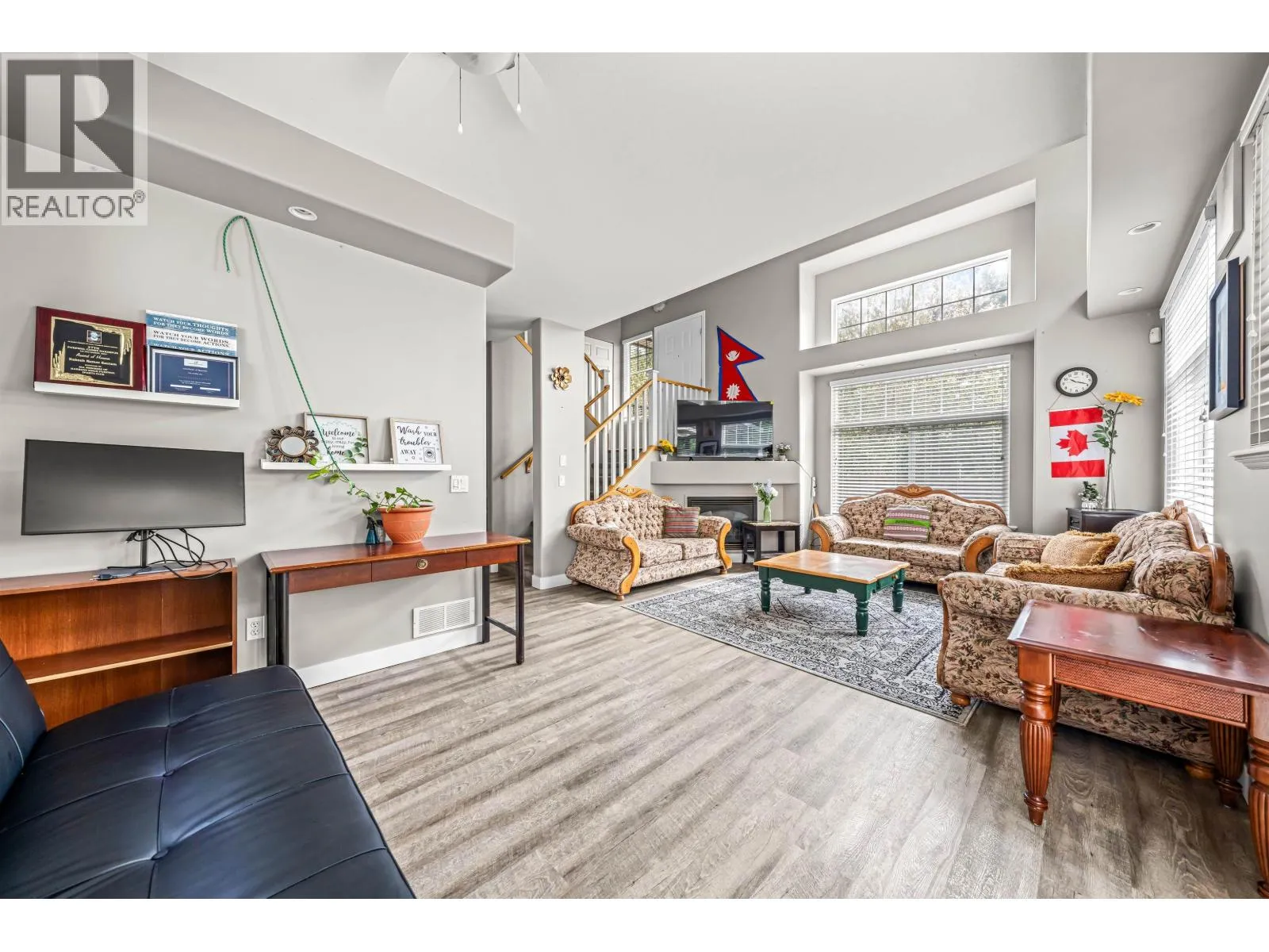 Rare 2,400 square ft fully detached home in desirable Cottonwood! Registered as a townhouse but lives like a detached home, sharing a private road with only 7 homes. Offers 5 bedrooms (den used as 5th). Main floor features updated kitchen with white cabinets, quartz counters & stainless steel appliances. Bright living room with 15´ ceilings, gas fireplace & access to