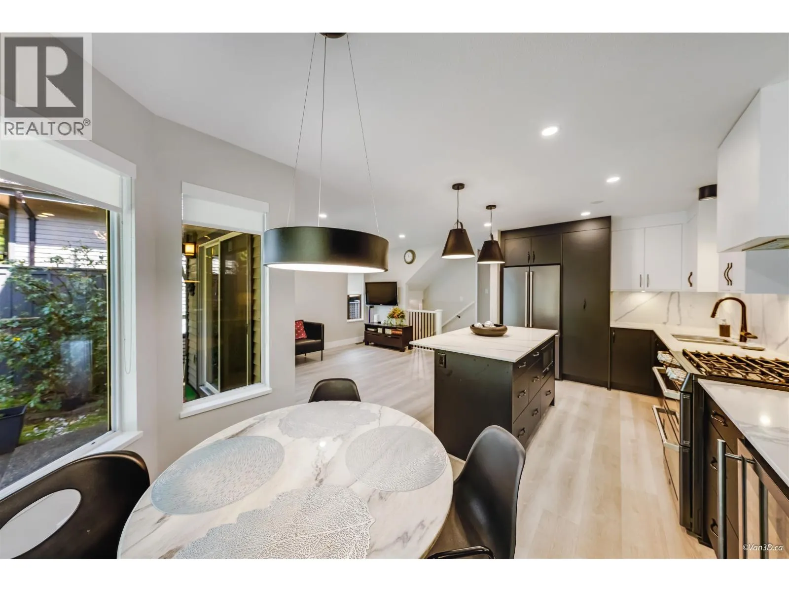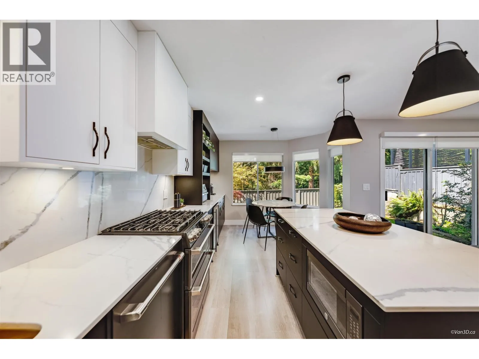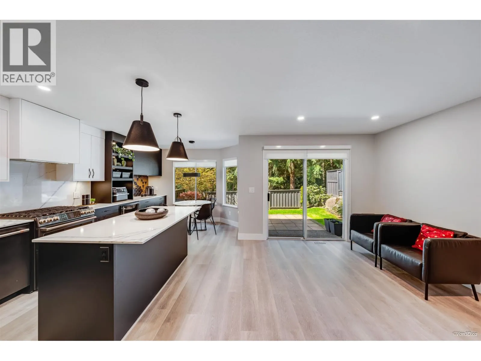 Executive duplex-style townhouse in sought after FOXRUN, beautifully renovated with over $110,000 in quality designer upgrades. This private home backs onto a serene greenbelt and surrounded by nature. Featuring 4 spacious bedrooms, the main floor offers a gourmet kitchen with stone counters, slab backsplash and GE cafe appliances, opening to a cozy family area and peaceful patio. Bright living and