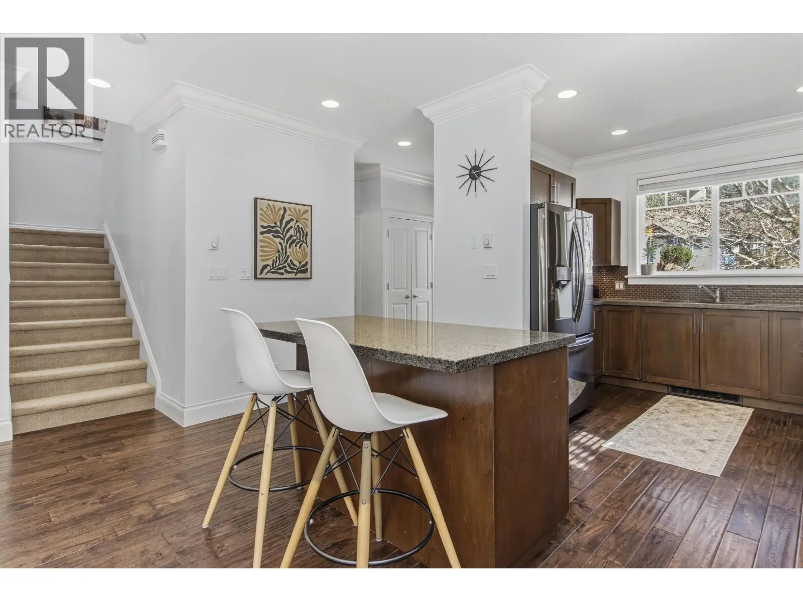 Craftsmanship & thoughtful design together create this perfect family home. Set on a sunny 10,000+ square ft lot backing onto a forest offers privacy & tranquility. Designed for both everyday living & entertaining, the outdoor space is exceptional. A fenced yard, large deck & covered BBQ area for year round use, a hot tub and fire pit area. The home