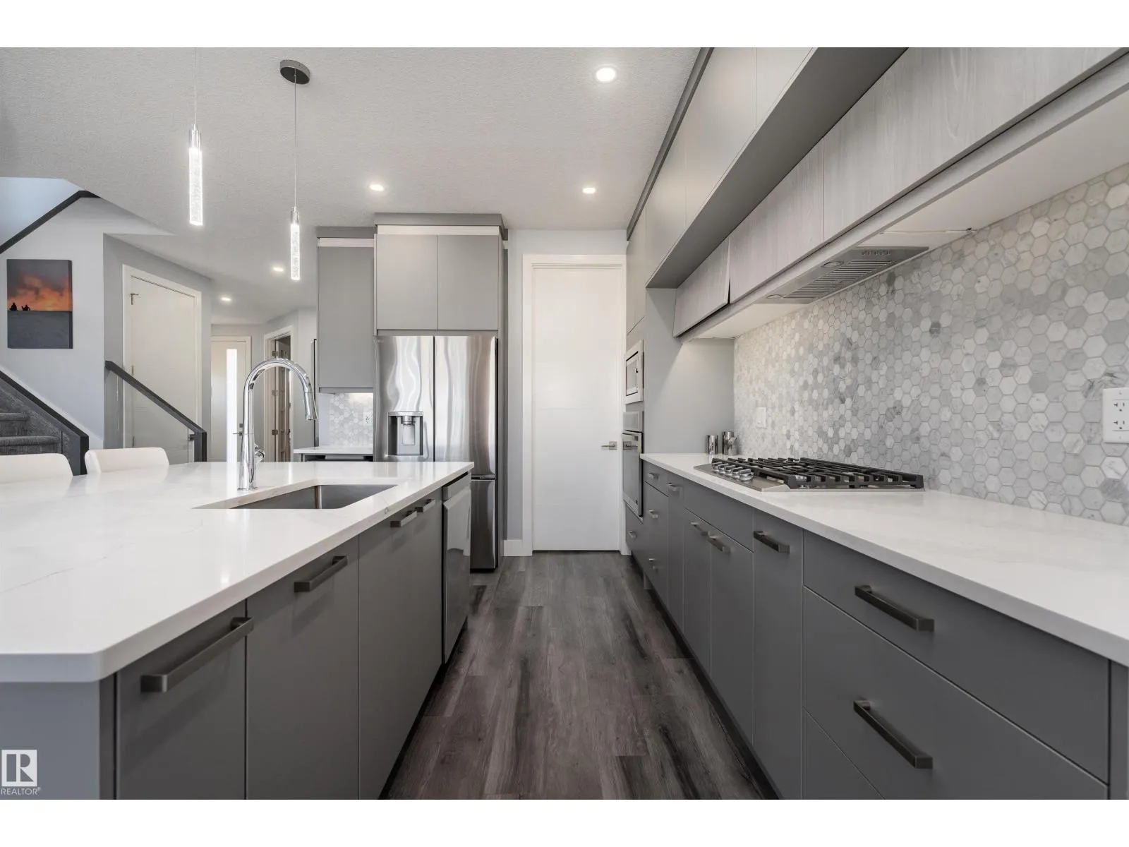 Exceptional customized home located in the up-and-coming community of Fenwyck, backing onto a walking trail. Move-in ready with a fully fenced and landscaped backyard. The main floor features a versatile bedroom currently used as an office, along with 9 ft ceilings and open-to-above design filled with natural light from large windows. The chef-inspired kitchen boasts a gas cooktop, built-in oven,