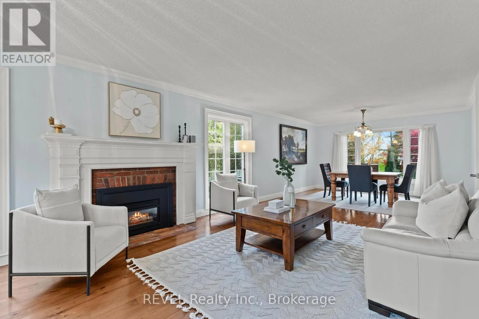 Gracefully situated in the prestigious community of Garrison Village, 36 Confederation Drive offers a rare opportunity to own a refined residence where timeless charm meets modern sophistication. This 4-bedroom, 3-bathroom home features beautifully proportioned, light-filled living spaces with an inviting sense of warmth throughout.The main level showcases wide plank flooring, a stately living room with gas fireplace, formal dining area,