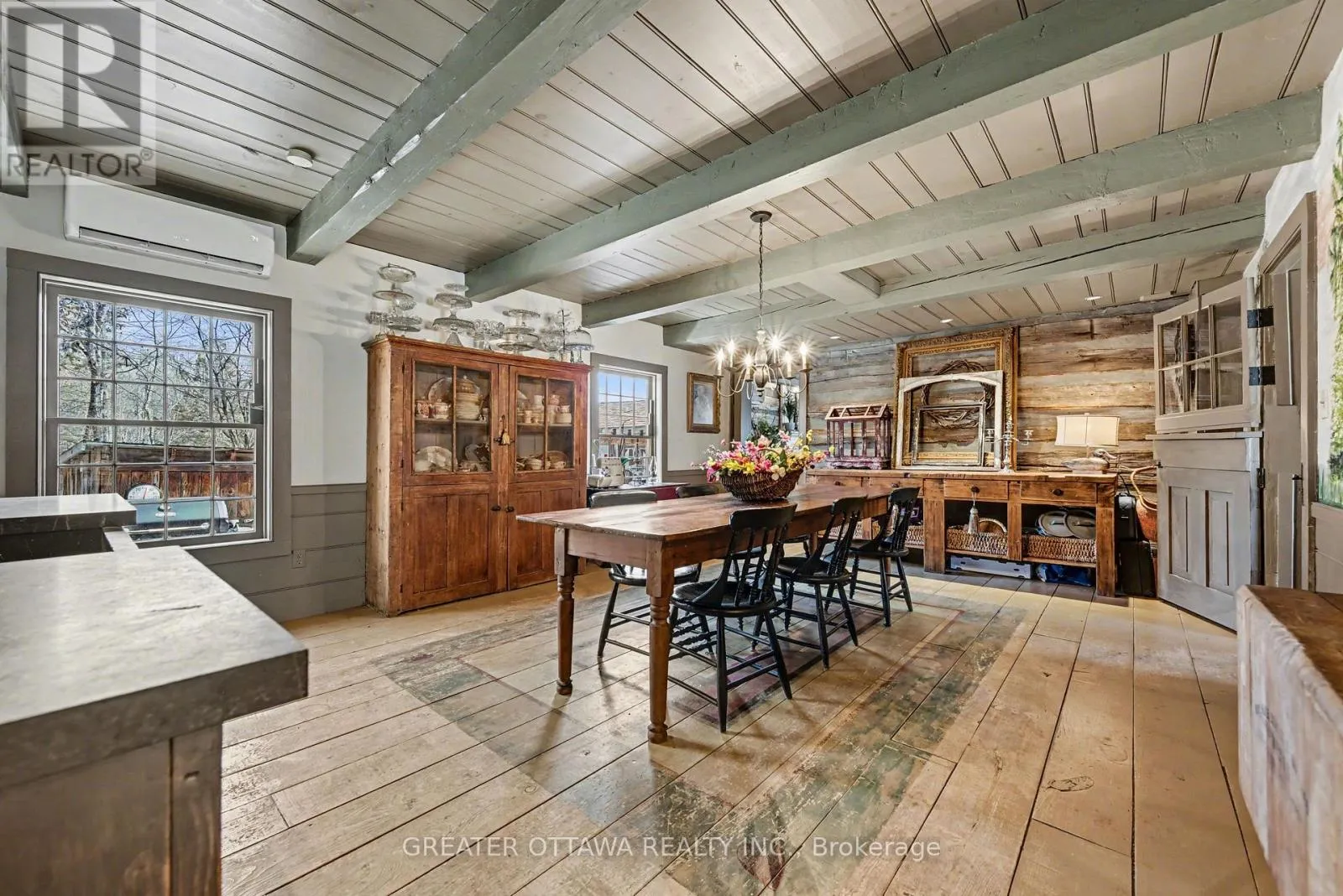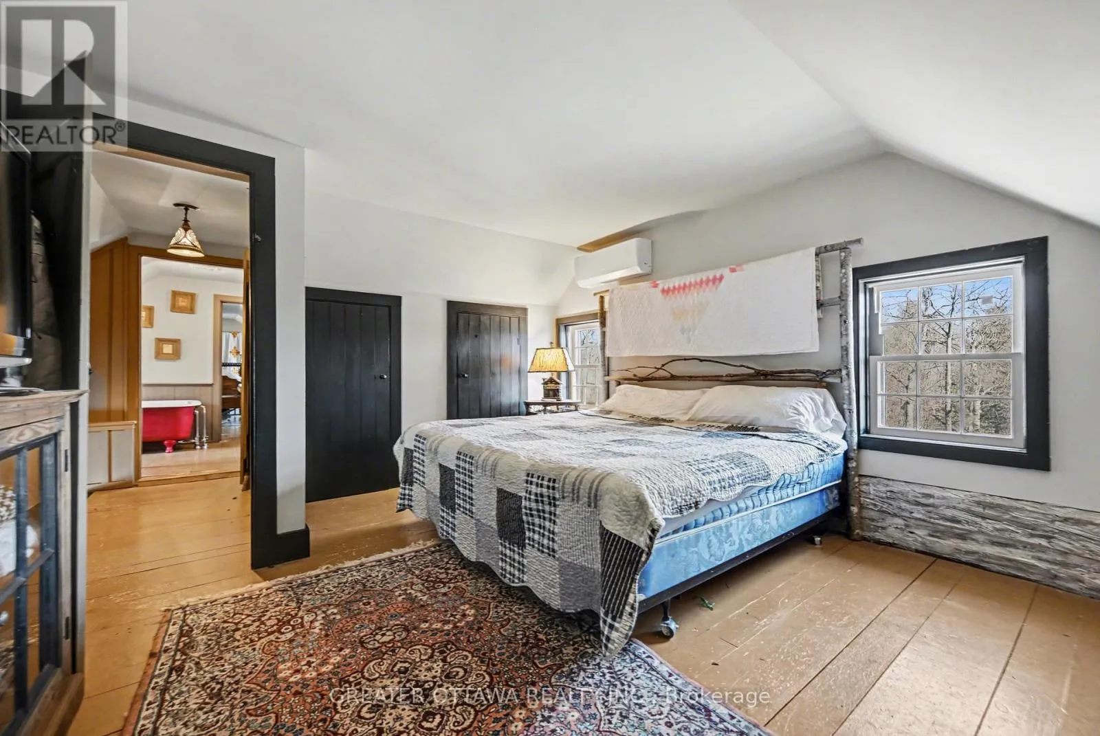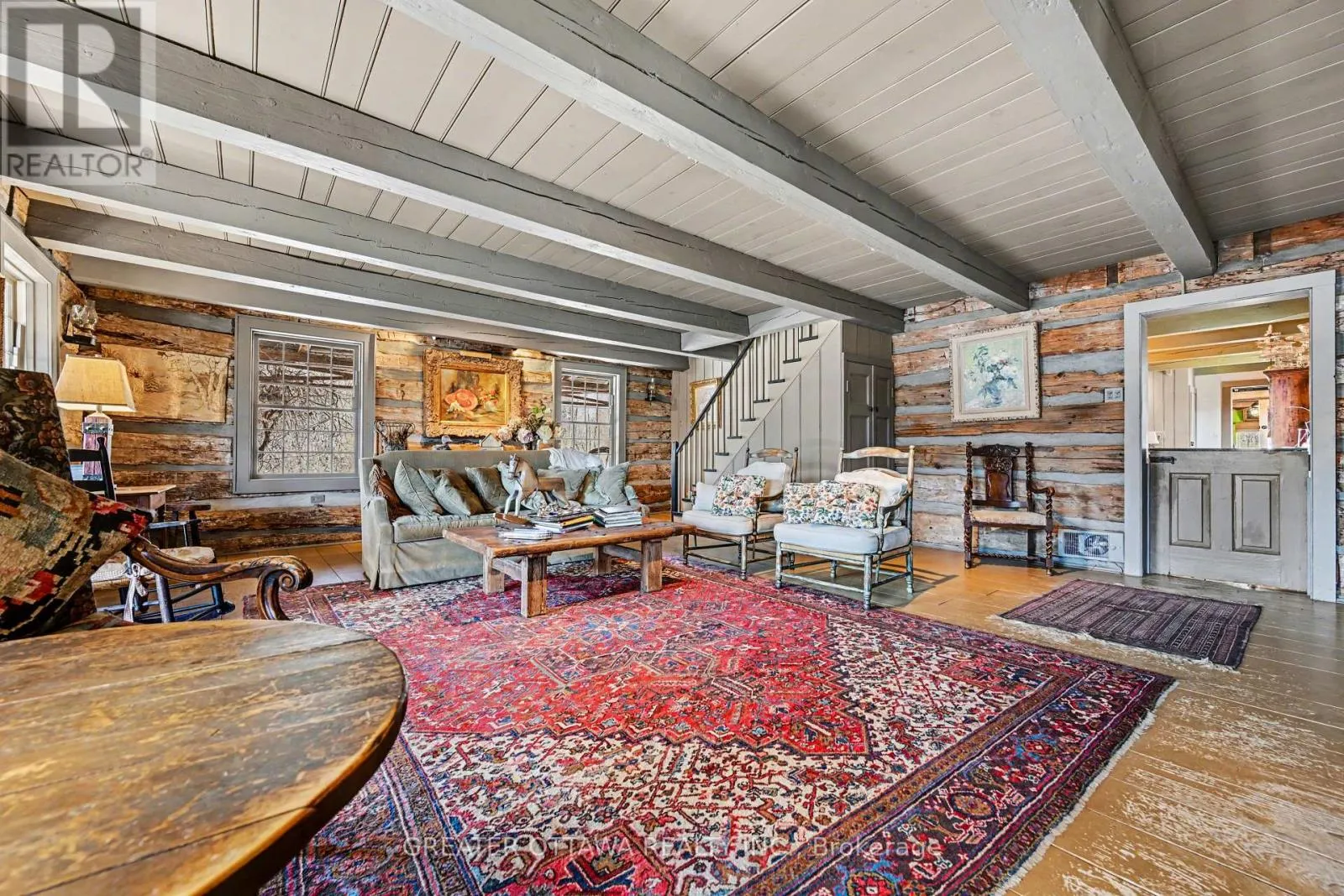 This carefully restored cedar log home sits on nearly 5.5 acres of property with 324 feet of waterfront on the Mississippi River. This is a unique property with elevated views of the river and a rich variety of trees. The home is set back from the road offering exceptional privacy. The home features a large separate sleeping Bunkie/work space
