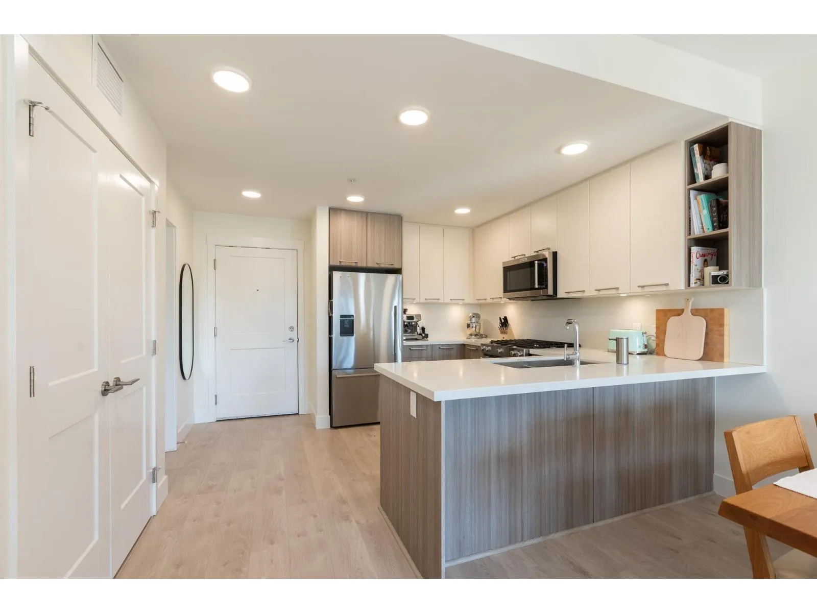 Welcome to Beachborough! This BRIGHT and well-appointed one bedroom condo & den, with private SOUTH FACING balcony and PEEK-A-BOO OCEAN VIEWS. Updated flooring flows throughout the home, creating a fresh and modern feel. The spacious kitchen features ample cabinetry and storage, perfect for everyday living and entertaining. Den can be used as additional storage as well! Ideally located just minutes