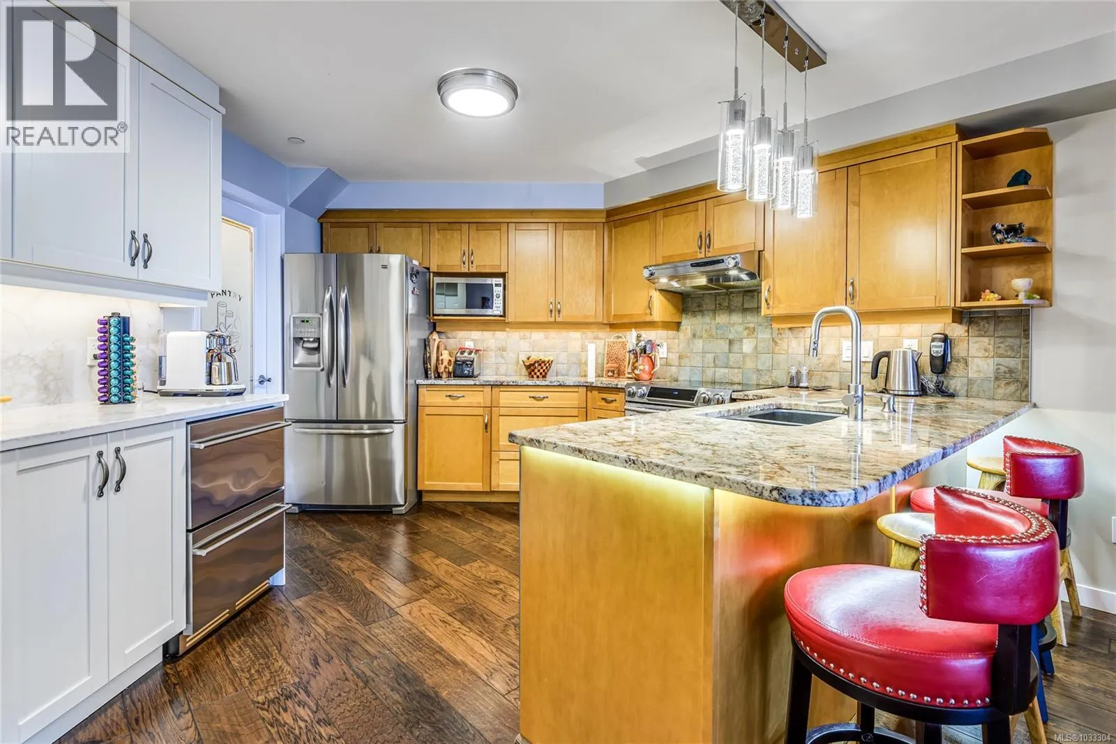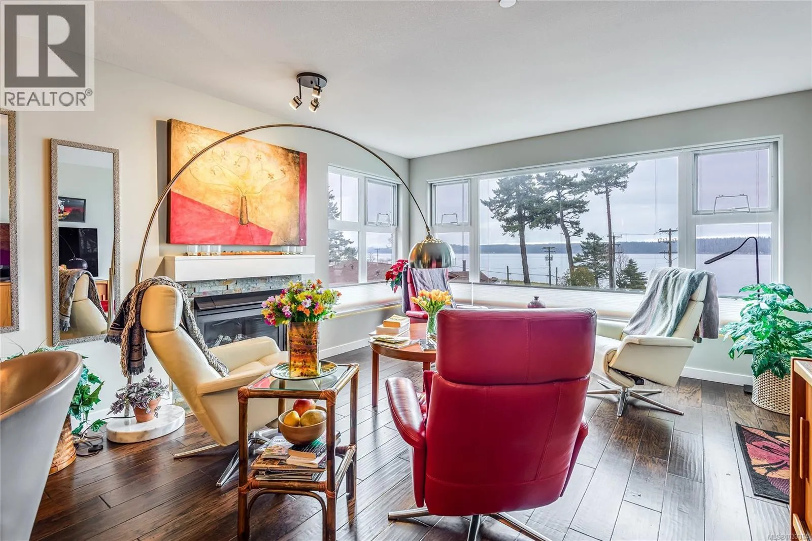 Enjoy beautiful ocean & mountain views highlighting Discovery Passage & the Coastal Mountain Range from this executive Silversea condo. This tastefully updated 2 bed, 2 bath + den unit features high-end finishing throughout. Warm and inviting living space with an abundance of natural light, cozy gas fireplace, and hardwood floors throughout. Other features include granite counter tops, stainless