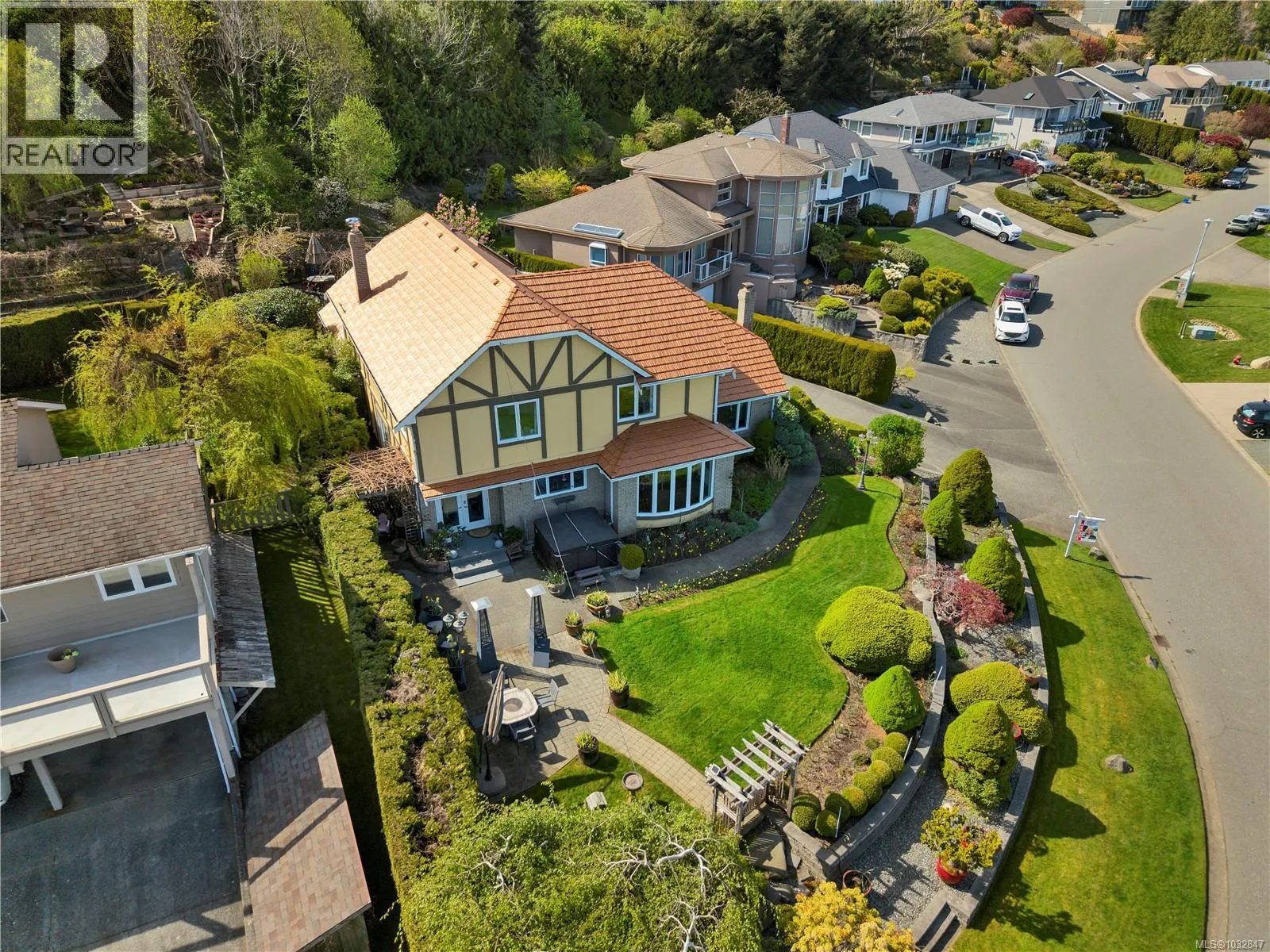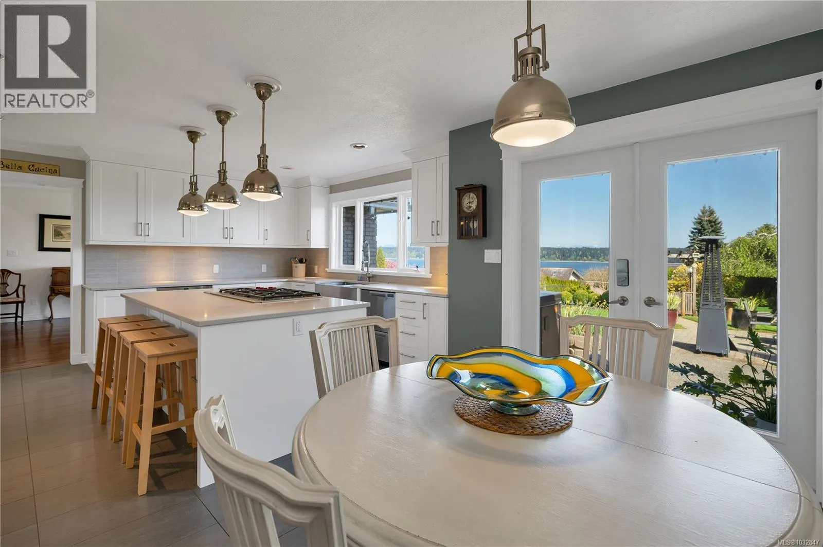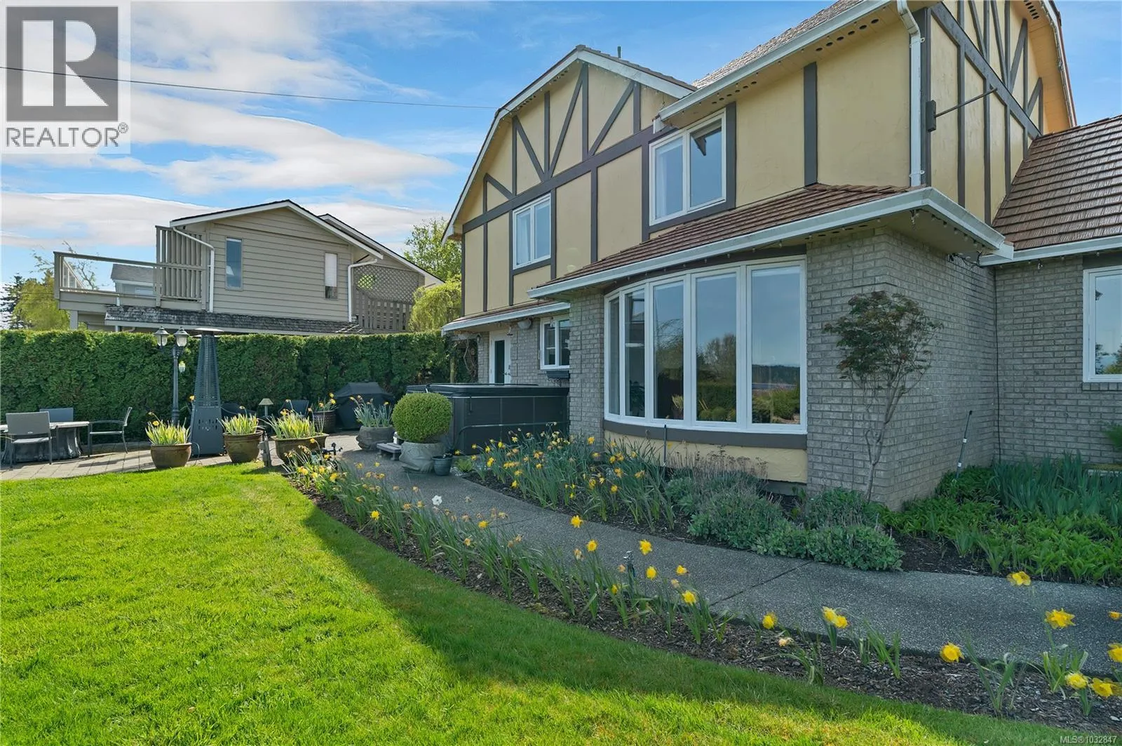 This charming Tudor-style home captures stunning ocean views and has been extensively updated throughout—offering the perfect blend of classic character and modern comfort. The thoughtfully remodeled kitchen (2019) features high-end Wolf appliances, quality finishes, and beautiful tile flooring, seamlessly complemented by warm oak floors that flow through the home. Comfort is ensured year-round with a mini-split heat pump upstairs and
