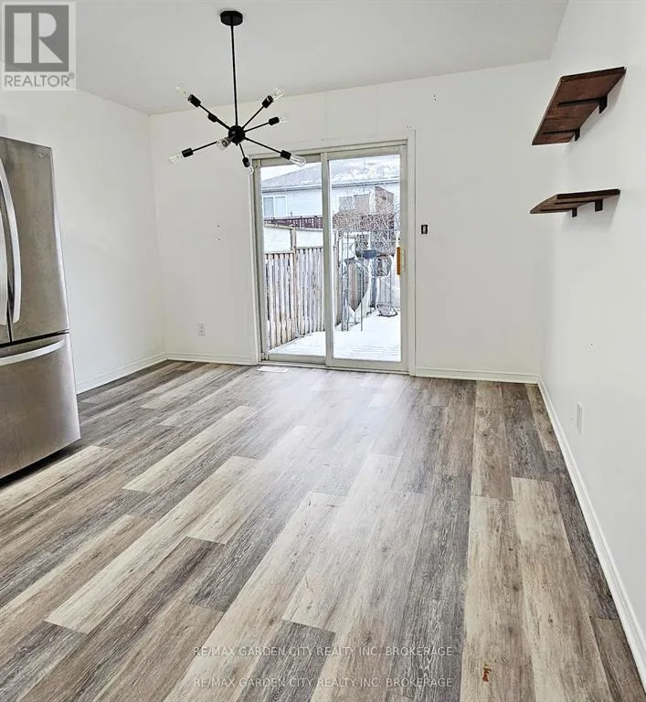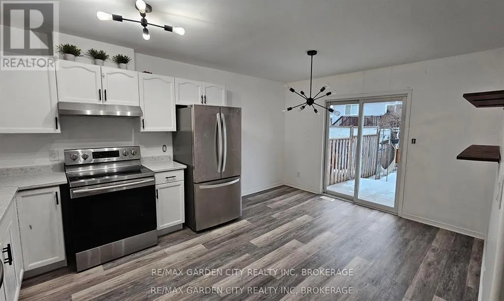 3-bedroom semi-detached home with an attached garage located in a quiet residential Welland neighborhood. The Main floor offers a living room, eat in kitchen and white kitchen cupboards with sliding doors to the deck and fenced yard. The Main floor includes 3 bedrooms and a 4-piece bathroom, and the lower level is finished with a rec room, 2 additional rooms
