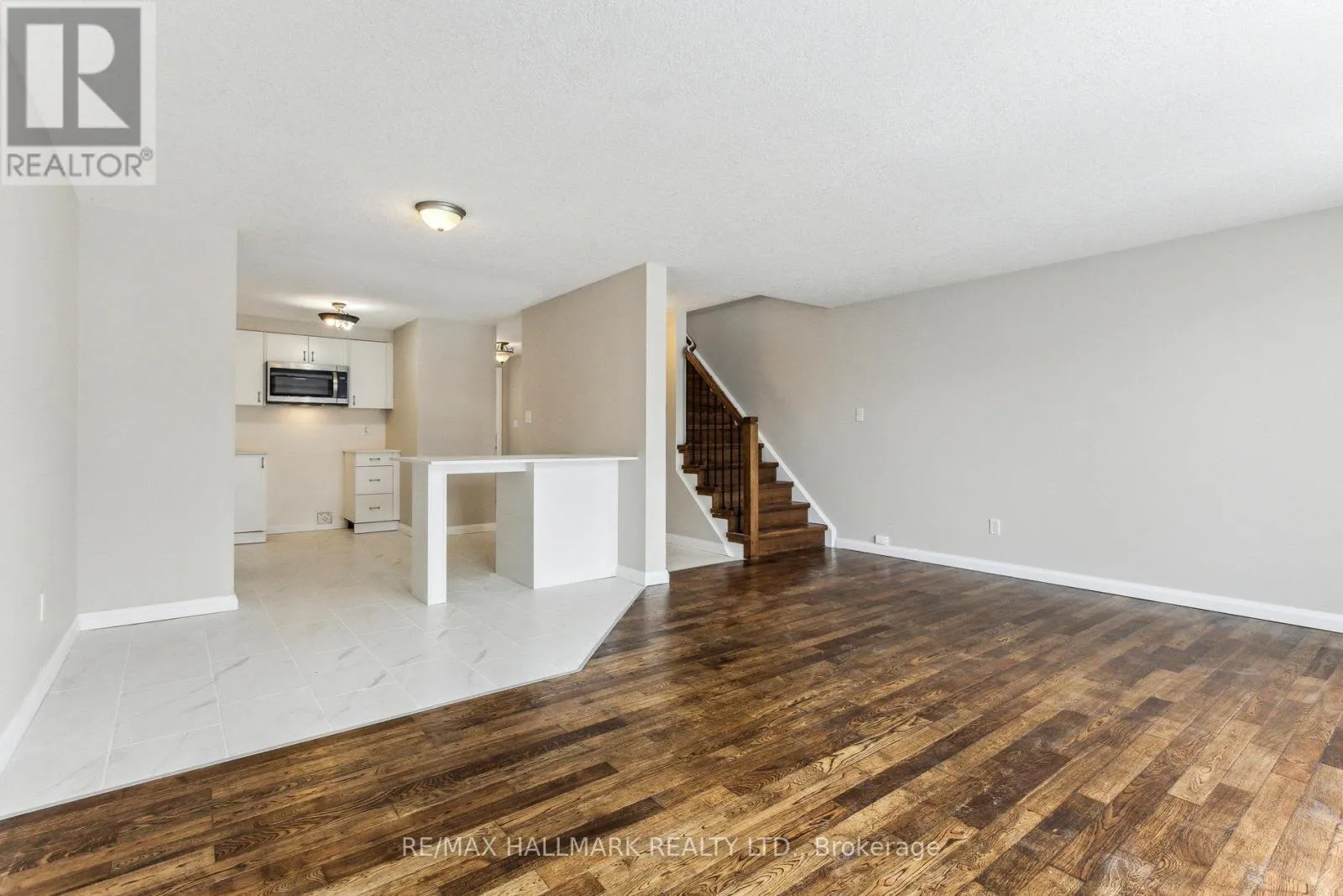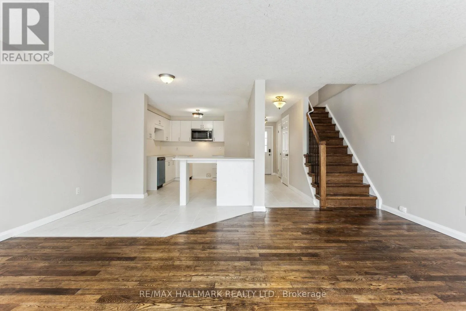 This spacious and charming 3-bedroom end-unit townhouse in the desirable Williamsburg community offers an open-concept layout, a large eat-in kitchen, and a hardwood-floored great room with wall-to-wall windows and access to a 14′ x 14′ raised deck. The upper level offers a generous primary bedroom boasting a large walk-in closet, two additional well-sized bedrooms, and a 4-piece bath. The finished