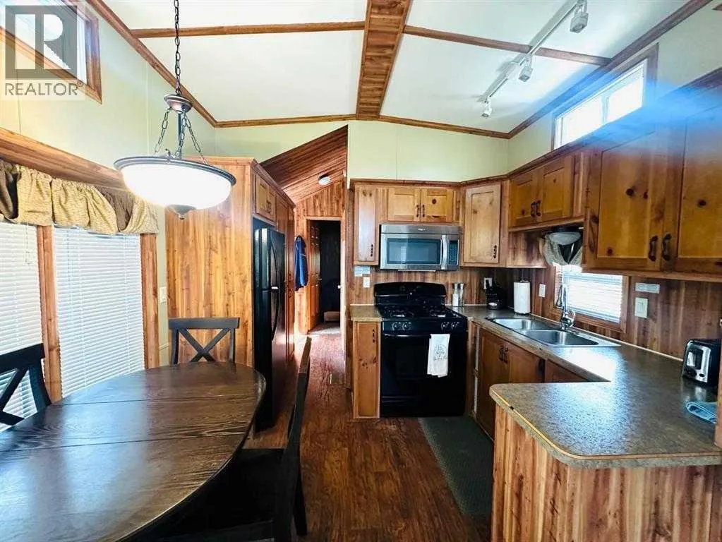 : No neighbours behind you….just open space and privacy. This beautiful property at Lauman’s Landing supplies a one bedroom park model with covered deck. Ample storage and nice finishes, featuring a full kitchen, living room, dining area and bathroom with a tub. More space for guests in the over-size garage with a large bedroom and laundry / tile shower
