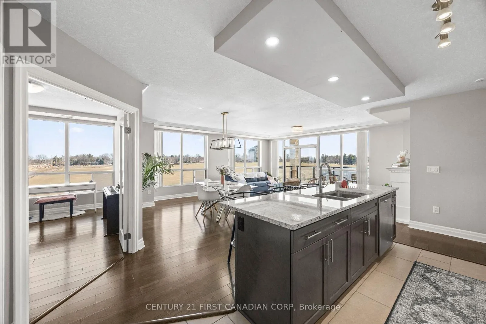 Welcome to this luxurious, sun-filled corner suite in one of North London’s most sought-after communities. Showcasing rich hardwood flooring, floor-to-ceiling windows, and a refined open-concept design, this elegant residence offers an exceptional blend of comfort and sophistication. The gourmet kitchen is designed for both everyday living and entertaining, featuring a spacious breakfast bar, generous pantry storage, and seamless flow into