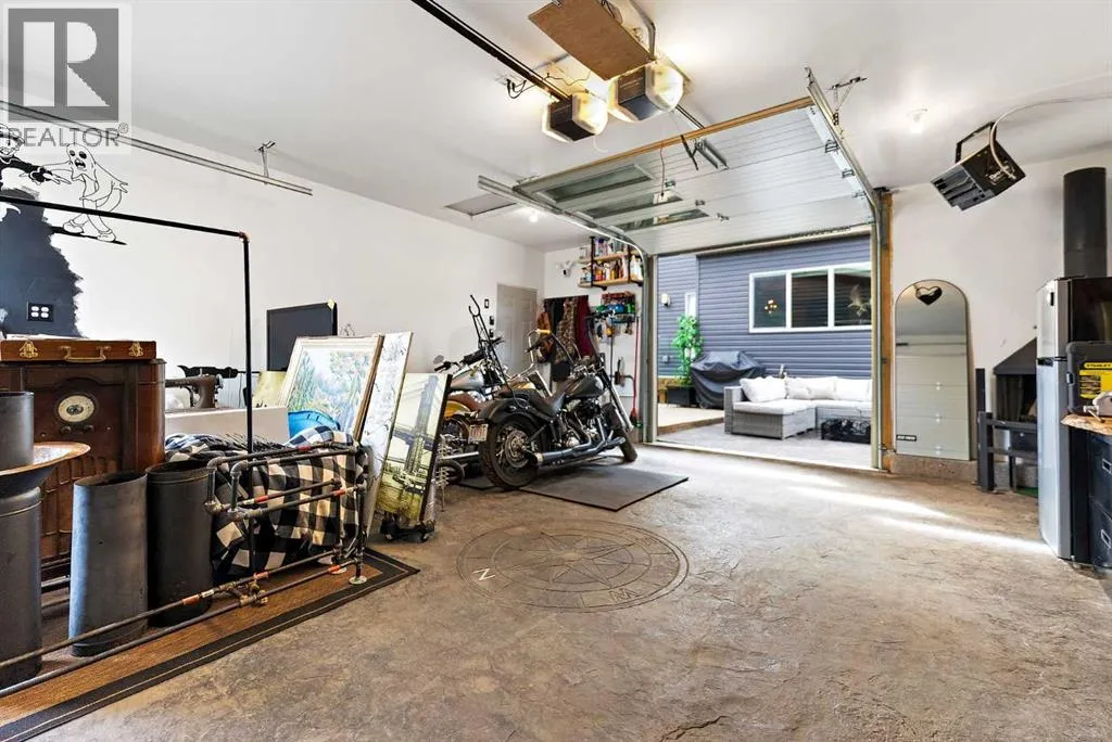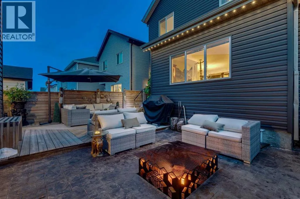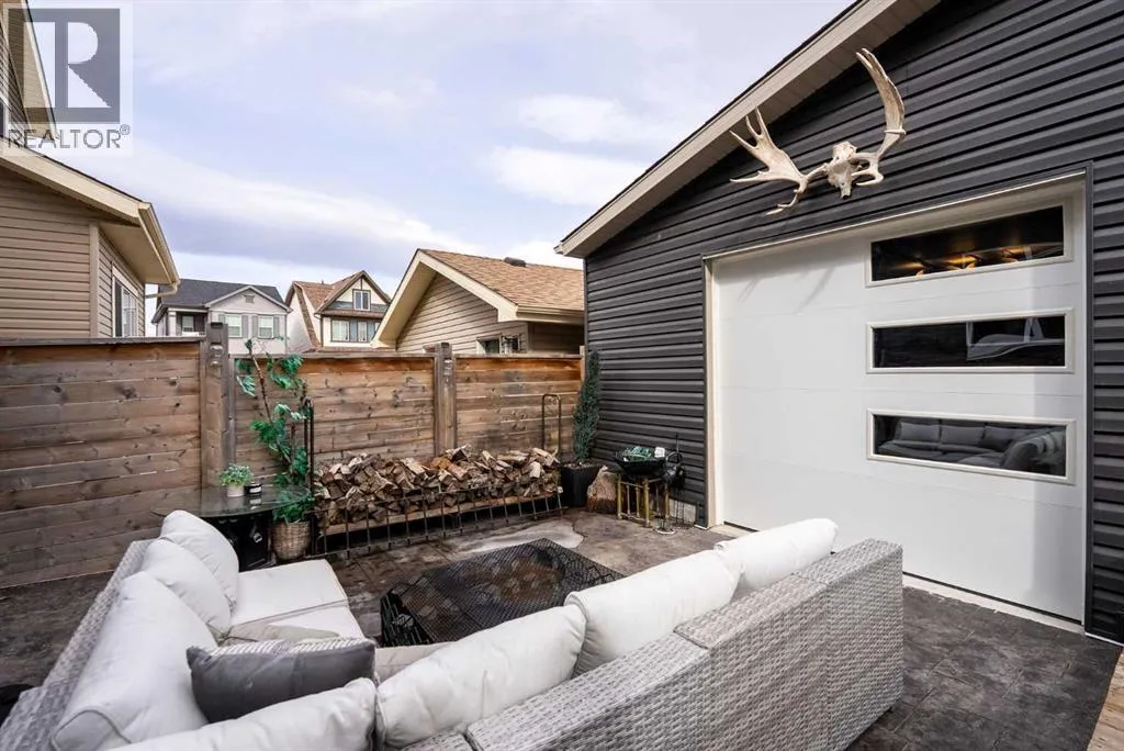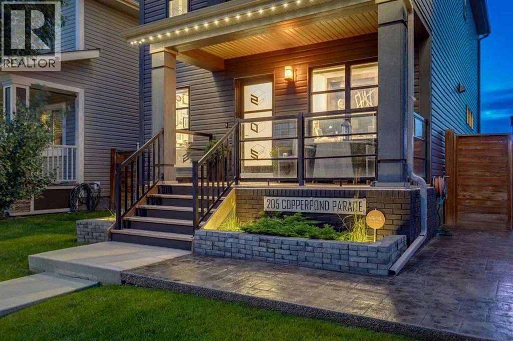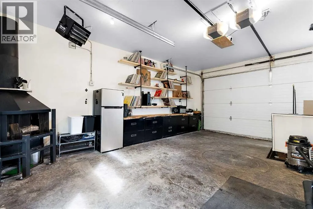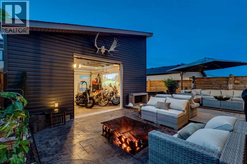 architectural shingle roof with turbo vents for attic rain protection, durable vinyl and Hardie board siding, new double-pane energy-efficient windows, upgraded electrical panel, enhanced HVAC system, whole-home water filtration, smart thermostat, and full home automation, this residence was thoughtfully designed for comfort, convenience, and long-term value.Inside, architectural details continue to impress with a striking feature fireplace wall, full-height tempered glass architectural divider, built-in media shelving, and whole-home smart lighting and dimmers. The upgraded kitchen showcases quartz countertops, modern cabinet refacing, pull-out storage organizers, stylish backsplash, and a smart fridge with hidden pantry entry, blending sleek aesthetics with everyday functionality.Upstairs, the spa-inspired ensuite delivers standout luxury with a custom walk-in steam shower, rainfall showerhead, frameless glass enclosure, oversized tilework, soaker tub, double vanity with LED mirror, and motion-sensor lighting. Thoughtful storage solutions continue throughout with closet organizers, built-in shelving, a mudroom with custom storage, and an organized laundry space featuring Samsung washer and dryer.Outdoor living is where this home truly shines. Enjoy a custom deck with frameless glass railings, private hot tub retreat with glass privacy screen, and a sunken firepit with built-in seating, all surrounded by professional landscaping, horizontal privacy fencing, solar and wired exterior lighting, and permanent Celebrite holiday lighting. The bespoke exterior detailing, stamped concrete pad with compass inlay, and upgraded alley access further reinforce the unique design character of this property.The fully finished and painted garage expands the versatility of this home, offering the ideal environment for a workshop, hobby space, or gear enthusiast, while also featuring golf simulator capability, projector setup, custom storage solutions, and a rare wood-burning garage fireplace—creating a truly one-of-a-kind space you simply don’t see every day.Offering 3 spacious bedrooms, 2.5 bathrooms, 1,672 sq ft above grade, and 870 sq ft of basement space with egress windows, this home delivers 2,536 sq ft of total potential living space in a highly sought-after Copperfield location.A truly unique opportunity where luxury, craftsmanship, technology, and lifestyle come together. (id:64429)