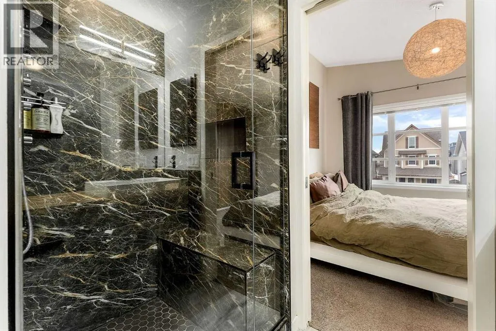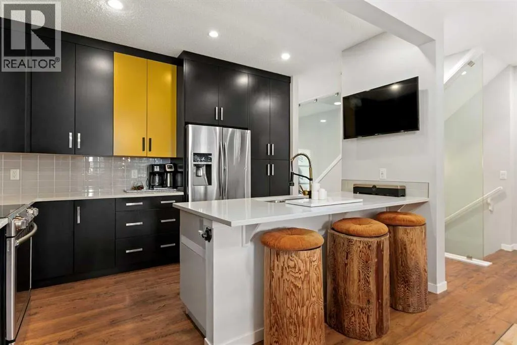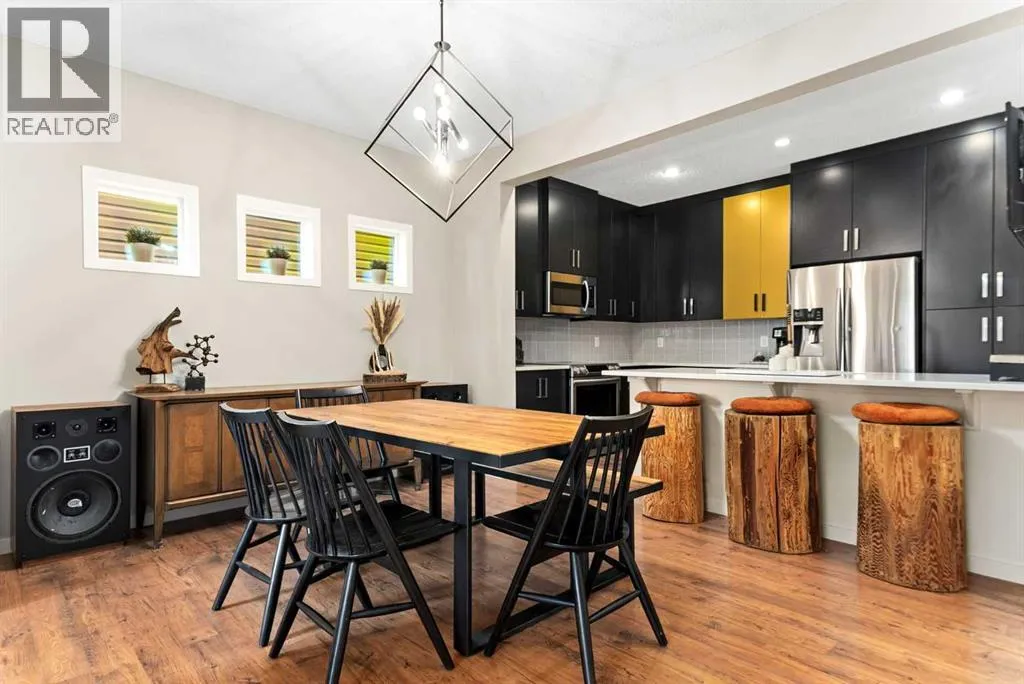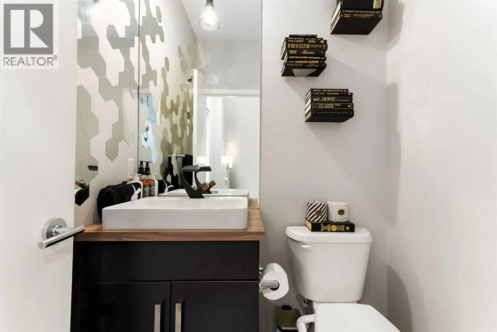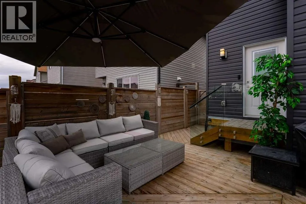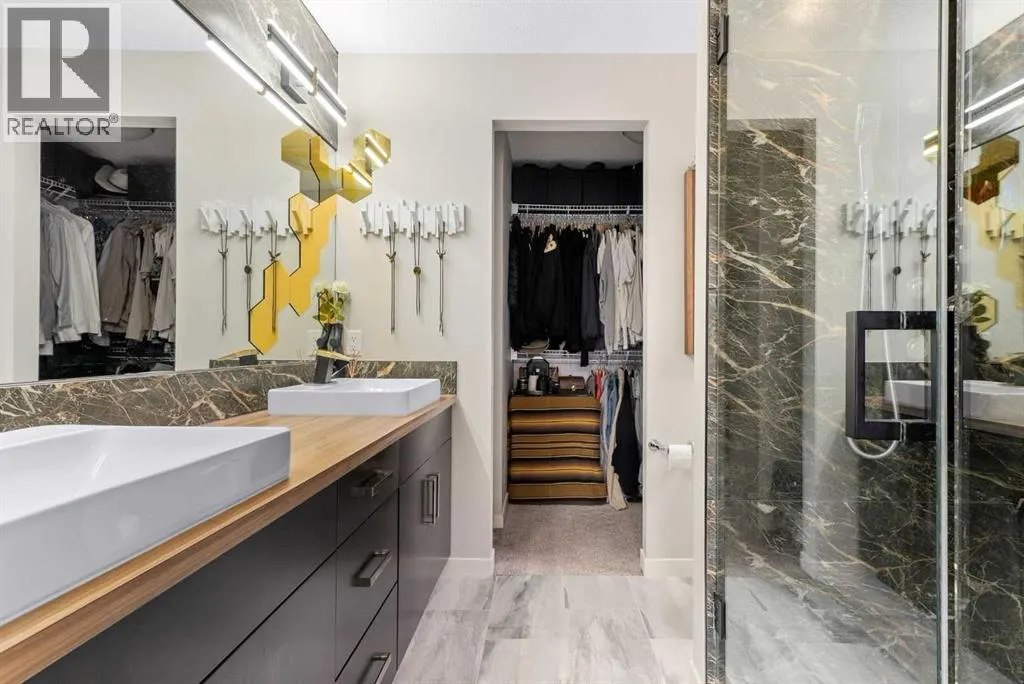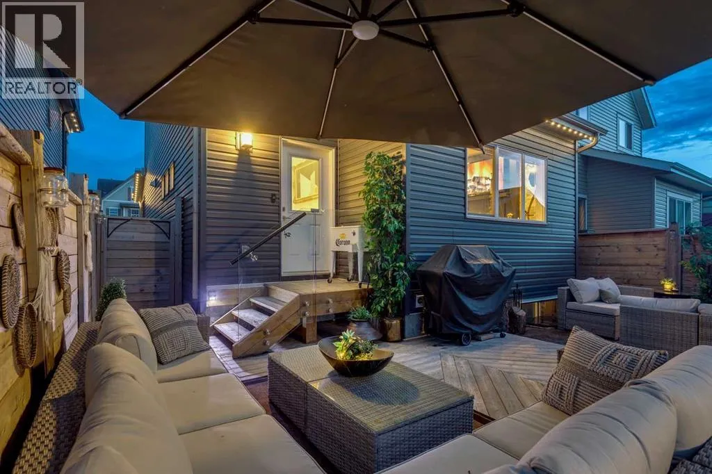 architectural shingle roof with turbo vents for attic rain protection, durable vinyl and Hardie board siding, new double-pane energy-efficient windows, upgraded electrical panel, enhanced HVAC system, whole-home water filtration, smart thermostat, and full home automation, this residence was thoughtfully designed for comfort, convenience, and long-term value.Inside, architectural details continue to impress with a striking feature fireplace wall, full-height tempered glass architectural divider, built-in media shelving, and whole-home smart lighting and dimmers. The upgraded kitchen showcases quartz countertops, modern cabinet refacing, pull-out storage organizers, stylish backsplash, and a smart fridge with hidden pantry entry, blending sleek aesthetics with everyday functionality.Upstairs, the spa-inspired ensuite delivers standout luxury with a custom walk-in steam shower, rainfall showerhead, frameless glass enclosure, oversized tilework, soaker tub, double vanity with LED mirror, and motion-sensor lighting. Thoughtful storage solutions continue throughout with closet organizers, built-in shelving, a mudroom with custom storage, and an organized laundry space featuring Samsung washer and dryer.Outdoor living is where this home truly shines. Enjoy a custom deck with frameless glass railings, private hot tub retreat with glass privacy screen, and a sunken firepit with built-in seating, all surrounded by professional landscaping, horizontal privacy fencing, solar and wired exterior lighting, and permanent Celebrite holiday lighting. The bespoke exterior detailing, stamped concrete pad with compass inlay, and upgraded alley access further reinforce the unique design character of this property.The fully finished and painted garage expands the versatility of this home, offering the ideal environment for a workshop, hobby space, or gear enthusiast, while also featuring golf simulator capability, projector setup, custom storage solutions, and a rare wood-burning garage fireplace—creating a truly one-of-a-kind space you simply don’t see every day.Offering 3 spacious bedrooms, 2.5 bathrooms, 1,672 sq ft above grade, and 870 sq ft of basement space with egress windows, this home delivers 2,536 sq ft of total potential living space in a highly sought-after Copperfield location.A truly unique opportunity where luxury, craftsmanship, technology, and lifestyle come together. (id:64429)