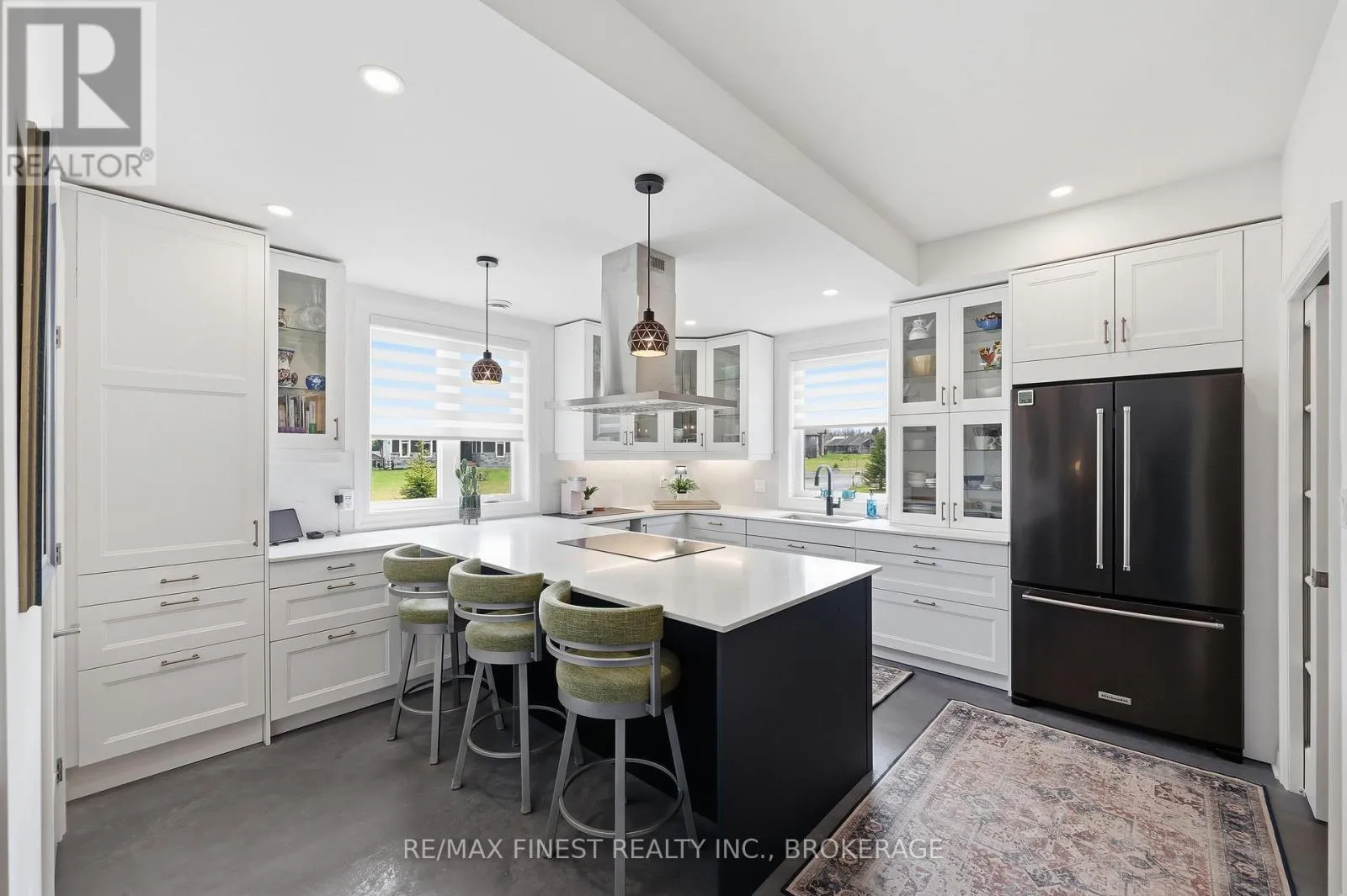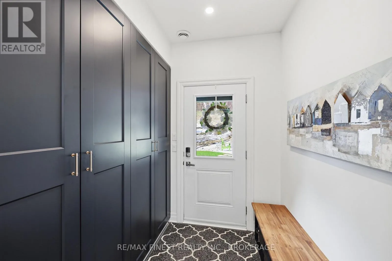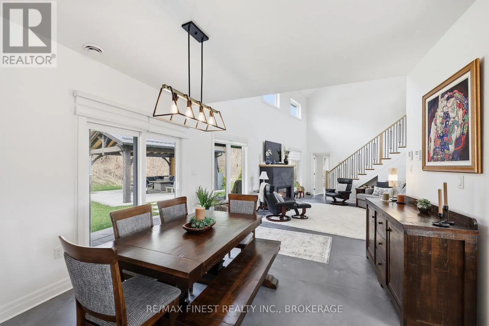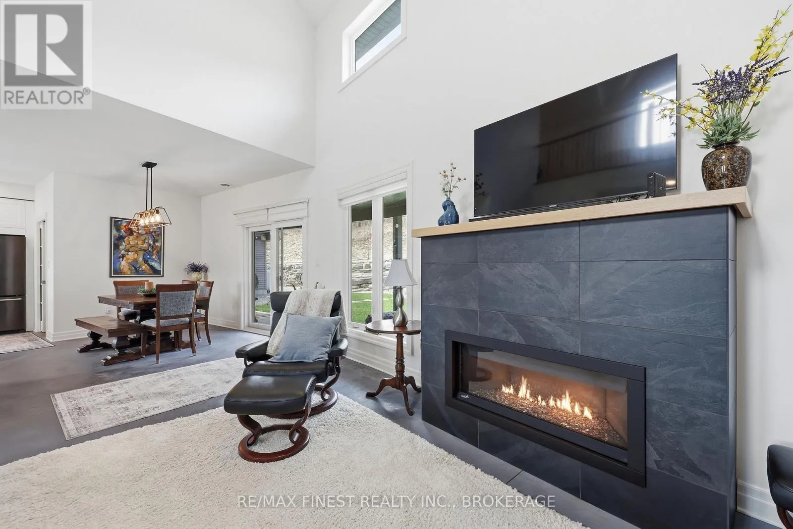 This one is special – located in the sought after waterfront community of Collins Lake, this 4 year old custom build (Bima Construction), slab on grade, two storey home is one of a kind! The main foyer will welcome you with high ceilings, incredible natural light, heated stone floor throughout and a powder room tucked under the stairs.