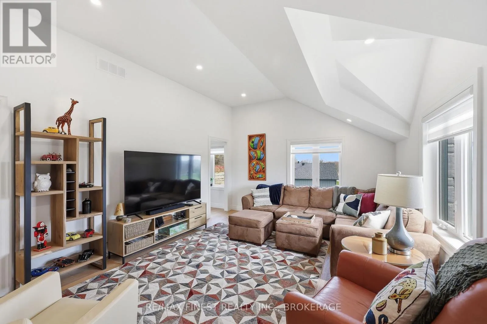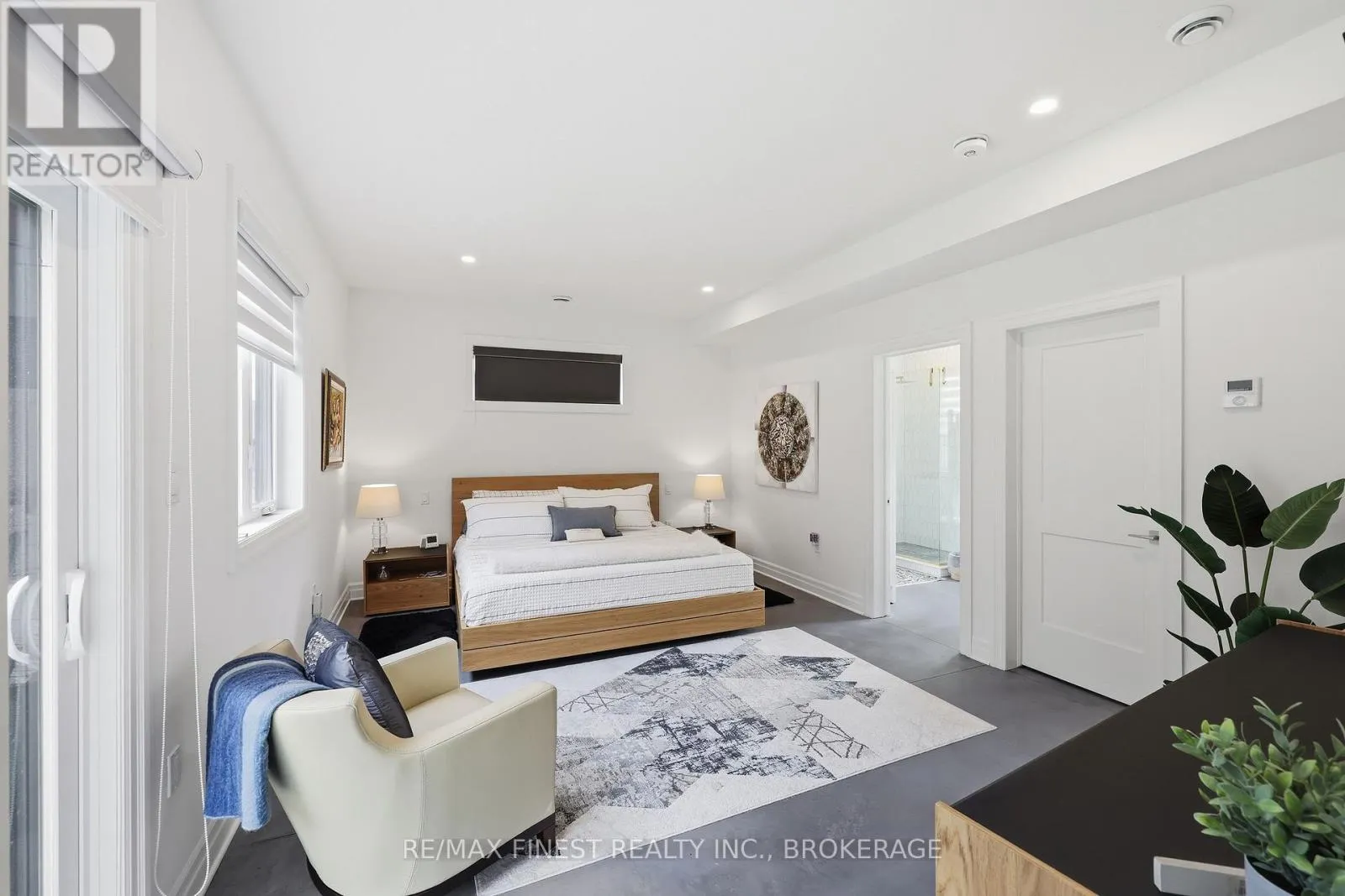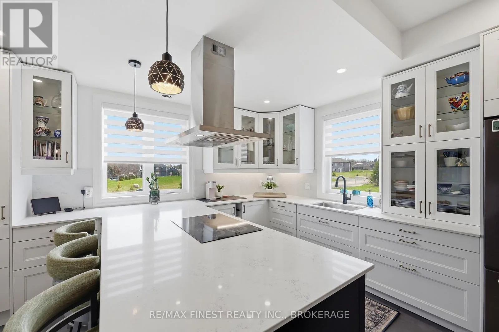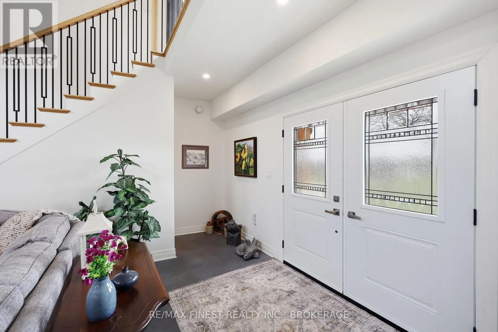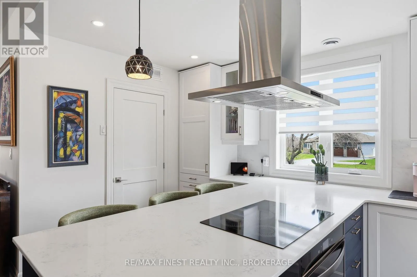 This one is special – located in the sought after waterfront community of Collins Lake, this 4 year old custom build (Bima Construction), slab on grade, two storey home is one of a kind! The main foyer will welcome you with high ceilings, incredible natural light, heated stone floor throughout and a powder room tucked under the stairs.