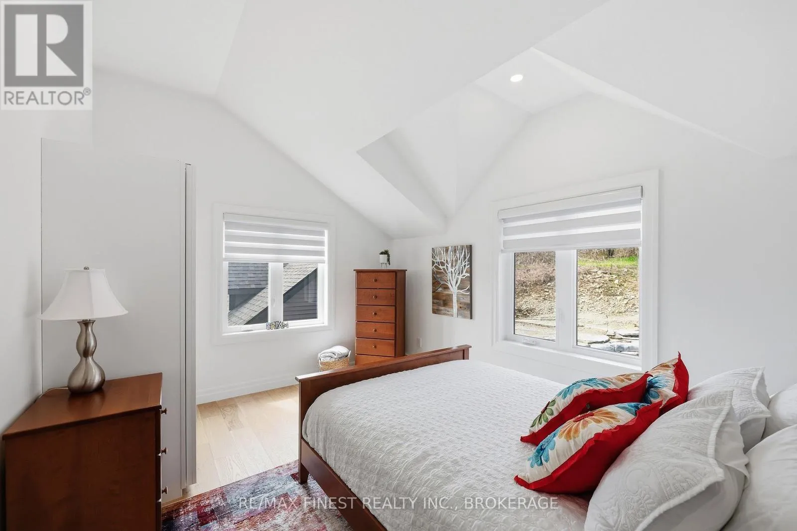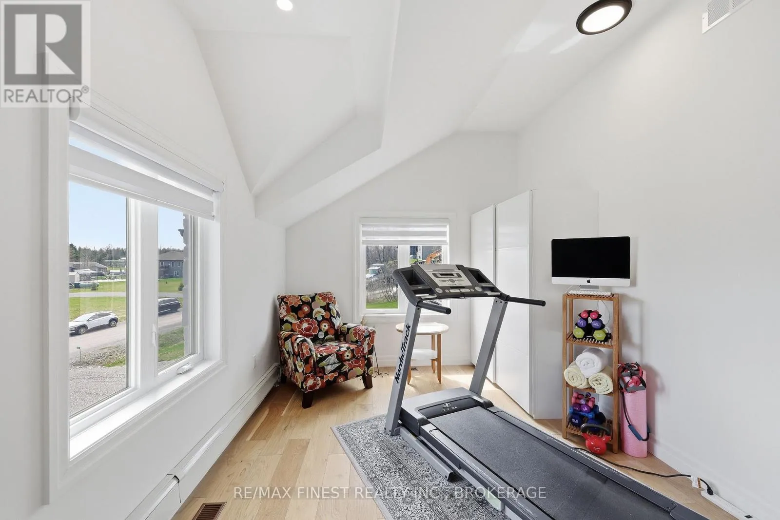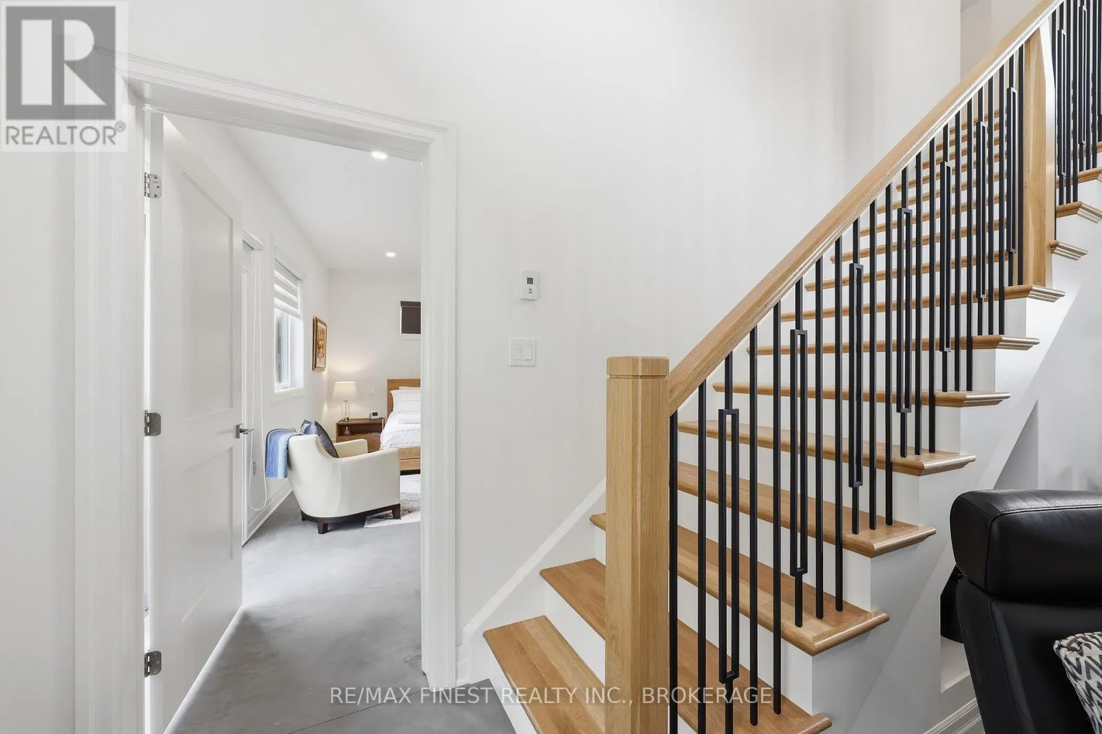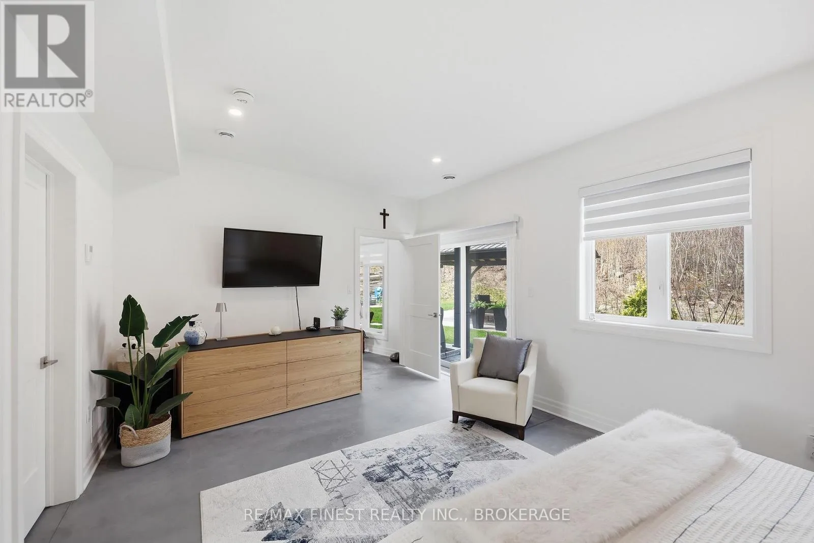 This one is special – located in the sought after waterfront community of Collins Lake, this 4 year old custom build (Bima Construction), slab on grade, two storey home is one of a kind! The main foyer will welcome you with high ceilings, incredible natural light, heated stone floor throughout and a powder room tucked under the stairs.
