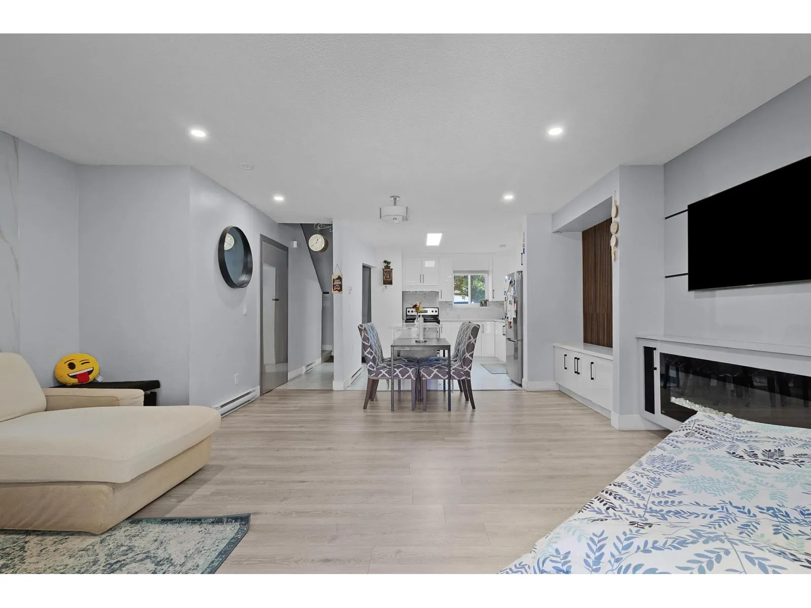 Corner unit townhome with three bedrooms has been recently renovated in a wonderful neighbourhood complex. The entire floors have been replaced with new laminated flooring, the kitchen cabinets are updated, and new fixtures in the bathroom. A newer deck/patio has also been added, ideal for hosting summer BBQs. The kitchen is quite spacious and there are plenty of cupboards for