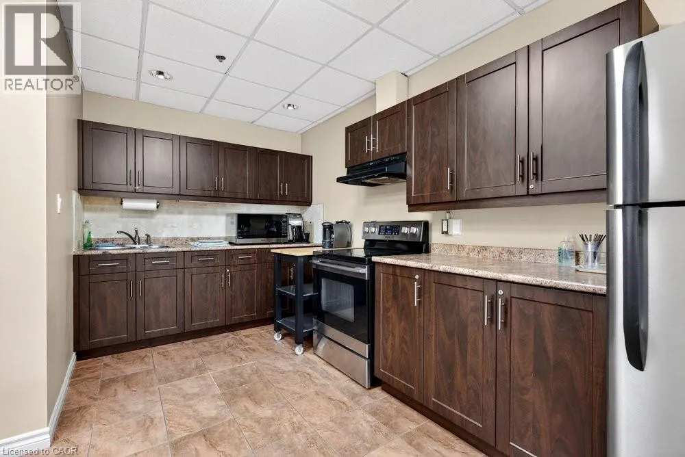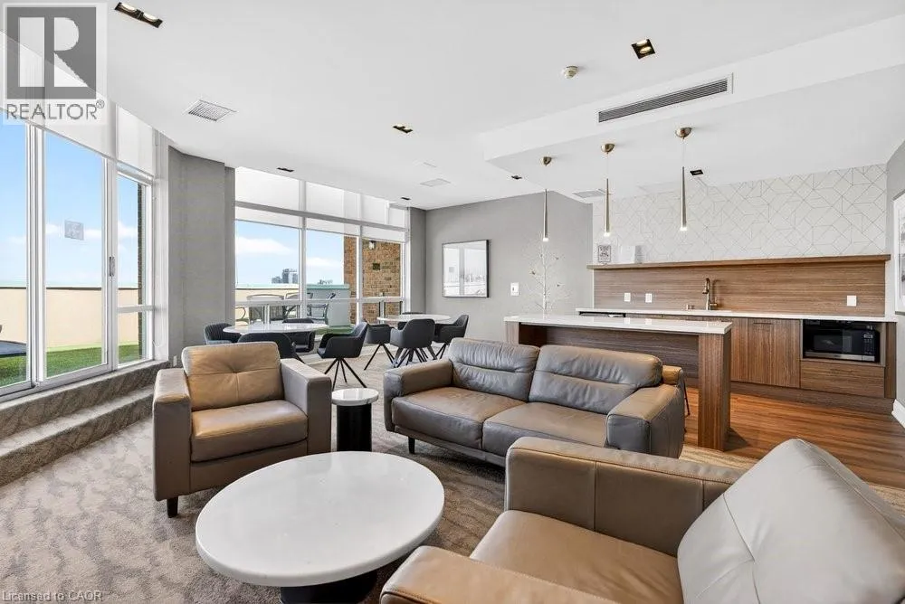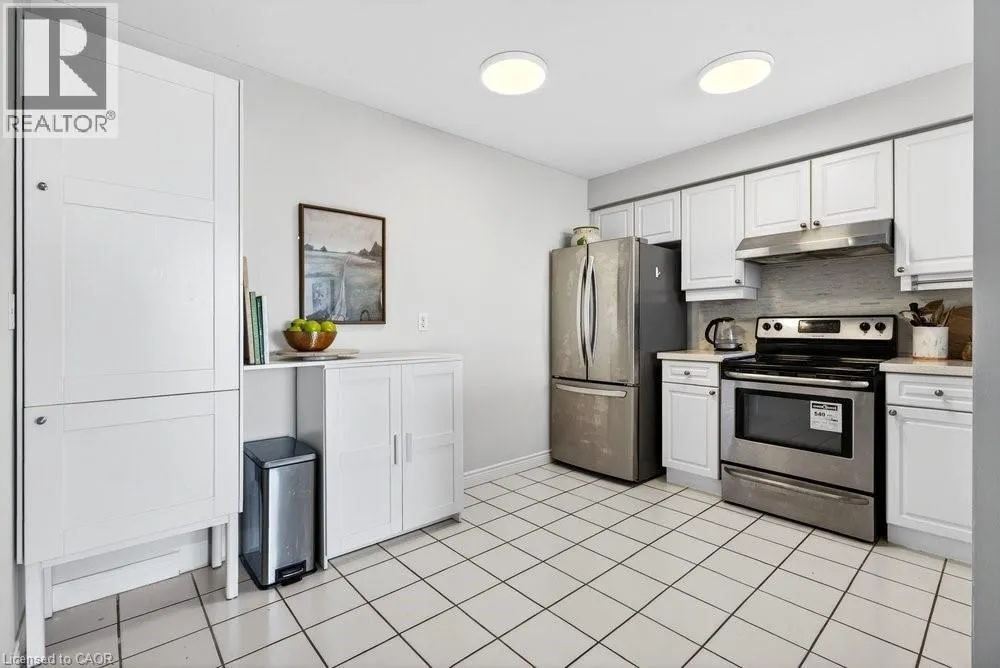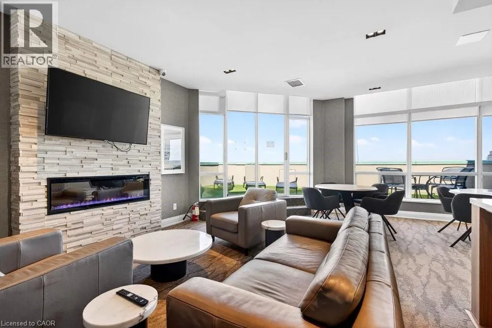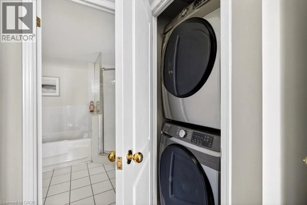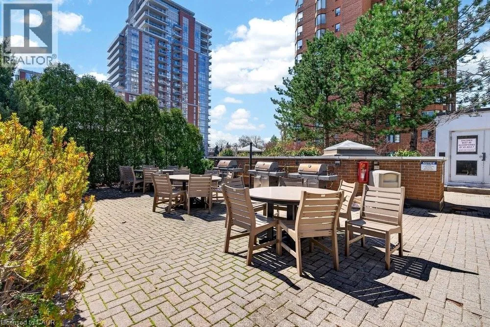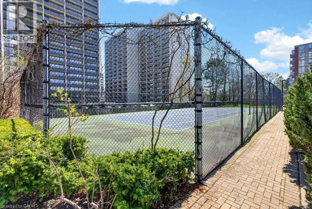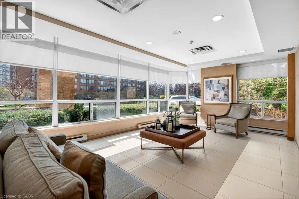 steel appliances, quart counters, & overlooks the dining/ & living areas, perfect for entertaining. Retreat to generous bedrooms with large closets & an ensuite bath, plus a full-size washer/dryer & 1 underground parking. Resort-style amenities include 24 hr concierge, outdoor pool & BBQ area, tennis, squash/racquetball, rooftop patio, party room, guest suites, gym & sauna. All-inclusive fees (heat, hydro, water, cable) + walkable access to Mapleview Mall, cafes, dining & the waterfront, and a short drive to the 403, make this a compelling lifestyle upgrade. (id:62650)
