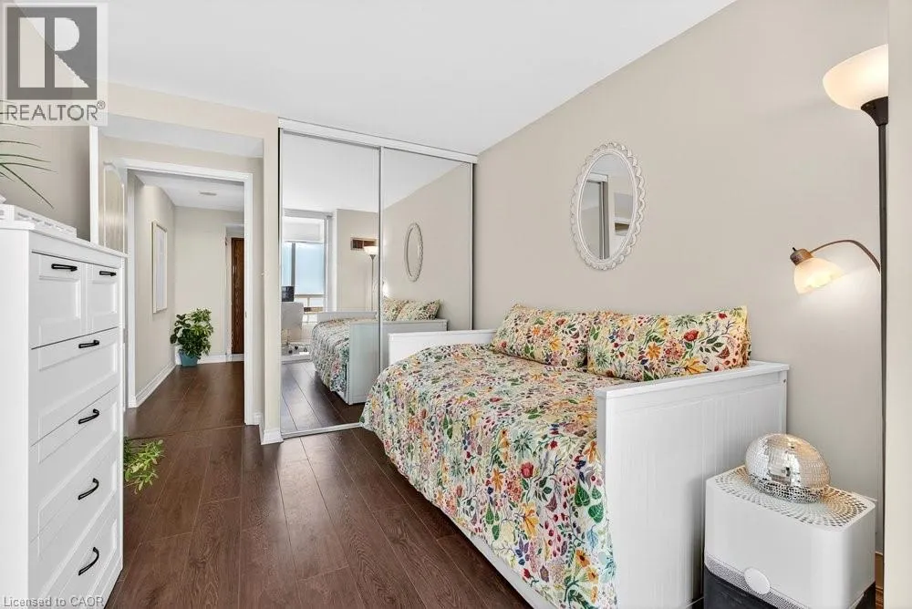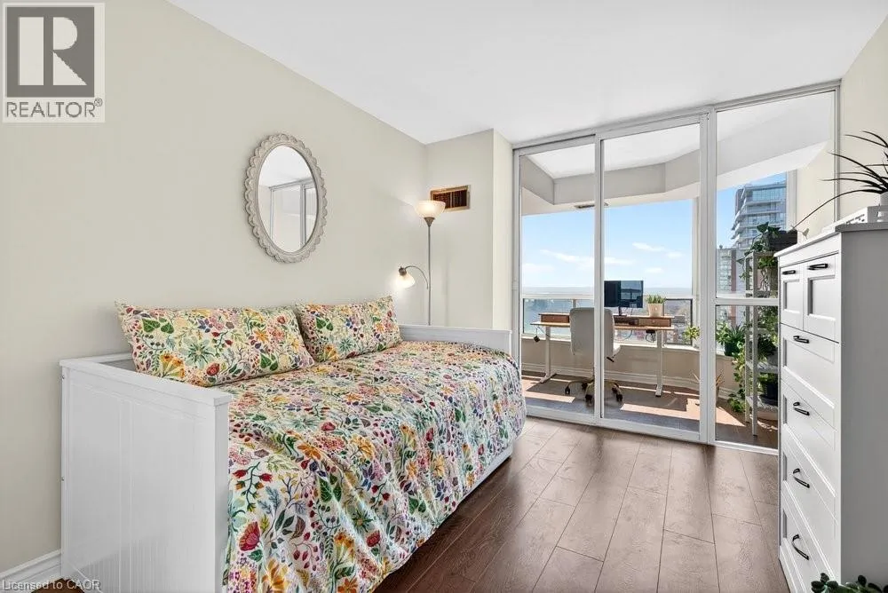 Live the best of Burlington in this sought-after Grand Regency condo steps to Lake Ontario & vibrant downtown. This bright, 2 bed, 2 bath + den suite showcases floor-to-ceiling windows with stunning south-facing lake views, including from the private den and has approximately, 1100 sq ft of living space. Enjoy a spacious open-concept layout with a large kitchen featuring stainless