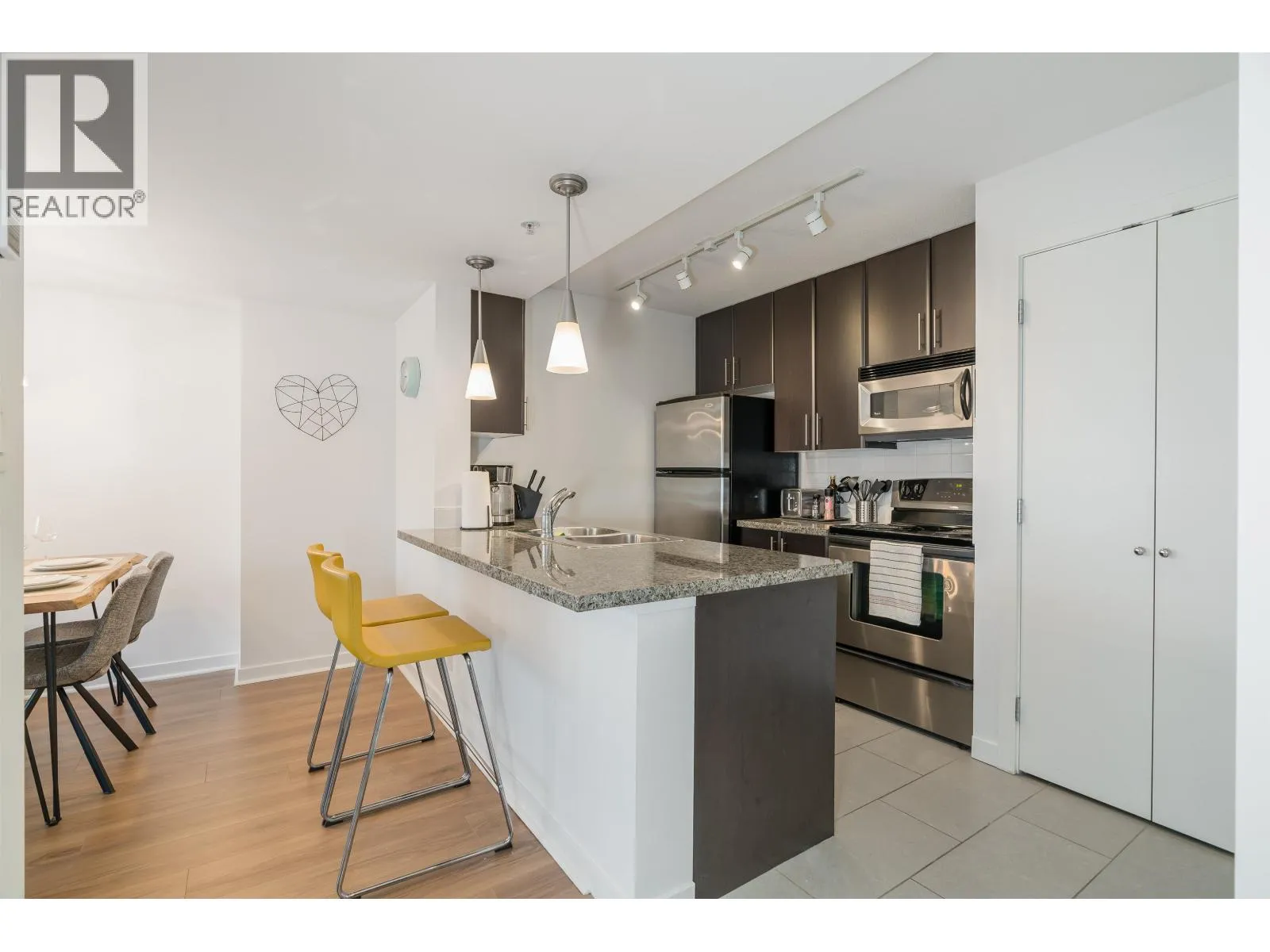 Strata AIRBNB FRIENDLY! Firenze towers with PARKING and BALCONY. This rare 1 bedroom + Den(or 2nd bed) + Balcony corner unit features over 600 sqft of space with open Kitchen, granite counters with stainless steel appliances. on site EV charging parking, Central location, steps to Skytrain station, Rogers Arena, T&T, Costco, Restaurant, Bars, etc….Great amenities like 24 hours security, pool,
